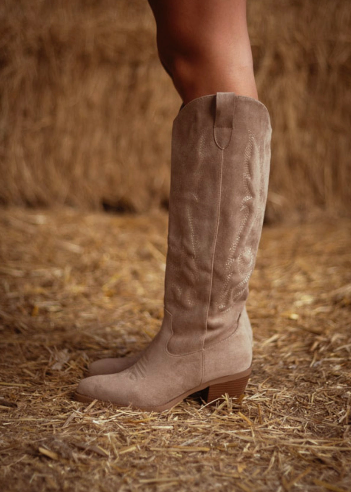 AMOS BEIGE COWBOY SUEDE BOOTS