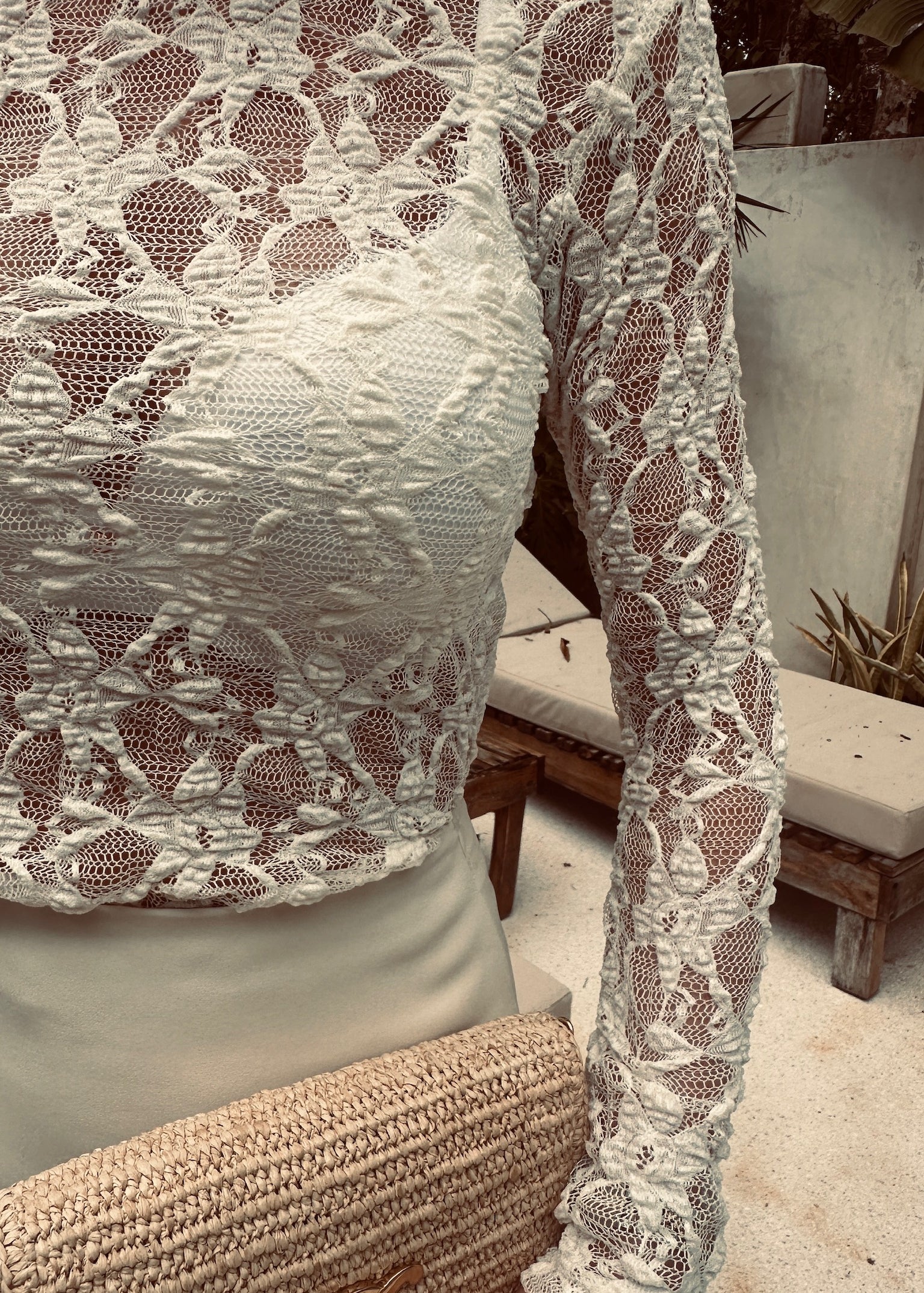 CARIBE ECRU LACE LONGSLEEVE TOP