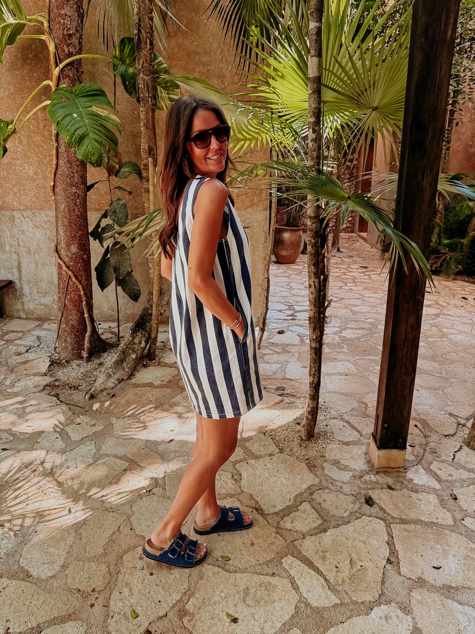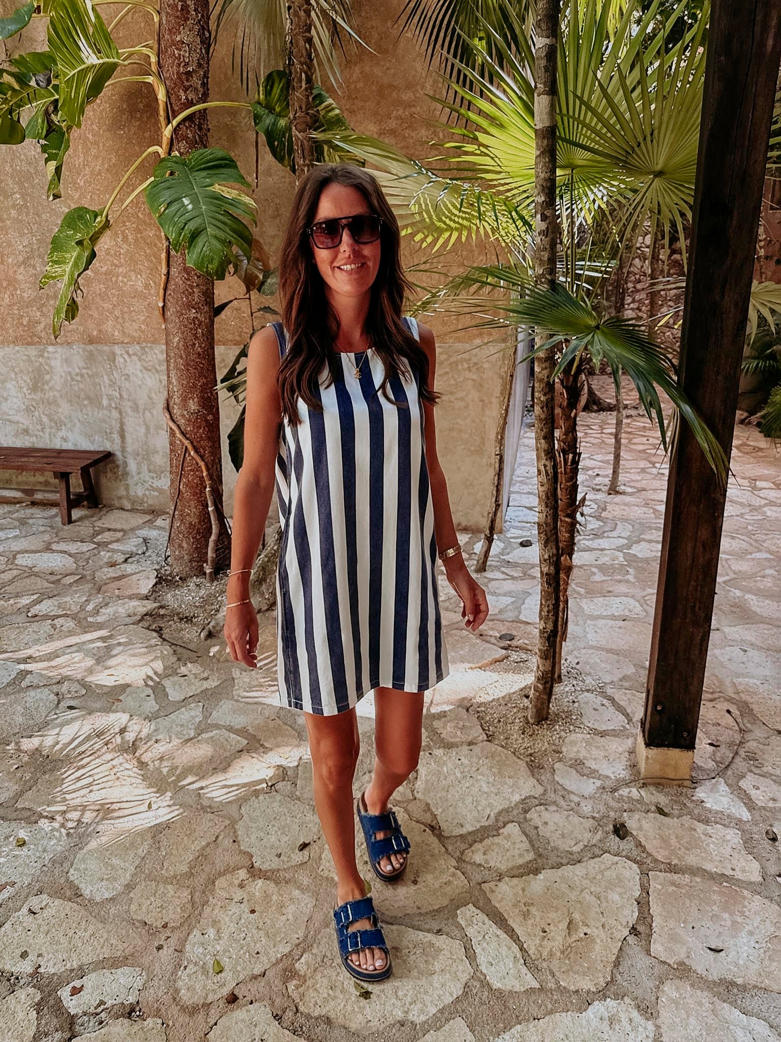 SOL, MAR Y TU DARK BLUE/WHITE STRIPED DRESS