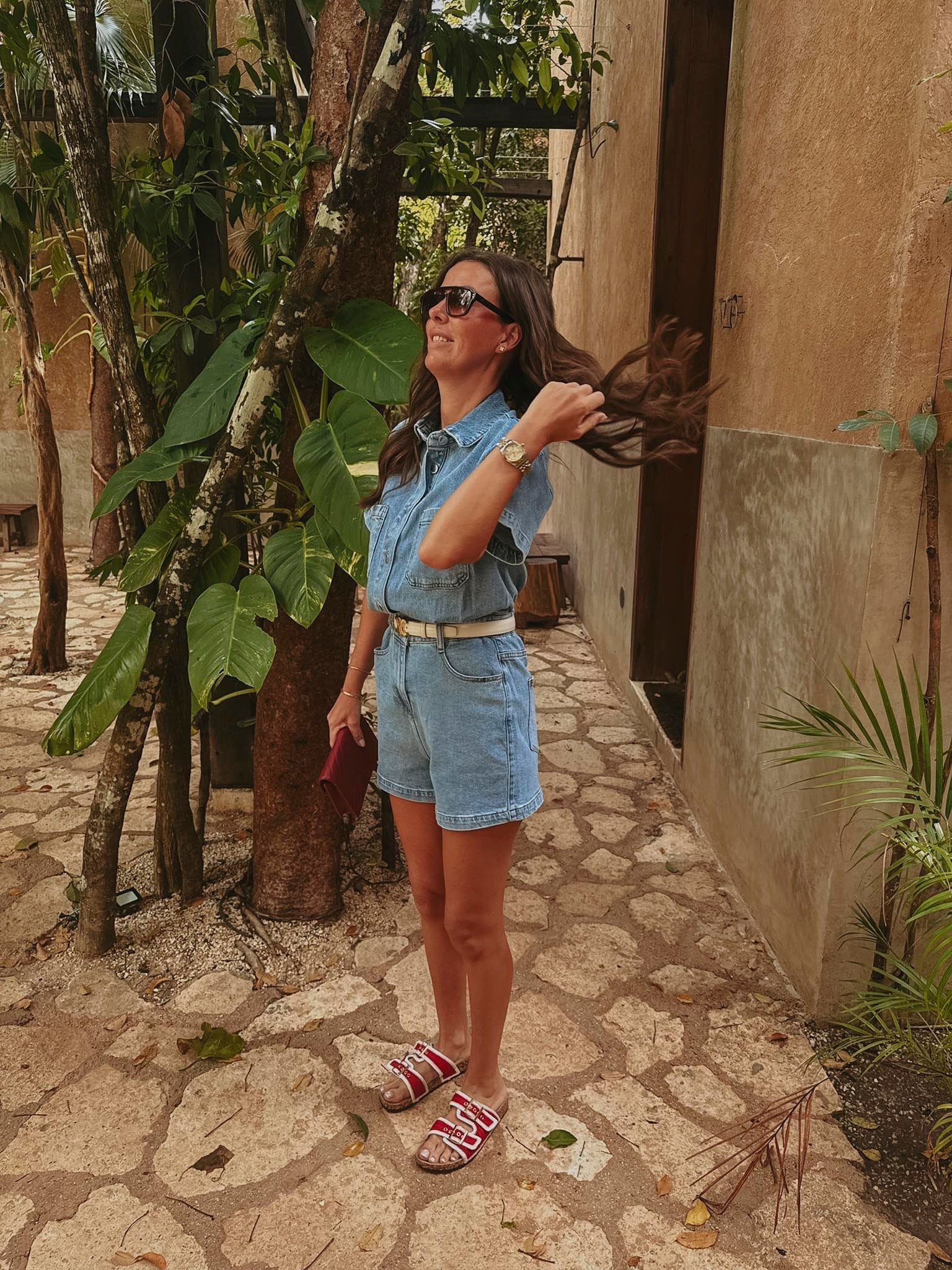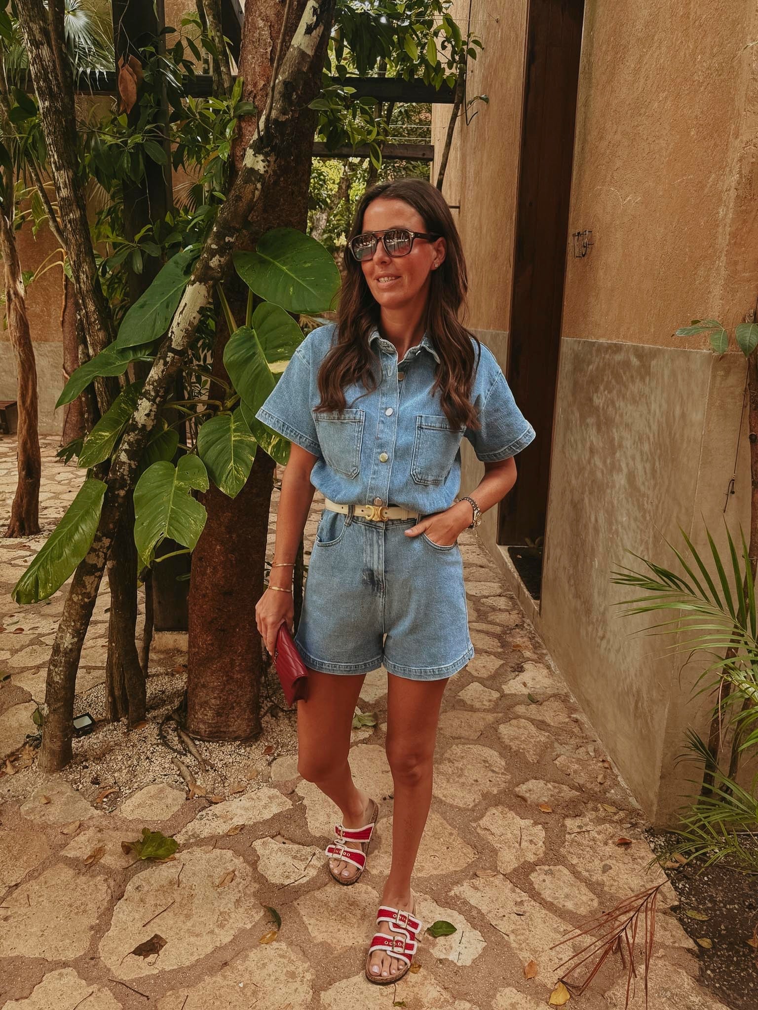 HELOISA RED DENIM PLAYSUIT
