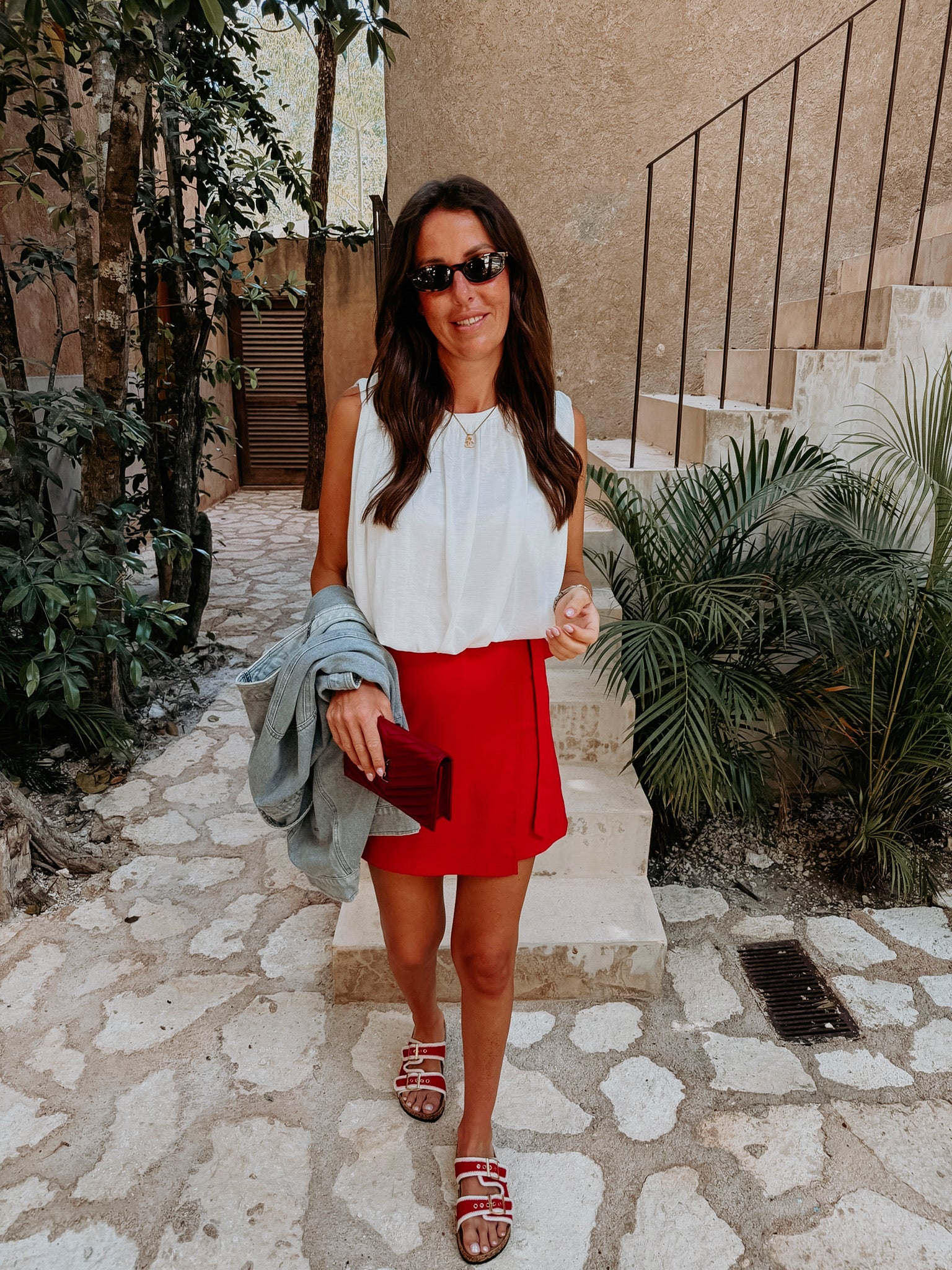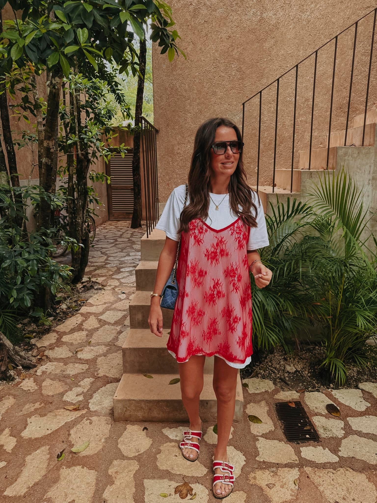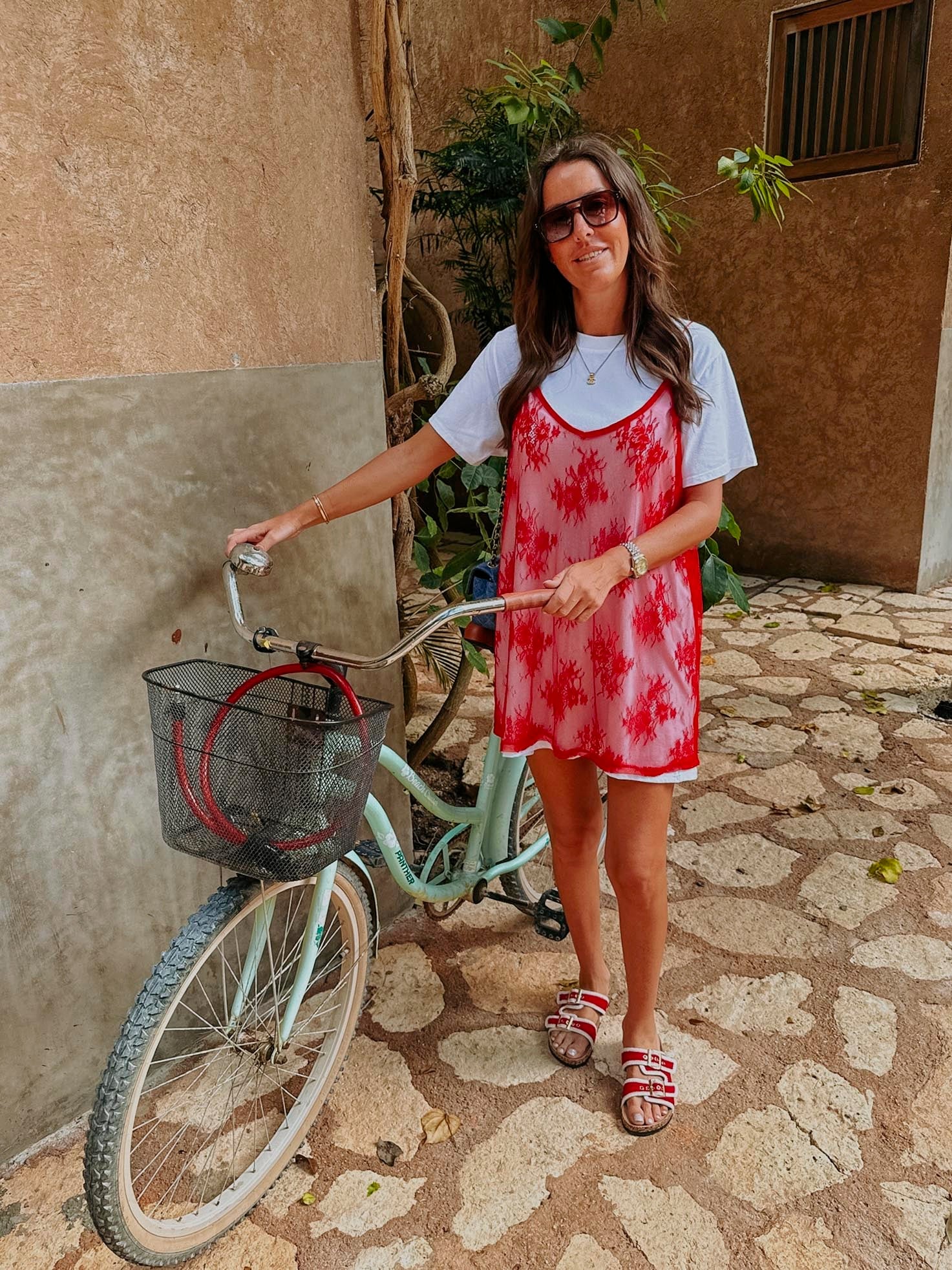 SELVA WHITE DRESS WITH RED LACE