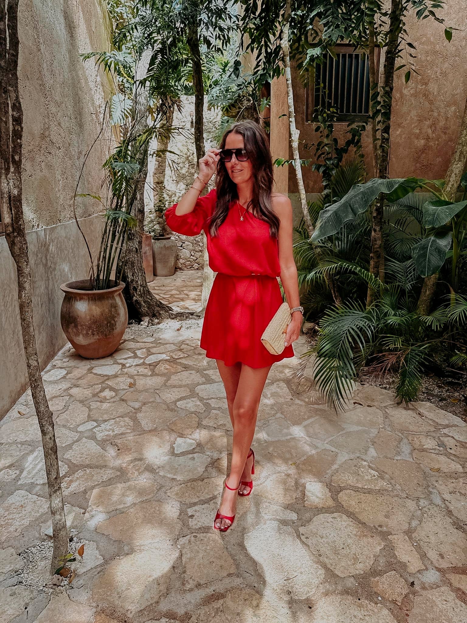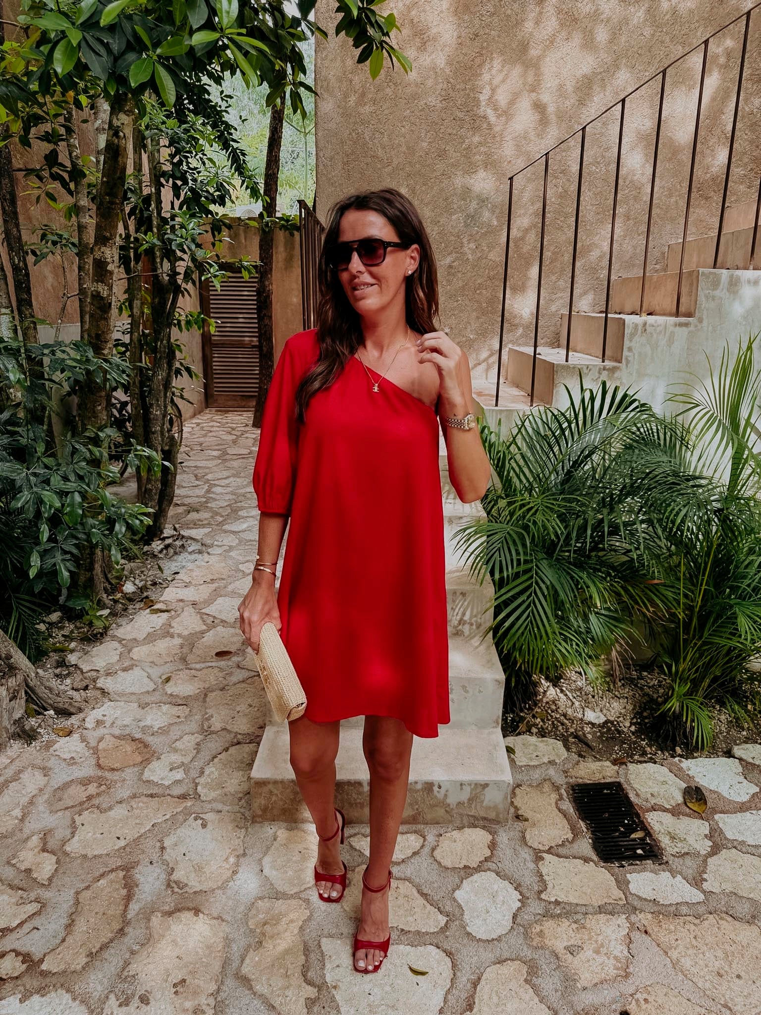 BERENICE RED LINEN ONE SHOULDER DRESS