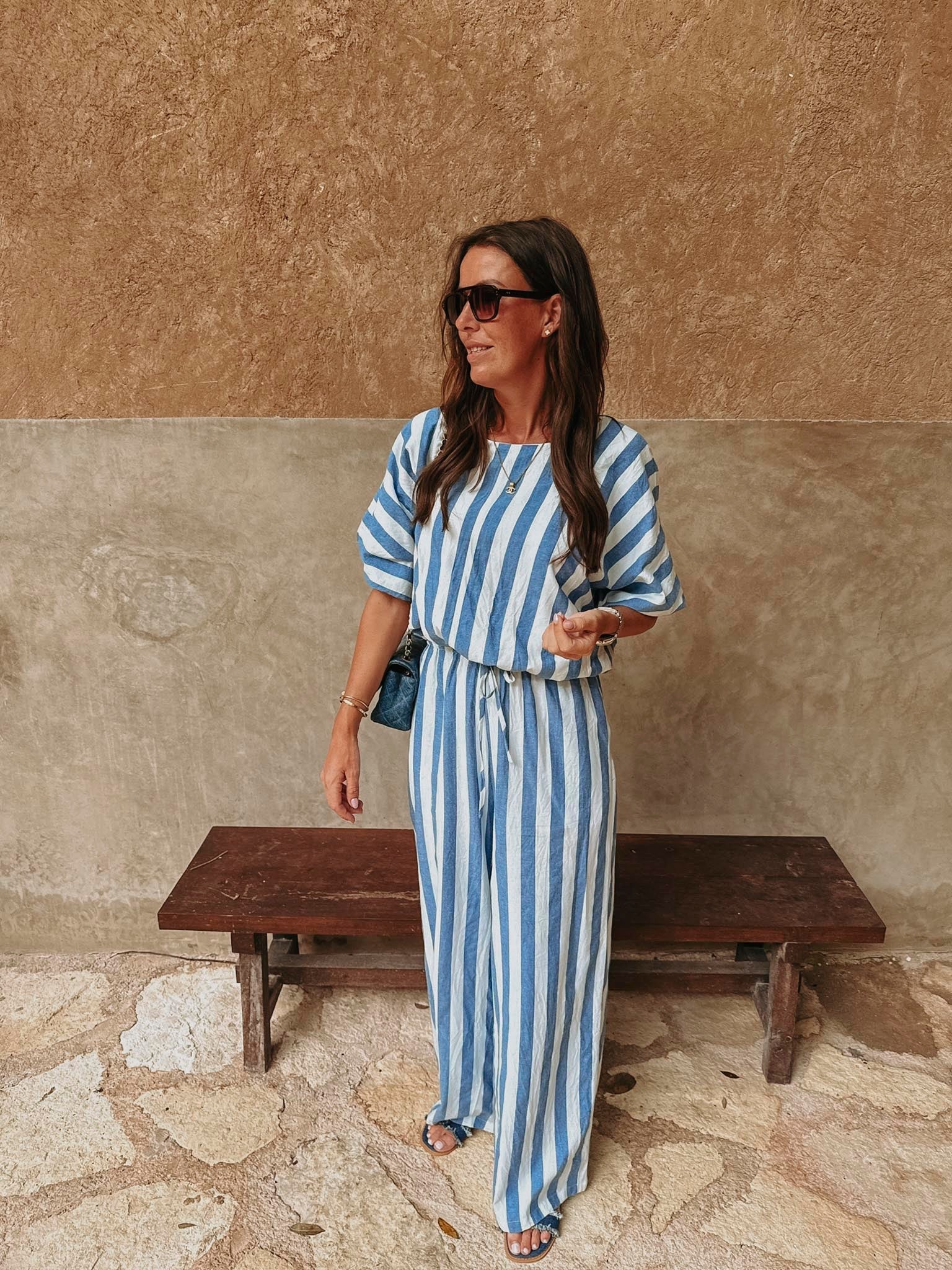 ESTEFANIA BLUE LINEN TWO-PIECE SET
