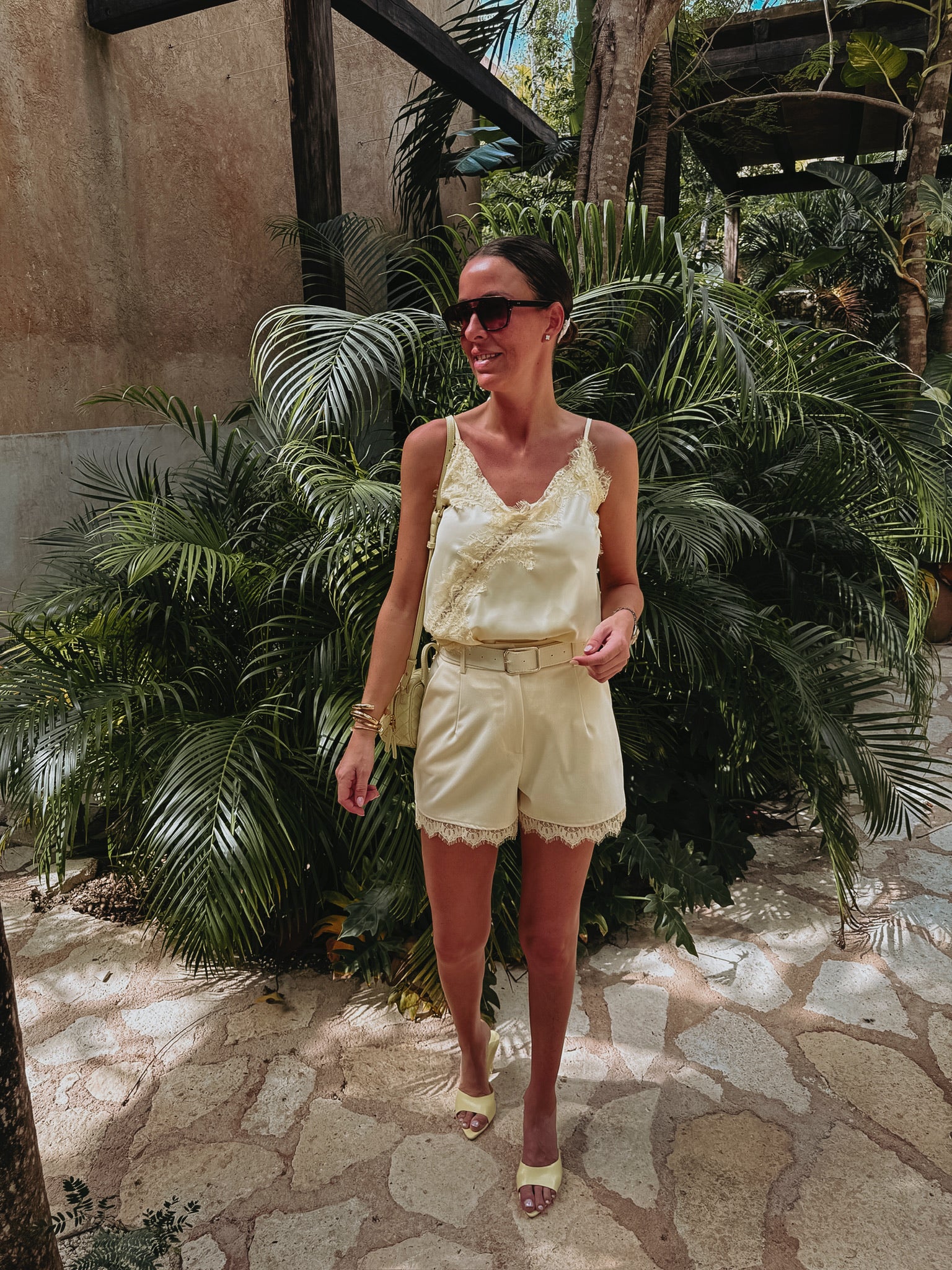 ESTRELLA BUTTER YELLOW LACE BELT SHORT