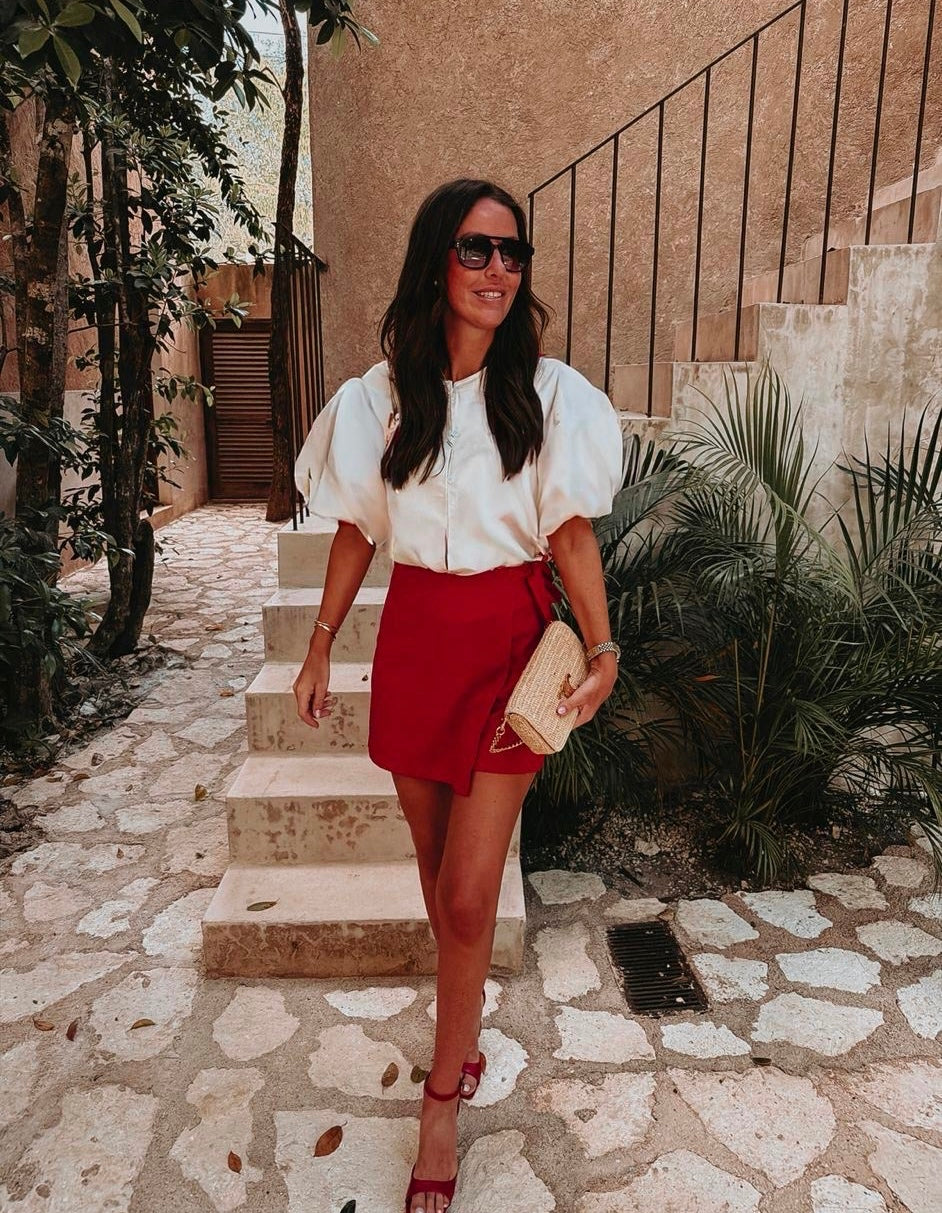 COQUETA RED LINEN SKORT