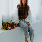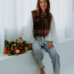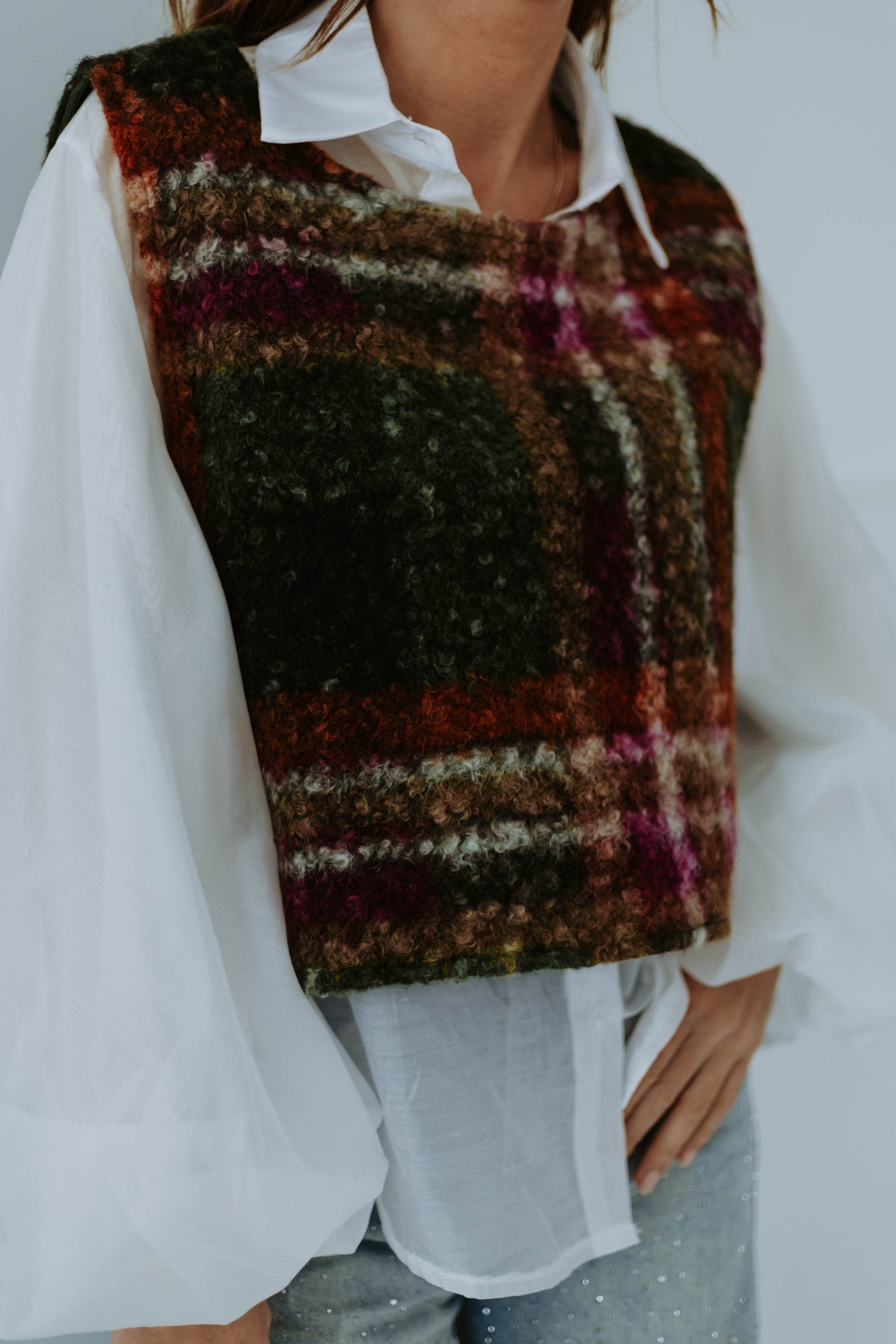 FEBE DARK GREEN CHECKERED SLEEVELESS KNIT TOP