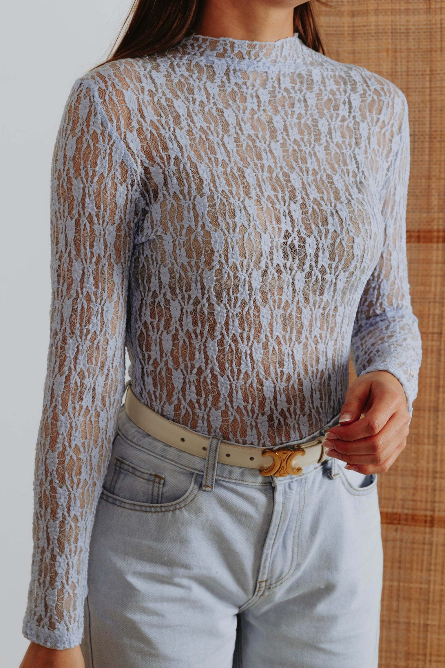 SIMONE LIGHT BLUE LACE LONGSLEEVE TOP