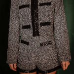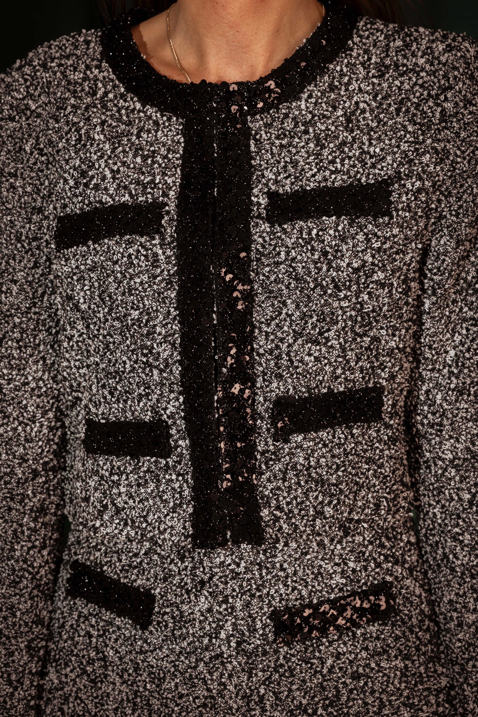 Een stijlvol contrast dat meteen een feestelijke, moderne uitstraling geeft. De combinatie van zwart en wit zorgt voor een tijdloze elegantie die perfect past bij zowel kerstfeesten als stijlvolle nieuwjaarsvieringen. Draag het met de bijpassende short voor een gecoördineerde look of kies voor een solo outfit die moeiteloos chic blijft.