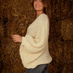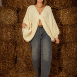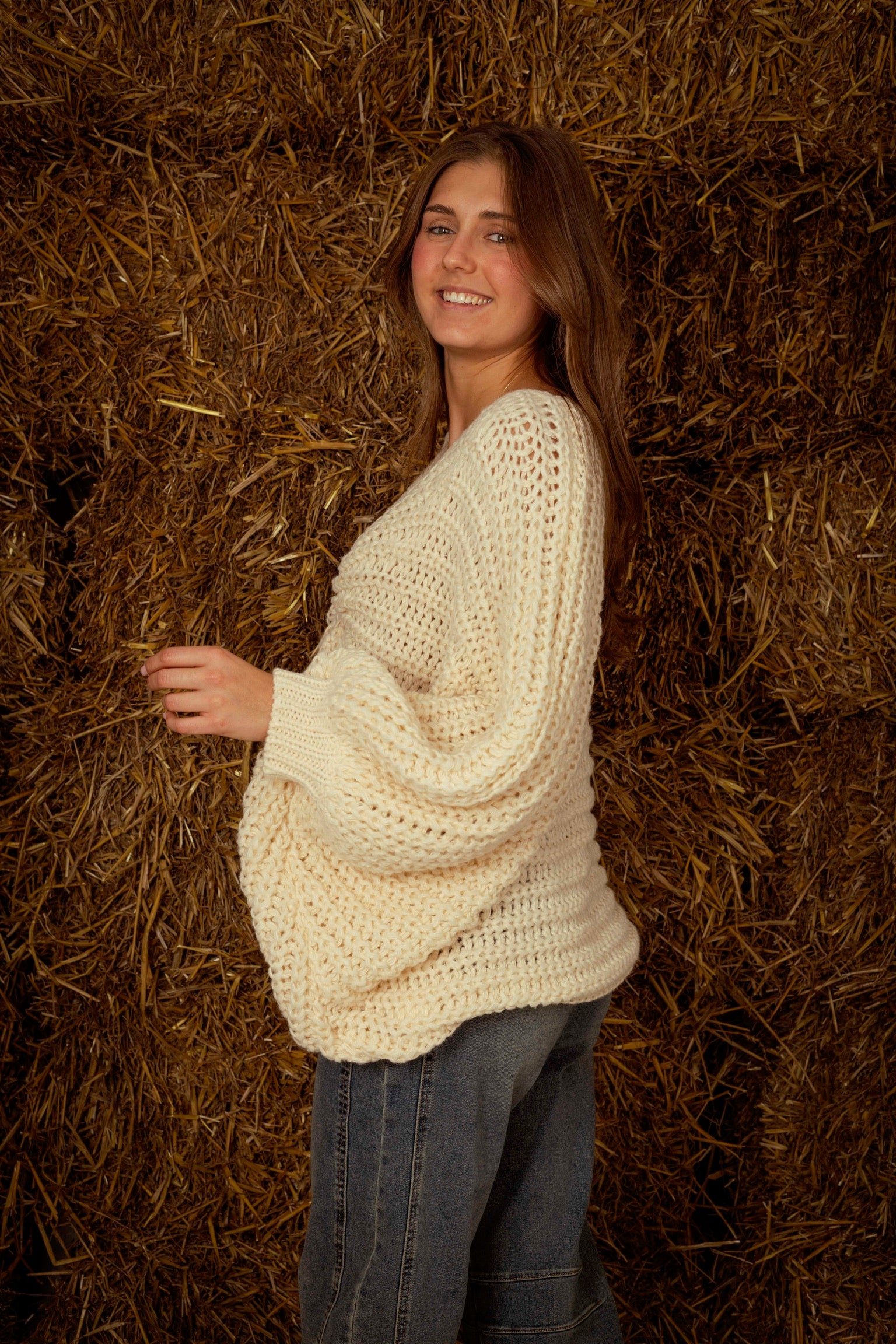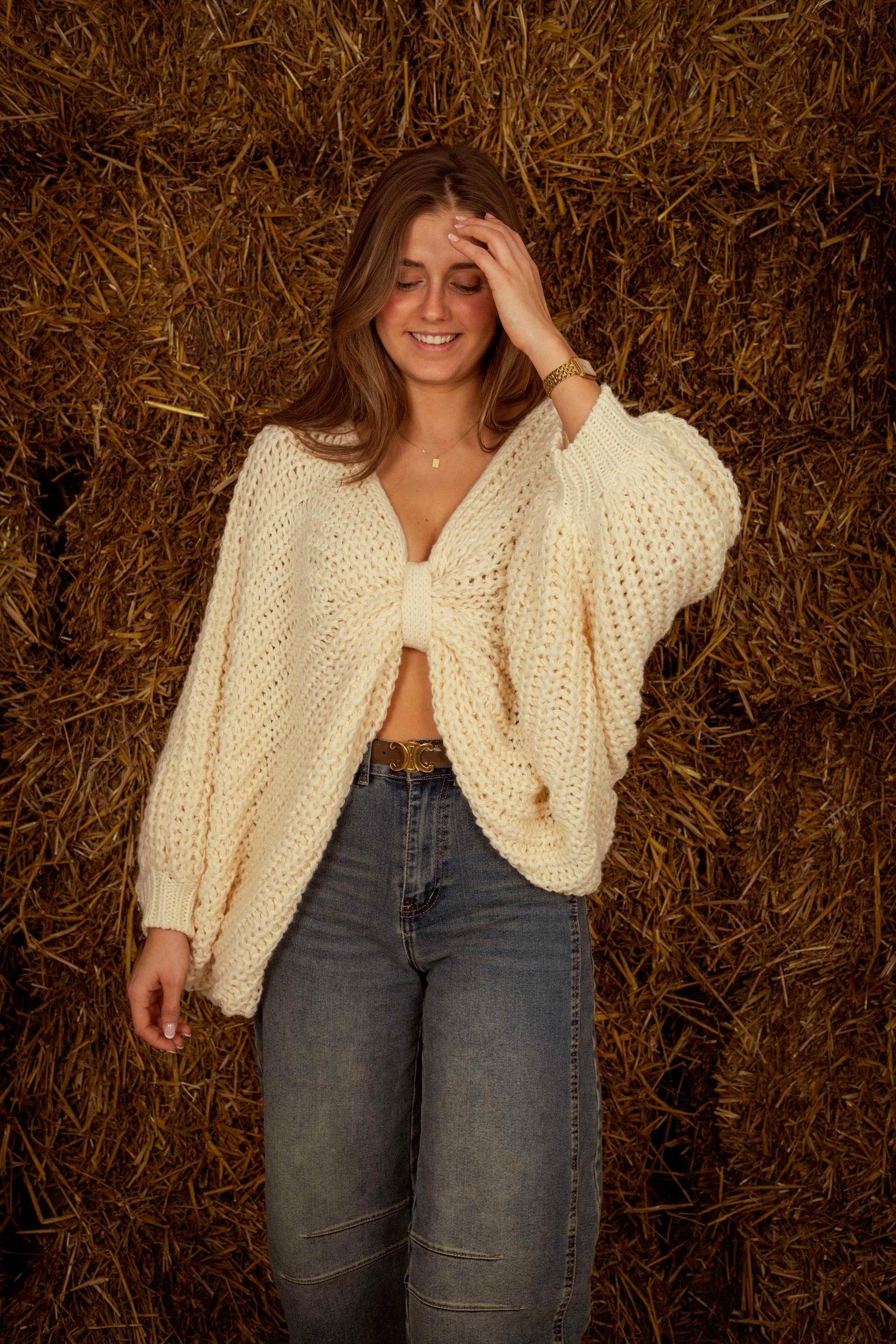Een zachte ecru trui met een subtiele knoop aan de borst voor een flatterend, vrouwelijk accent. De comfortabele knit voelt warm aan op frisse herfstdagen en past moeiteloos bij zowel denim als een chique rok.