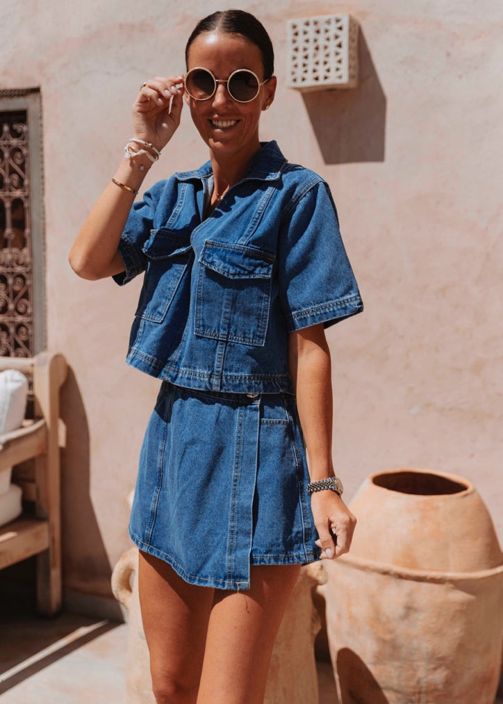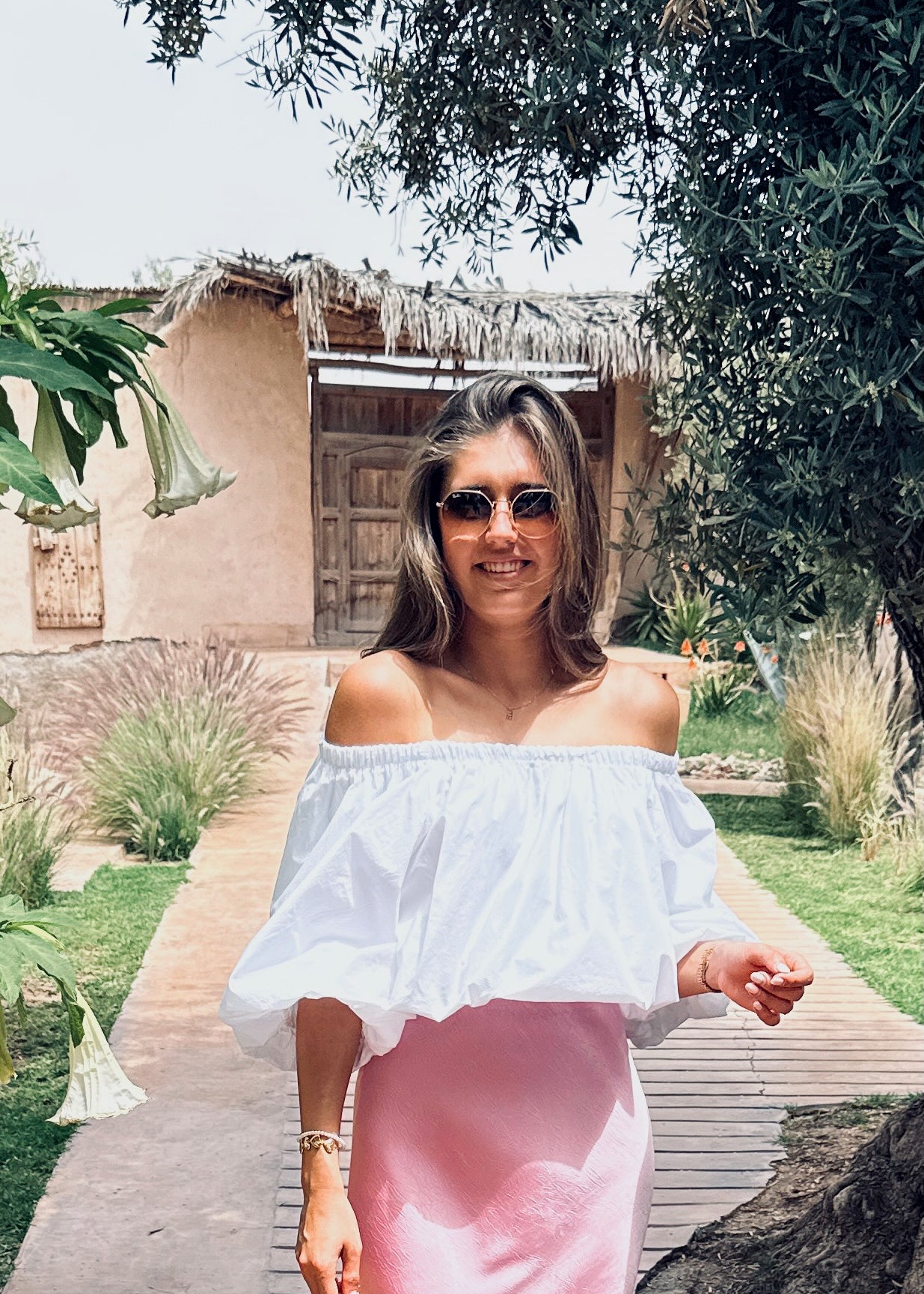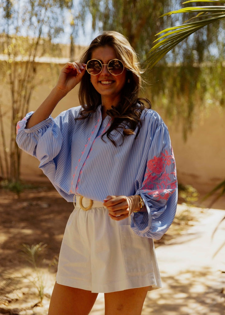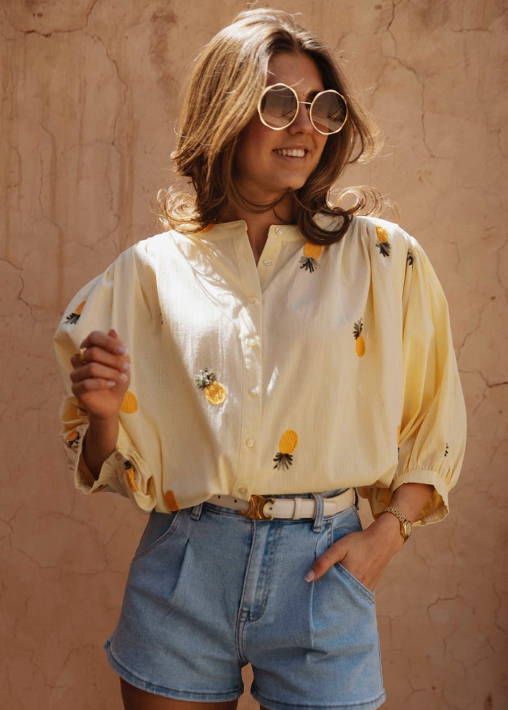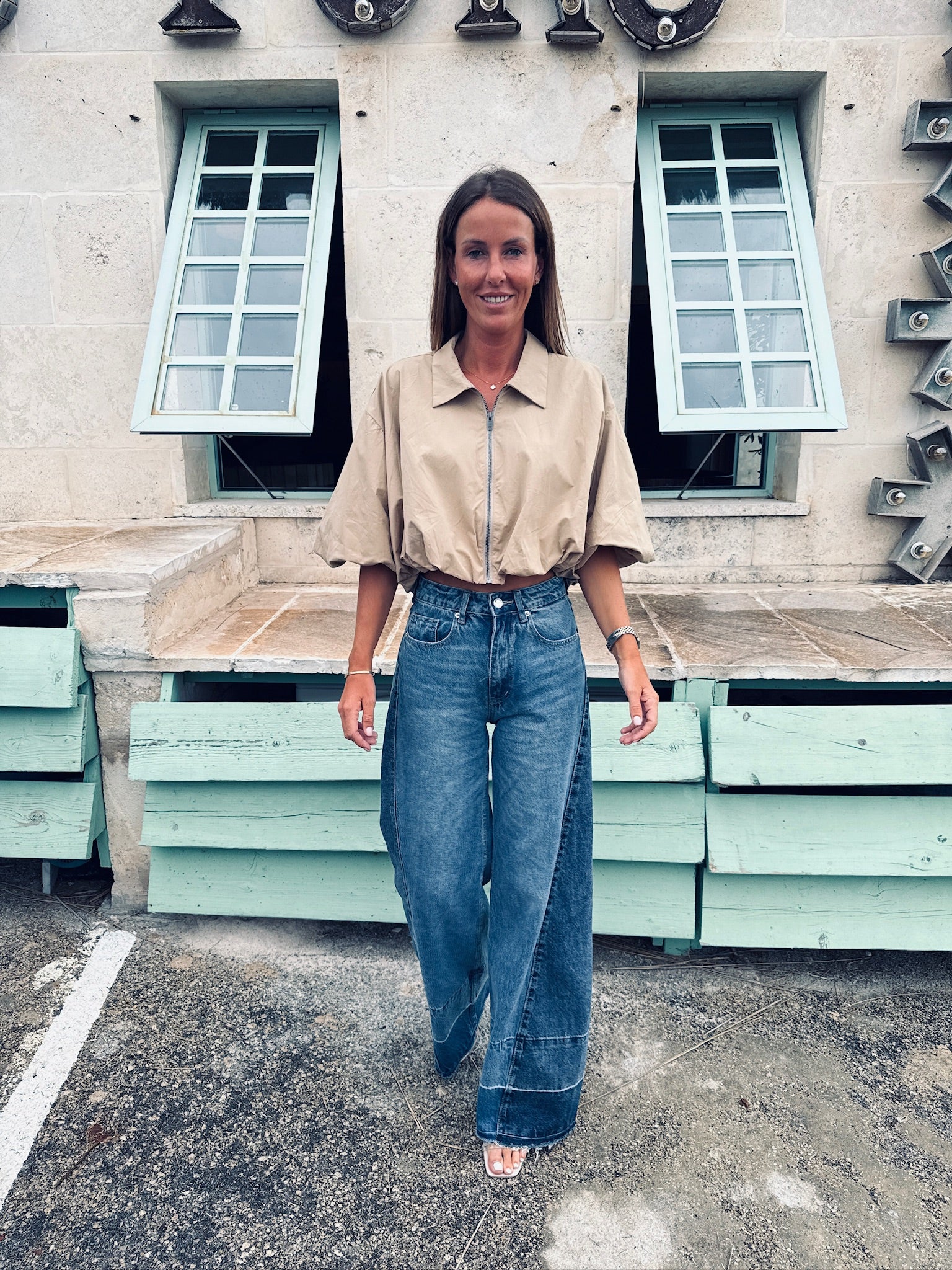 AFTERGLOW BROWN SATIN SEQUIN BLOUSE