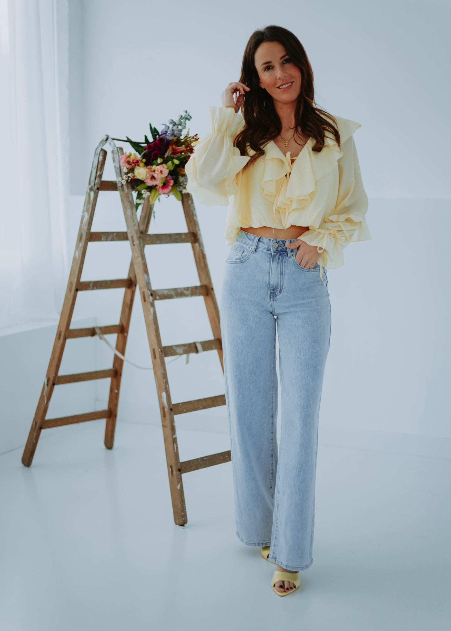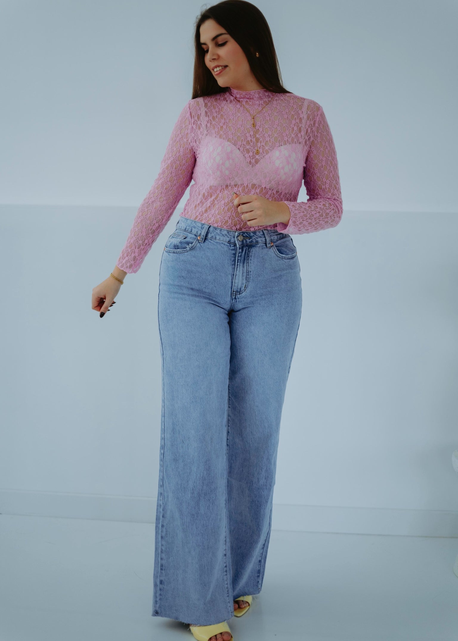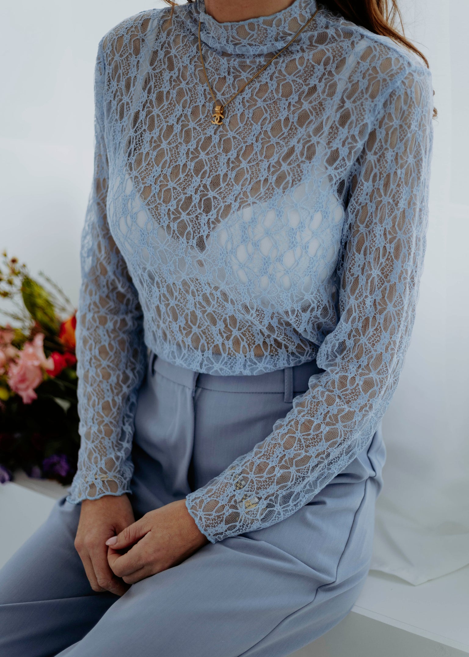KYENNA LIGHT BLUE LACE LONGSLEEVE TOP