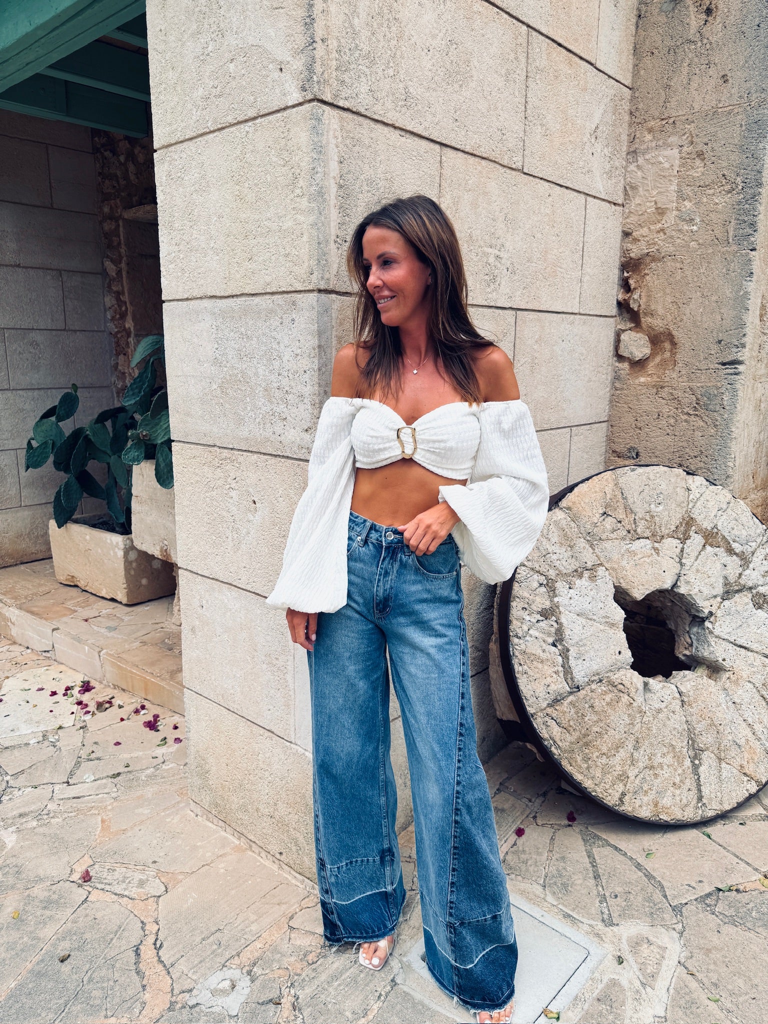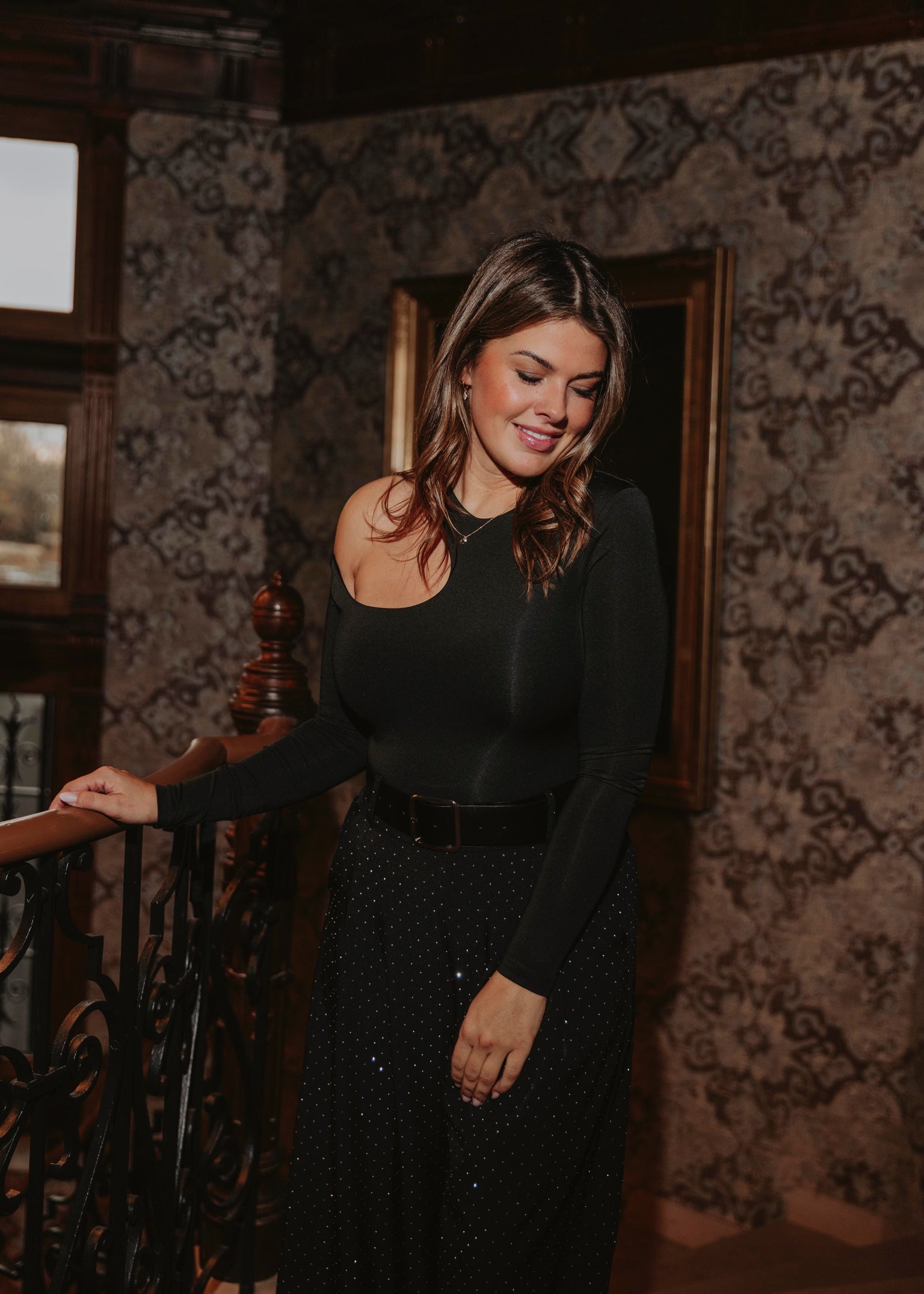 HOLLY SHINE BLACK RHINESTONE OPEN BACK BLOUSE