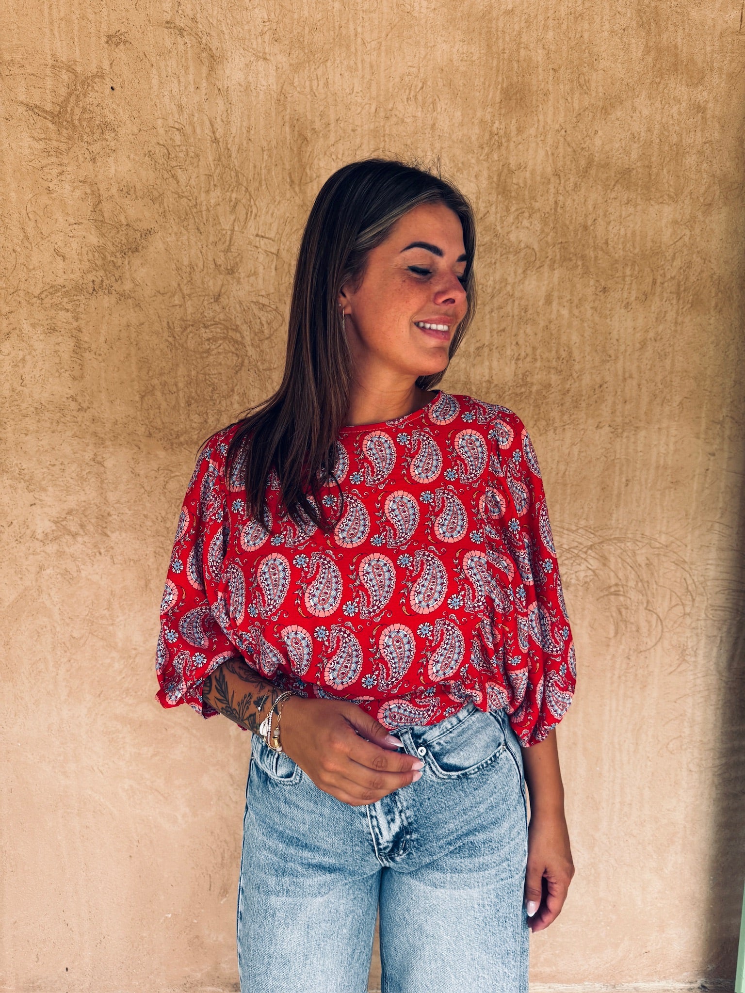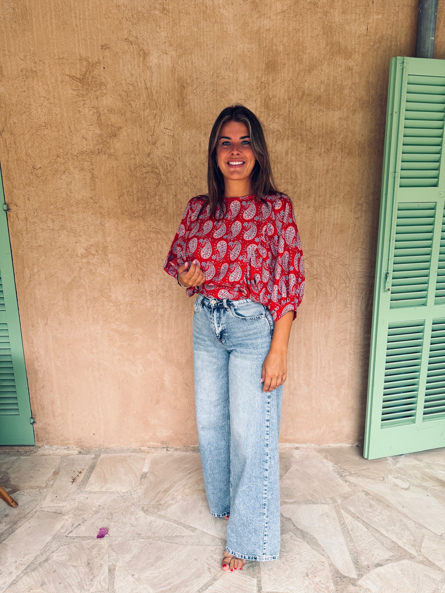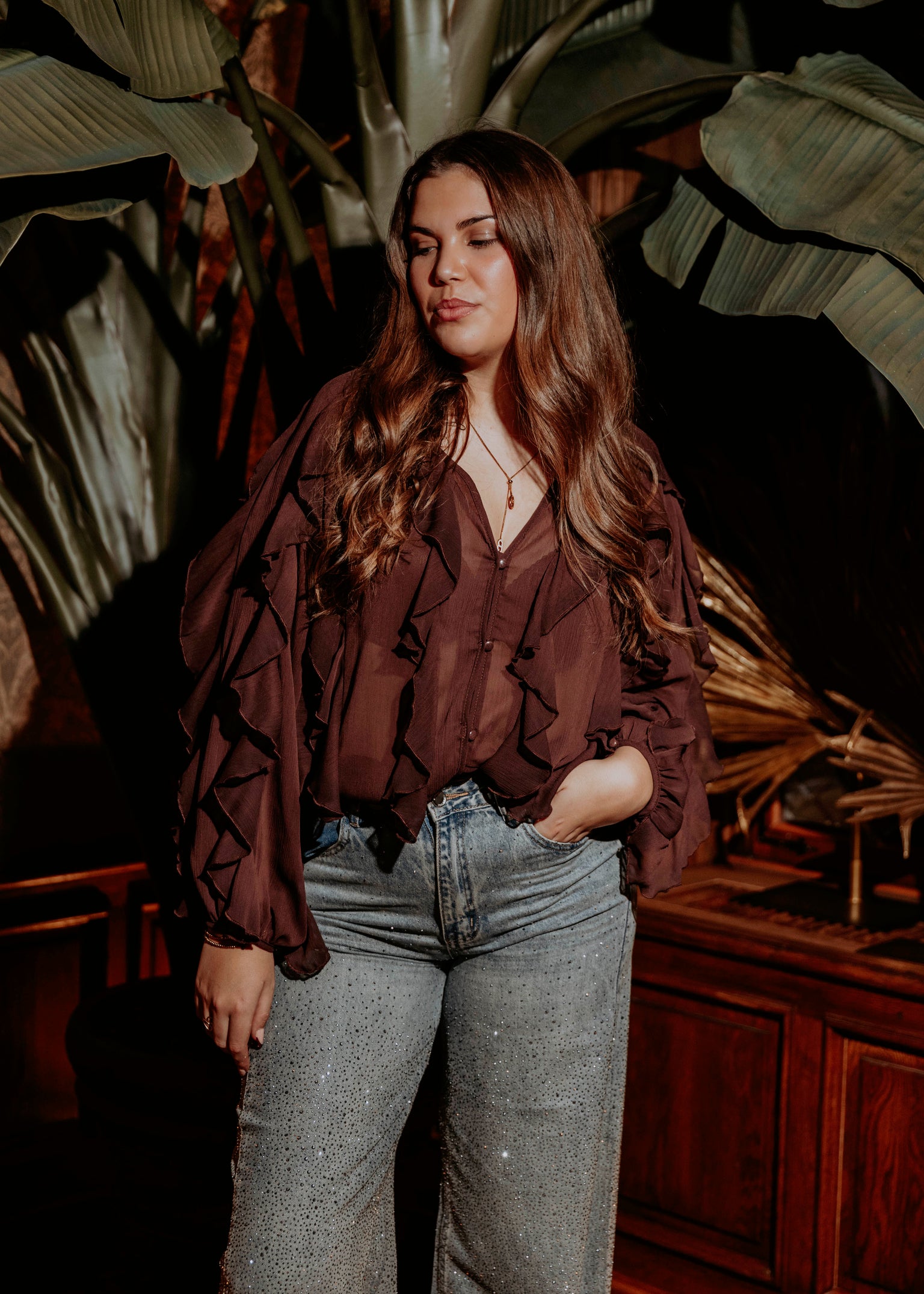 JUBILA BORDEAUX RUFFLE BLOUSE