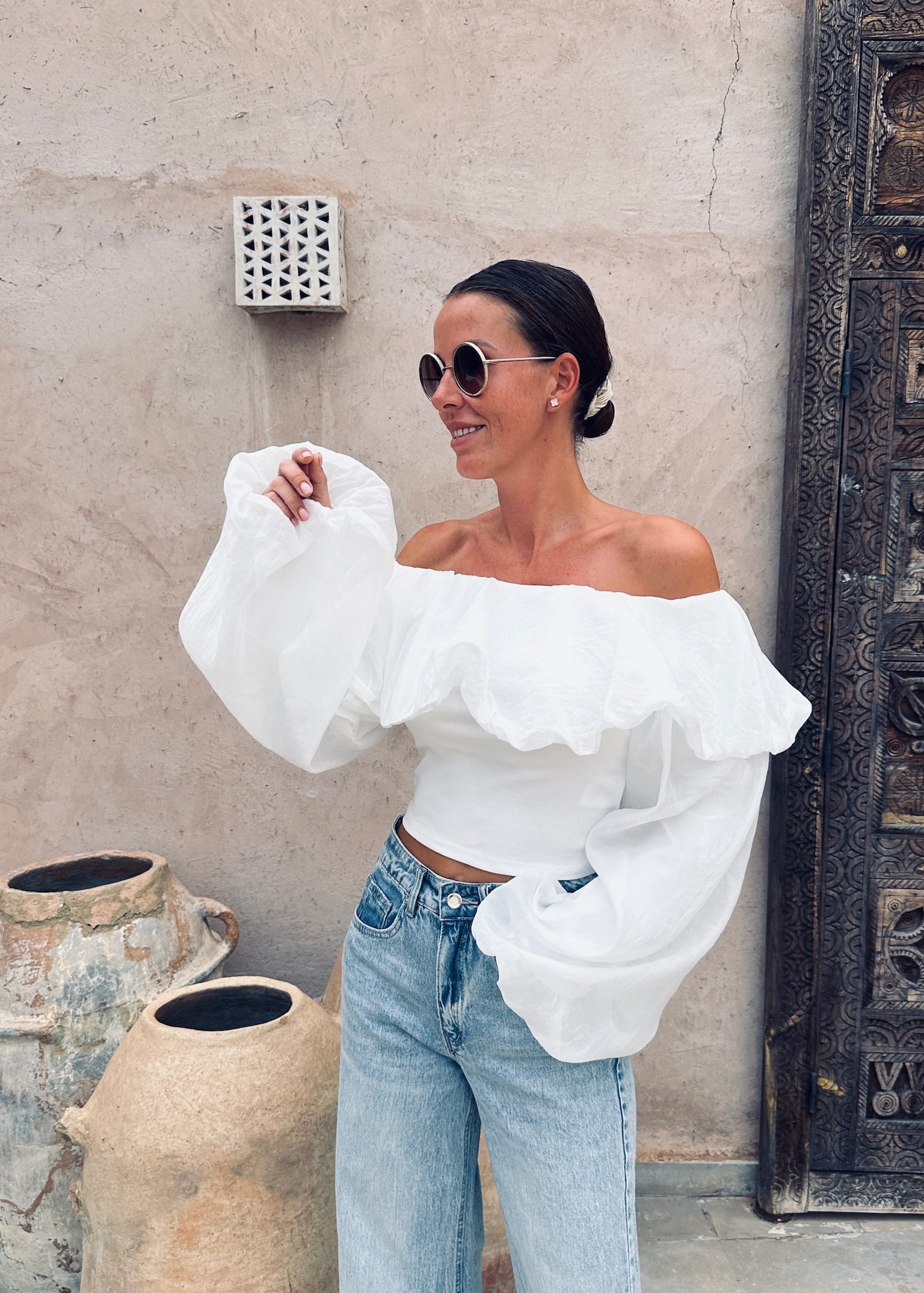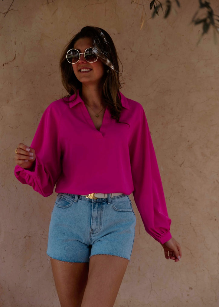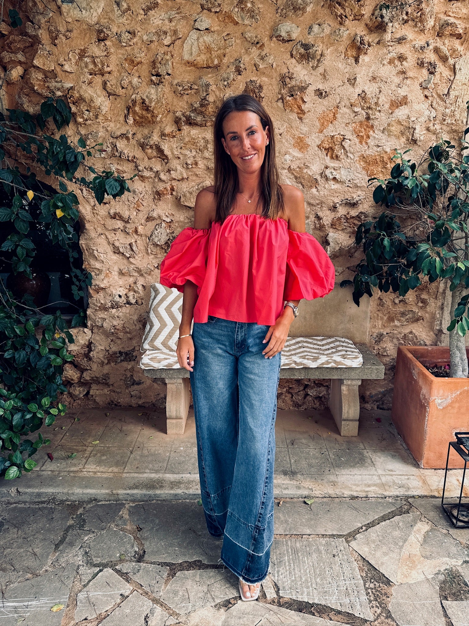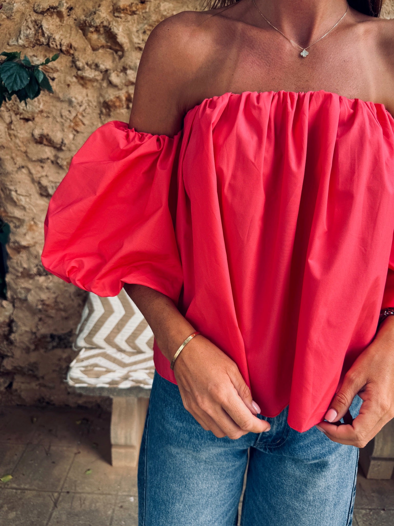 JUBILA BORDEAUX RUFFLE BLOUSE