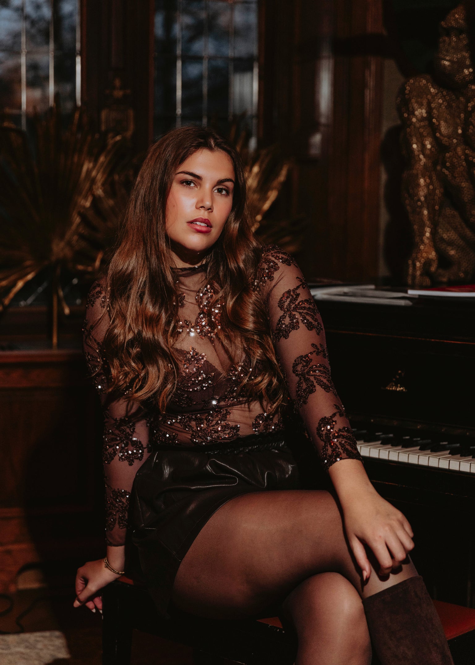GLITTER BOMB BROWN SEQUIN BLOUSE
