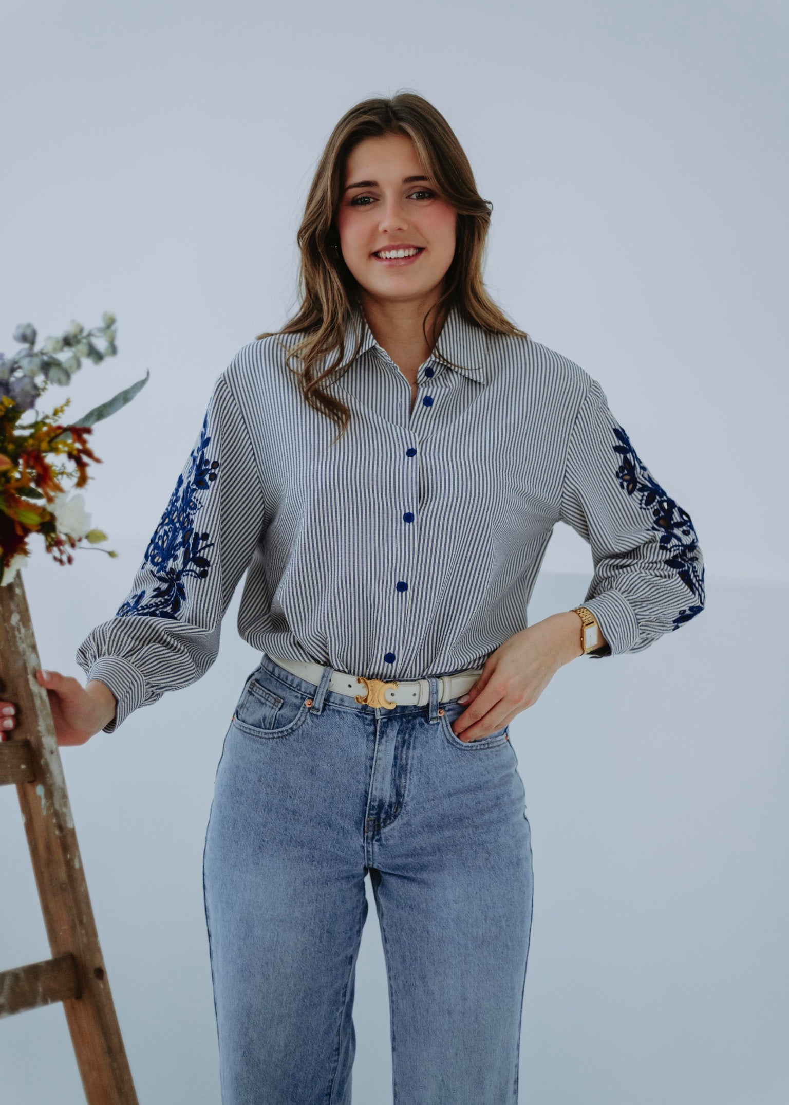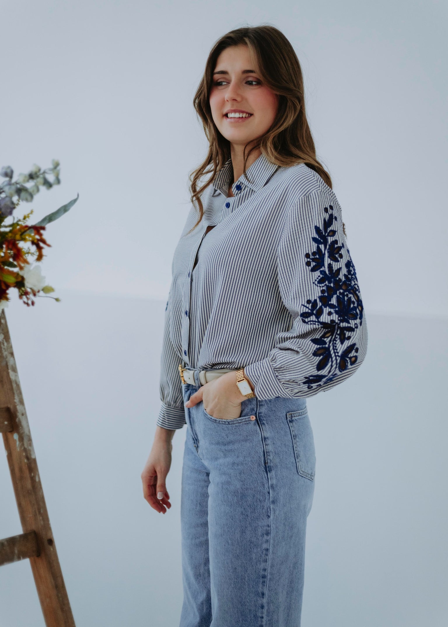 LUMI DARK BLUE STRIPED FLOWER BLOUSE