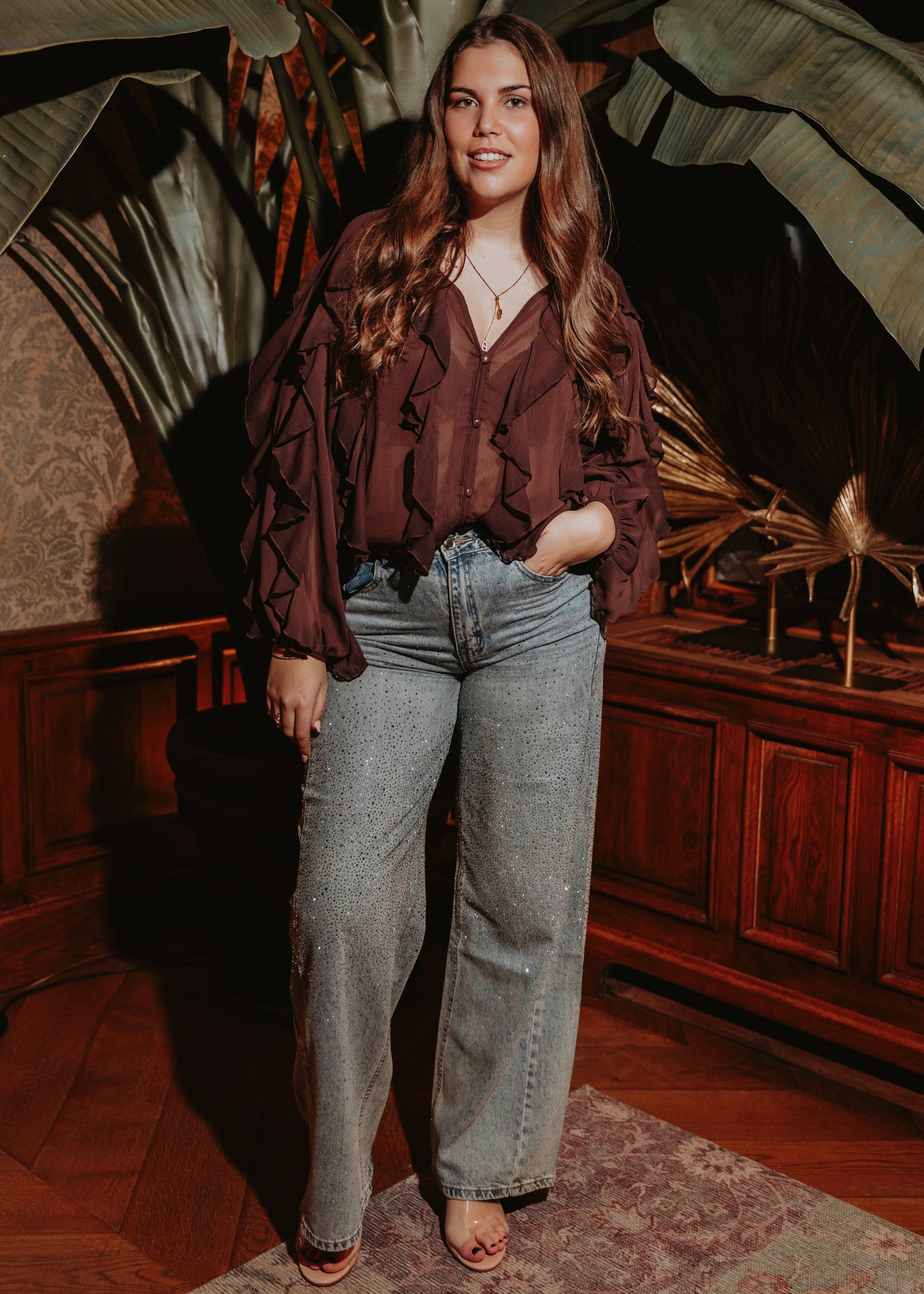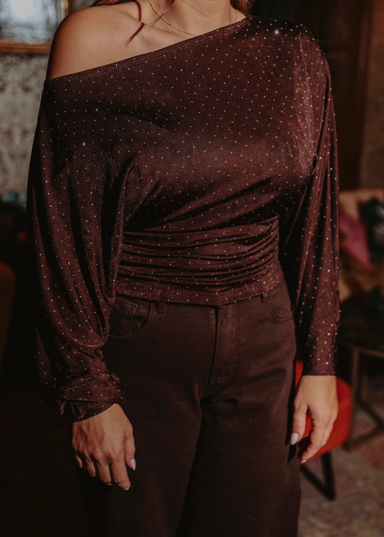 TINSEL TWINKLE BROWN RHINESTONE BLOUSE