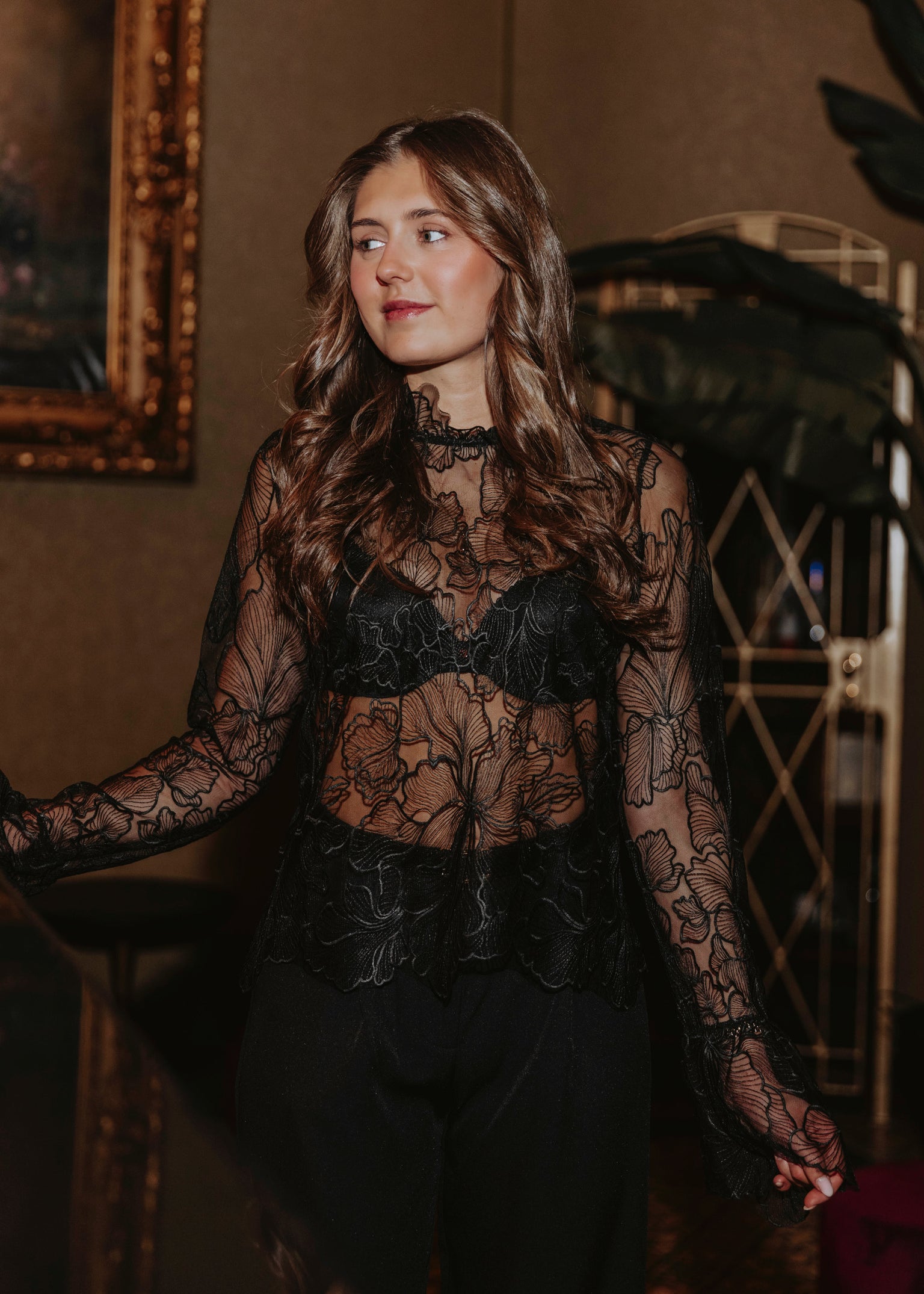 HOLIDAY CHEER BLACK LACE BLOUSE