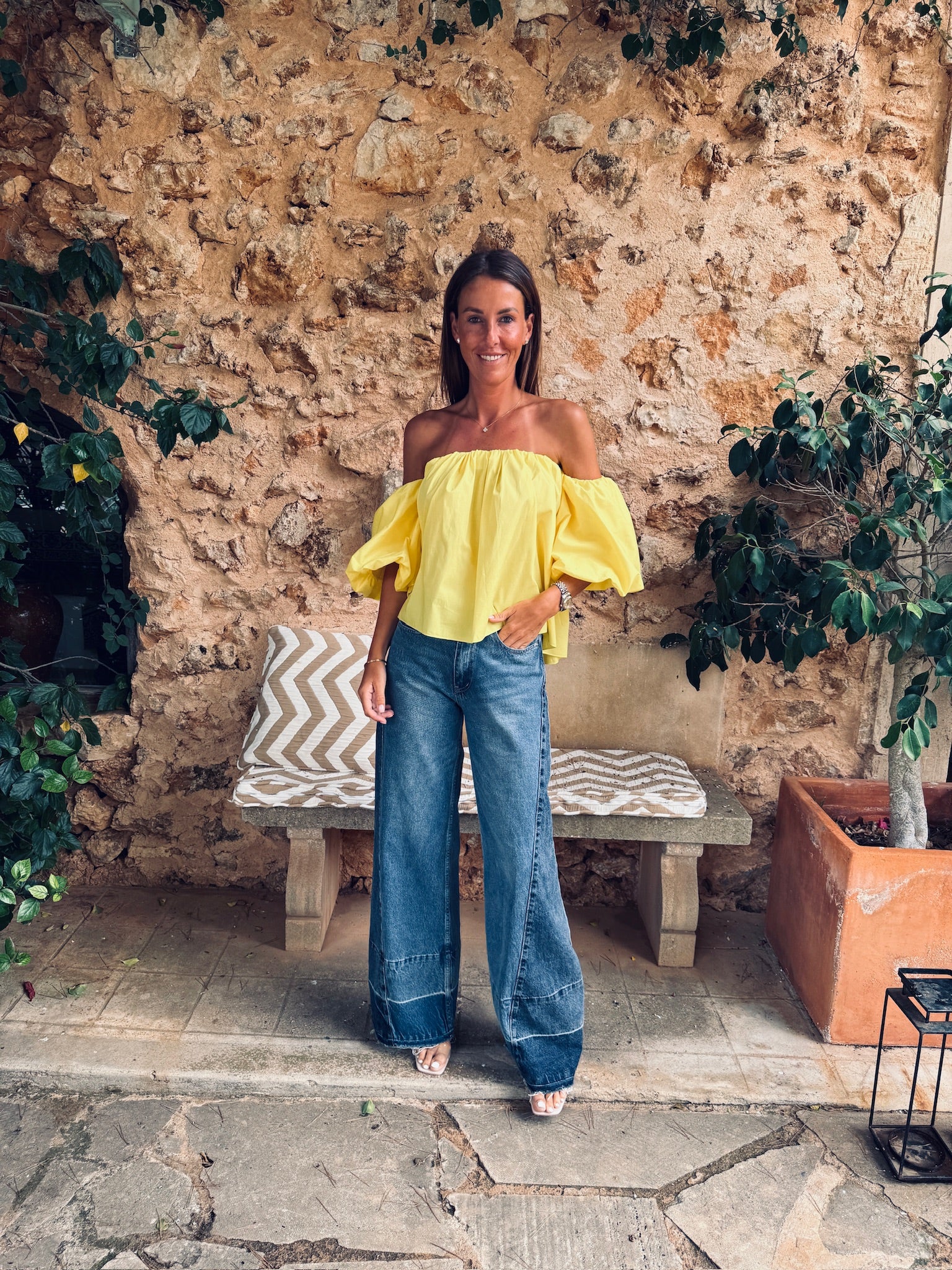 JOY TO ALL BLACK RHINESTONE ONE SHOULDER BLOUSE