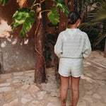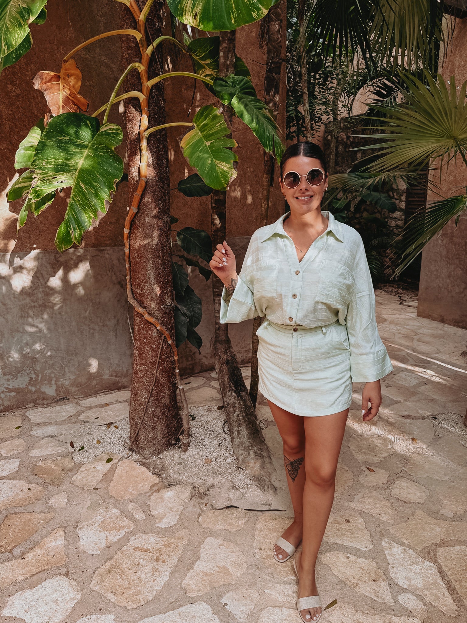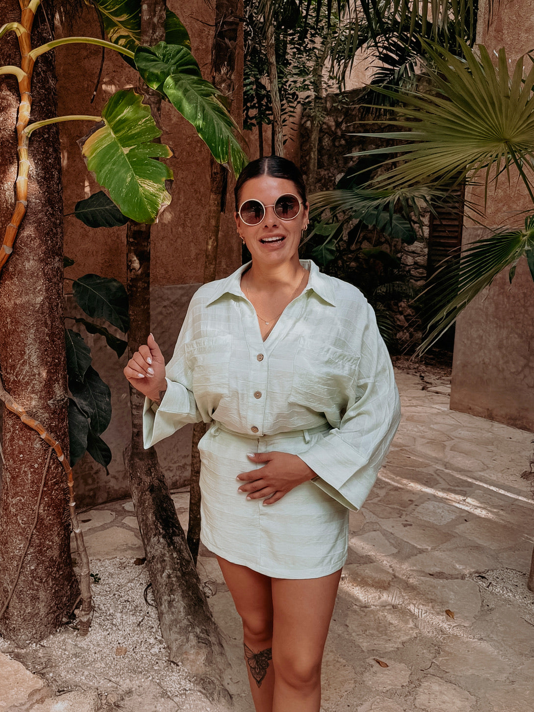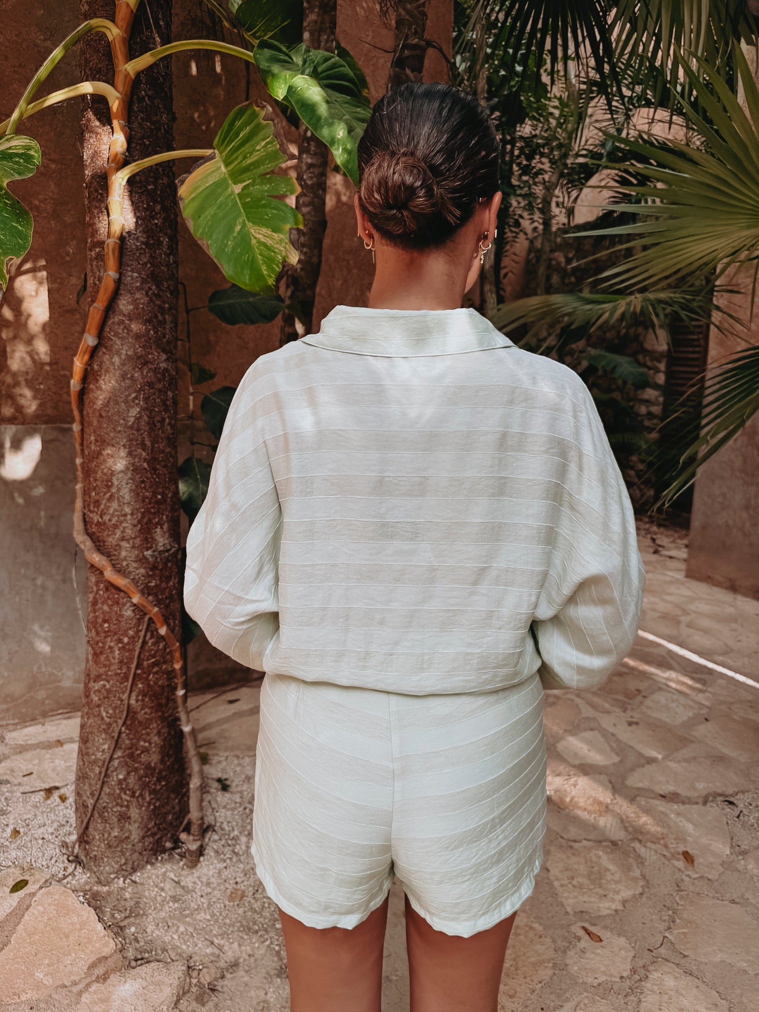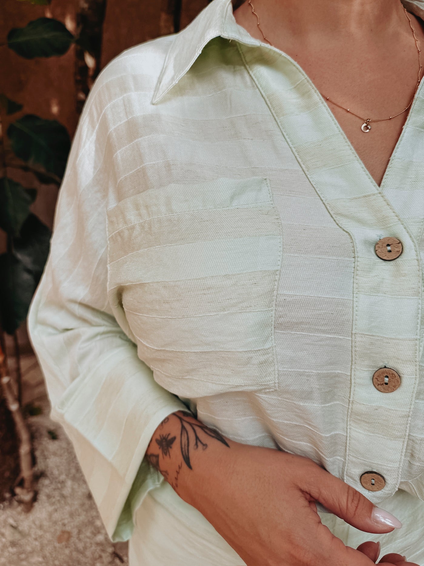 Een luchtige blouse met wijdere mouwen en fijne knoopdetails die zorgen voor een elegante, zomerse uitstraling. Licht, vrouwelijk en perfect voor dagen waarop je moeiteloos stijlvol wilt zijn. Draag samen met de bijpassende skort of combineer los met je favoriete broek of short.