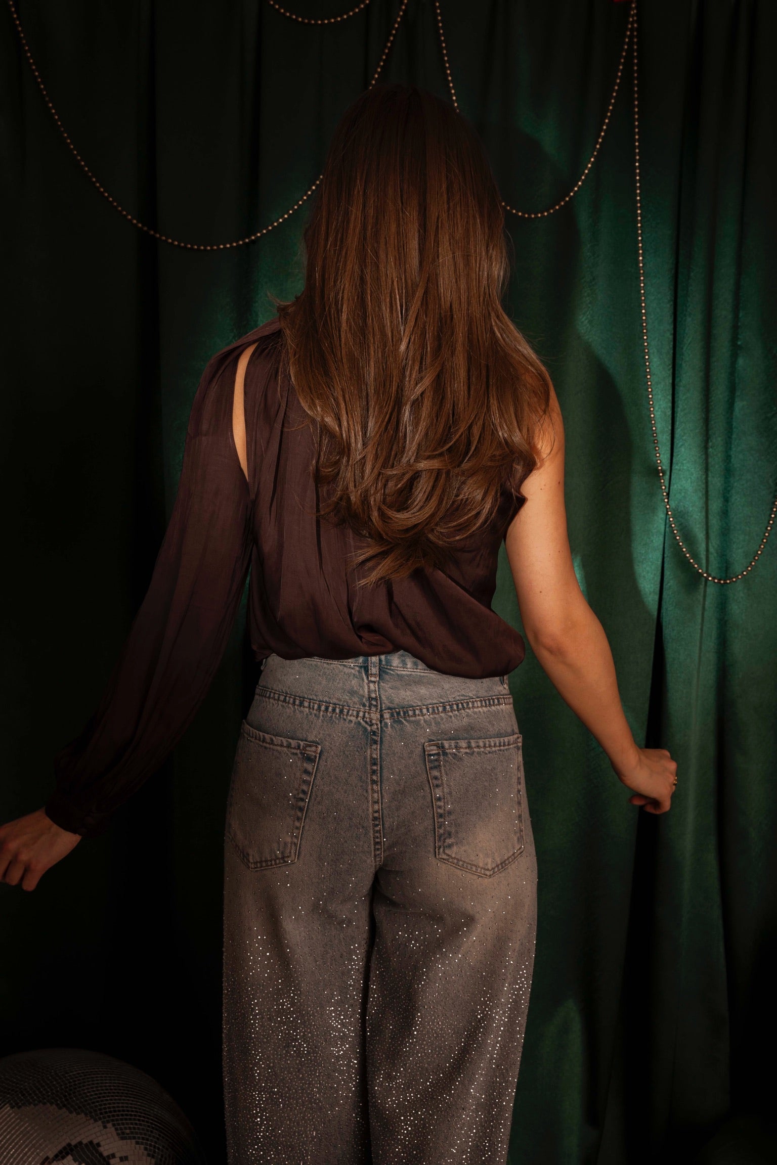 Een luxueuze glans die direct warmte en feestelijke sfeer uitstraalt. De elegante éénschouderlijn geeft een verfijnde twist aan elke look en laat het silhouet stralen bij kerstborrels en nieuwjaarsvieringen. Perfect om te combineren of solo te dragen voor een glamoureus effect.