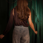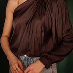 CANDLELIGHT BROWN SATIN ONE SHOULDER BLOUSE – Boetiek Pure Sense