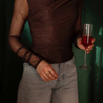 FIREWORK BROWN RHINESTONE BLOUSE