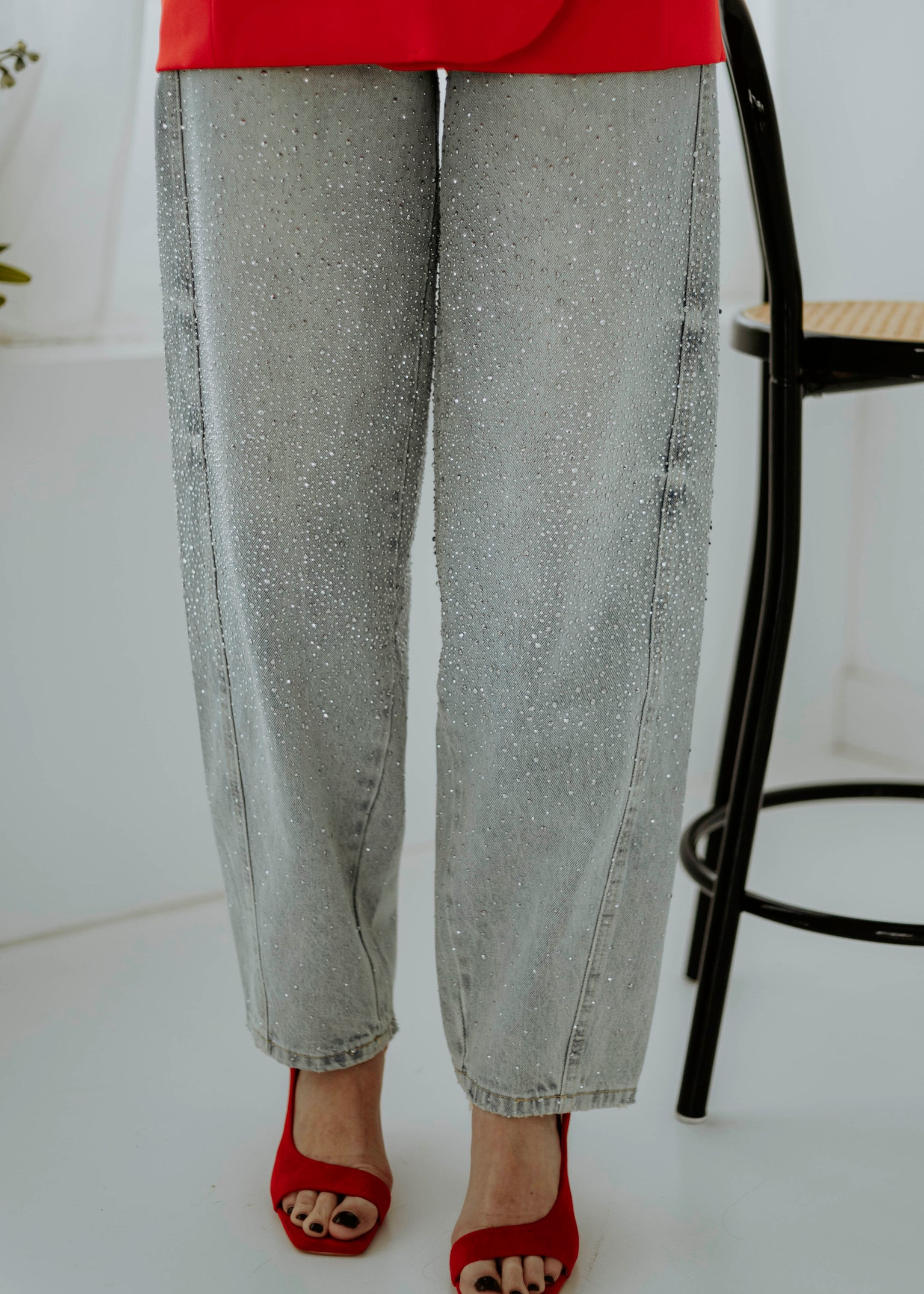 PRE-ORDER GREY RHINESTONE BALLOON JEANS C39