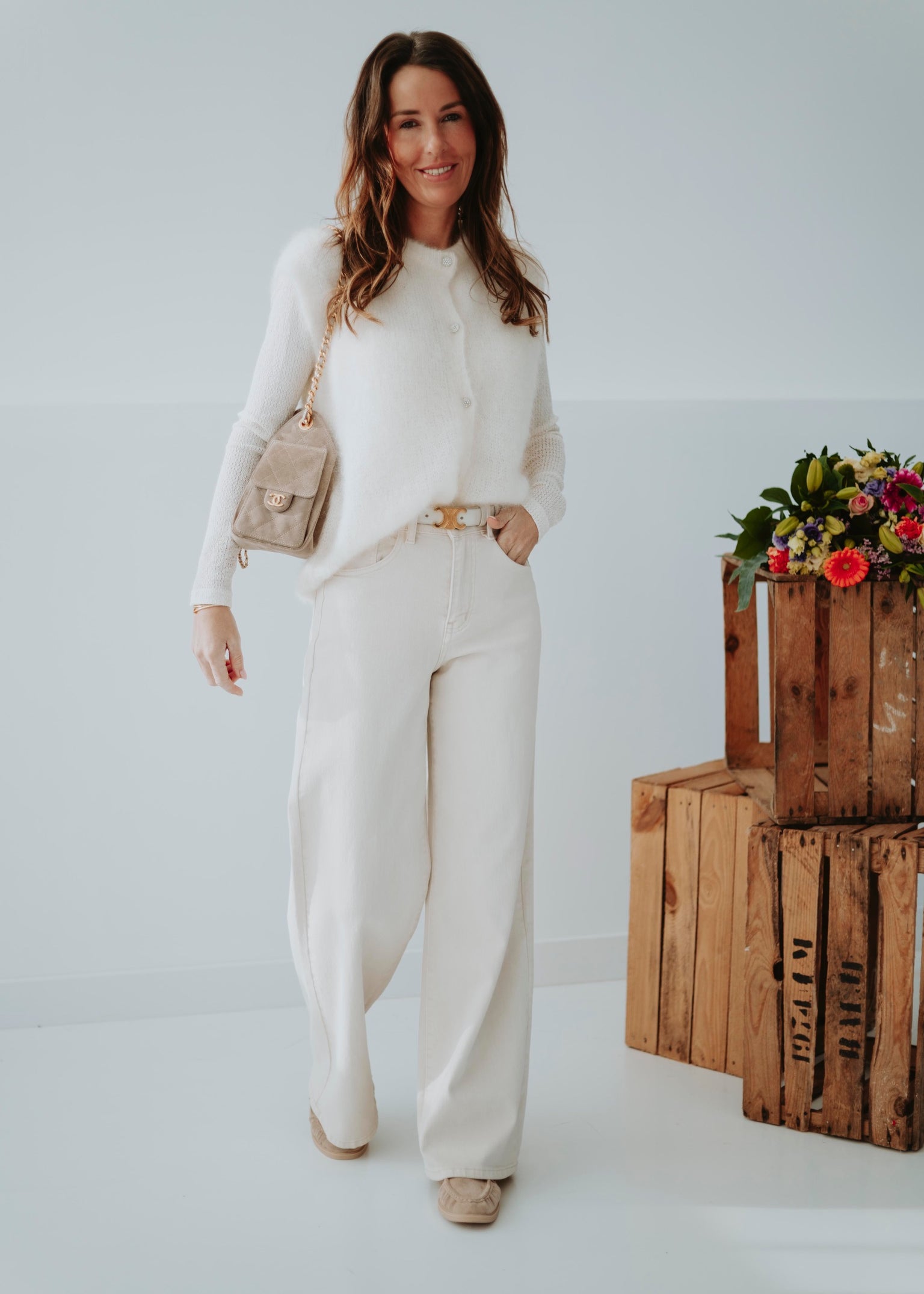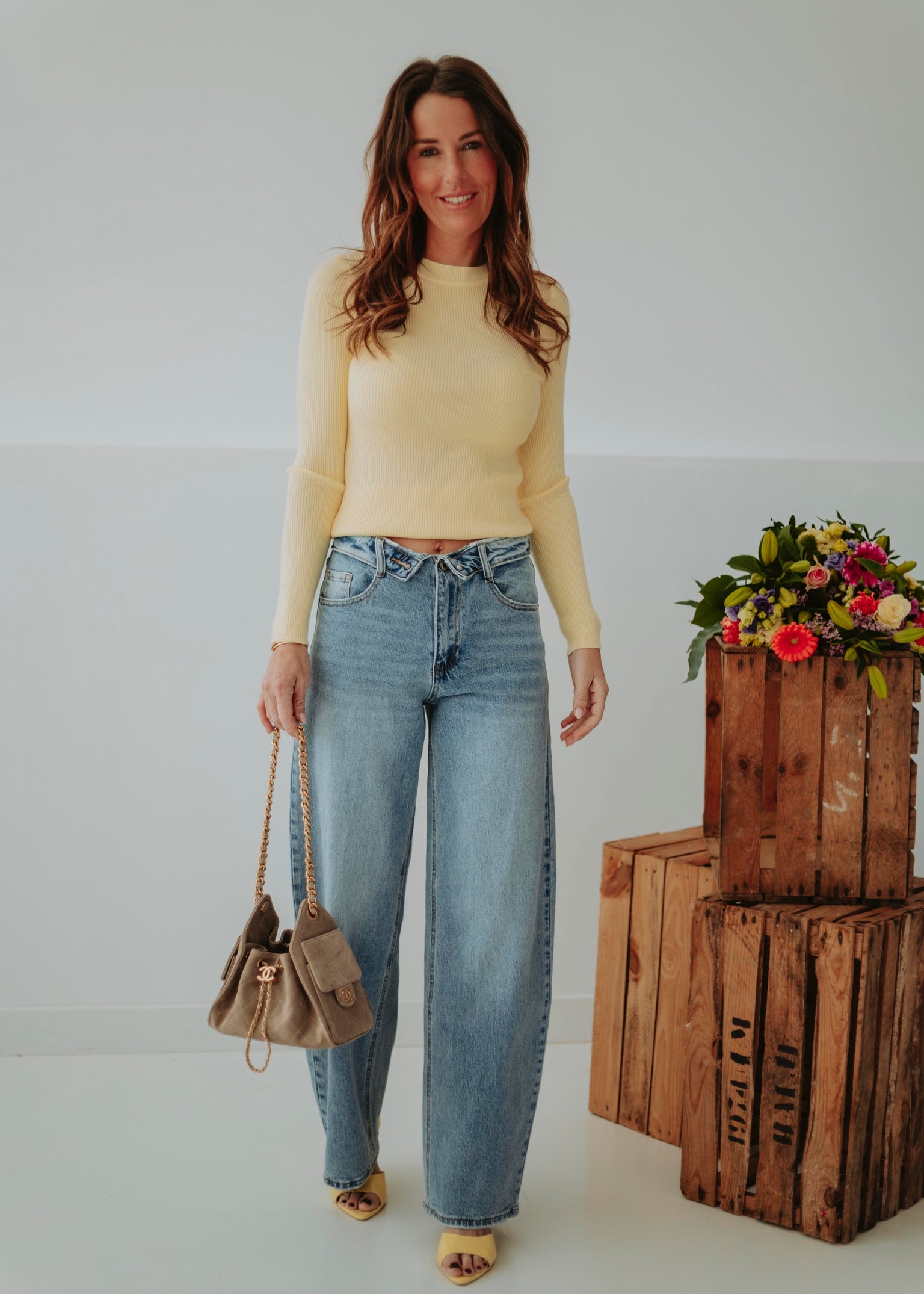 BEIGE WIDE LEG JEANS 9135-6