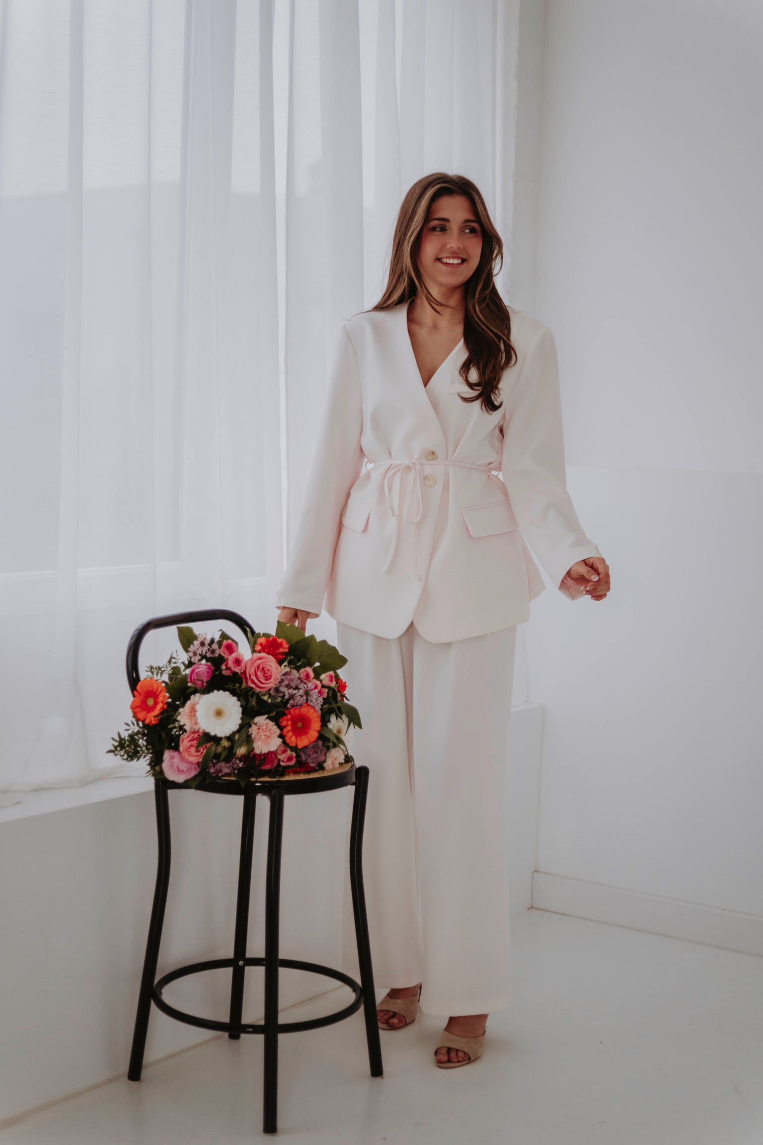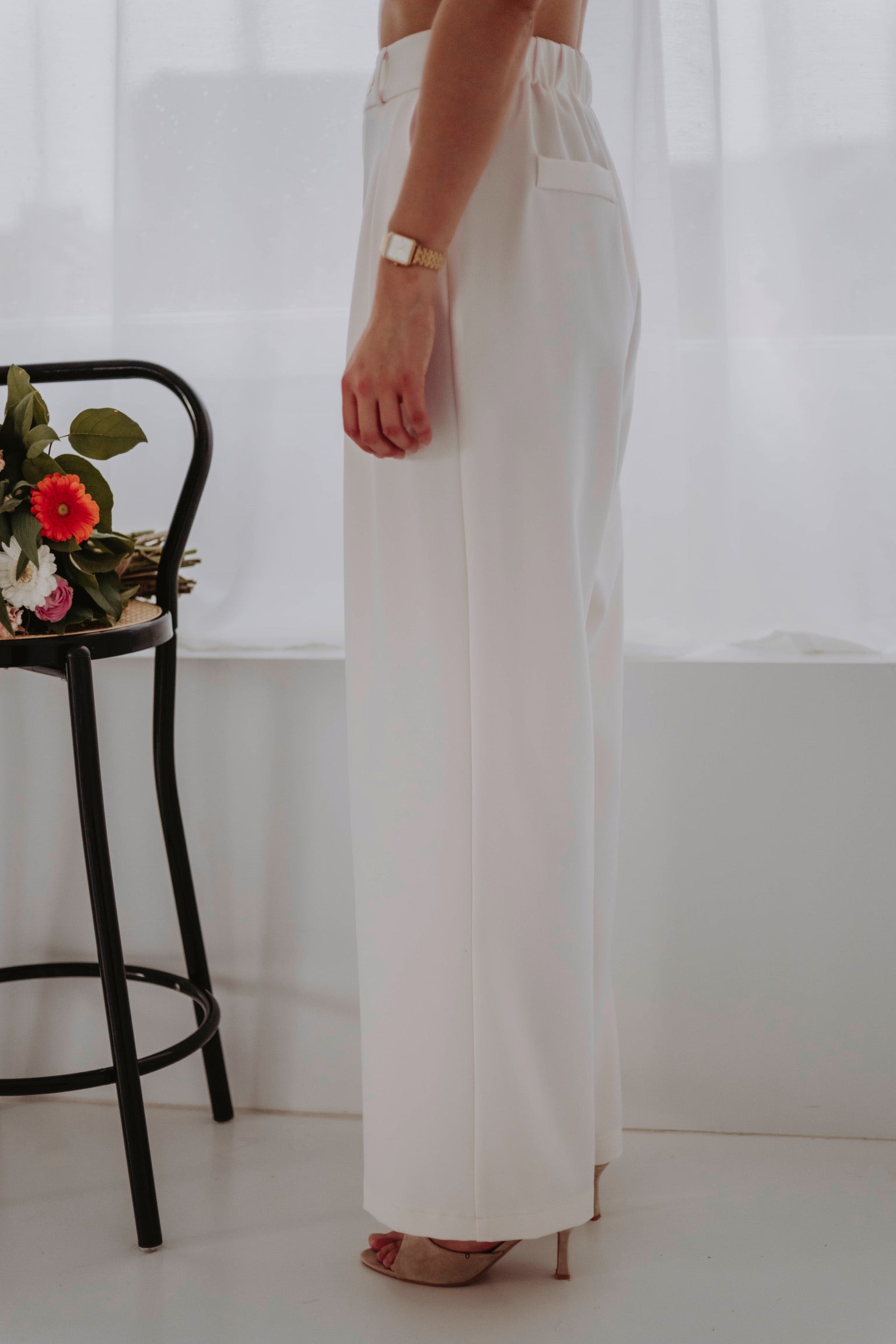 Een elegante broek met een zachte kleur die meteen een frisse, verzorgde uitstraling geeft. Draagt prachtig als set met het bijpassende jasje, maar staat net zo sterk op zichzelf. Perfect voor dagen waarop je moeiteloos chic voor de dag wilt komen.