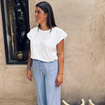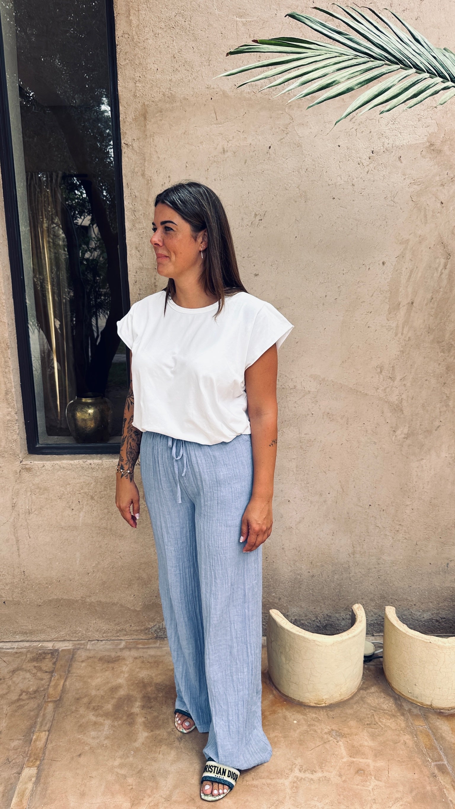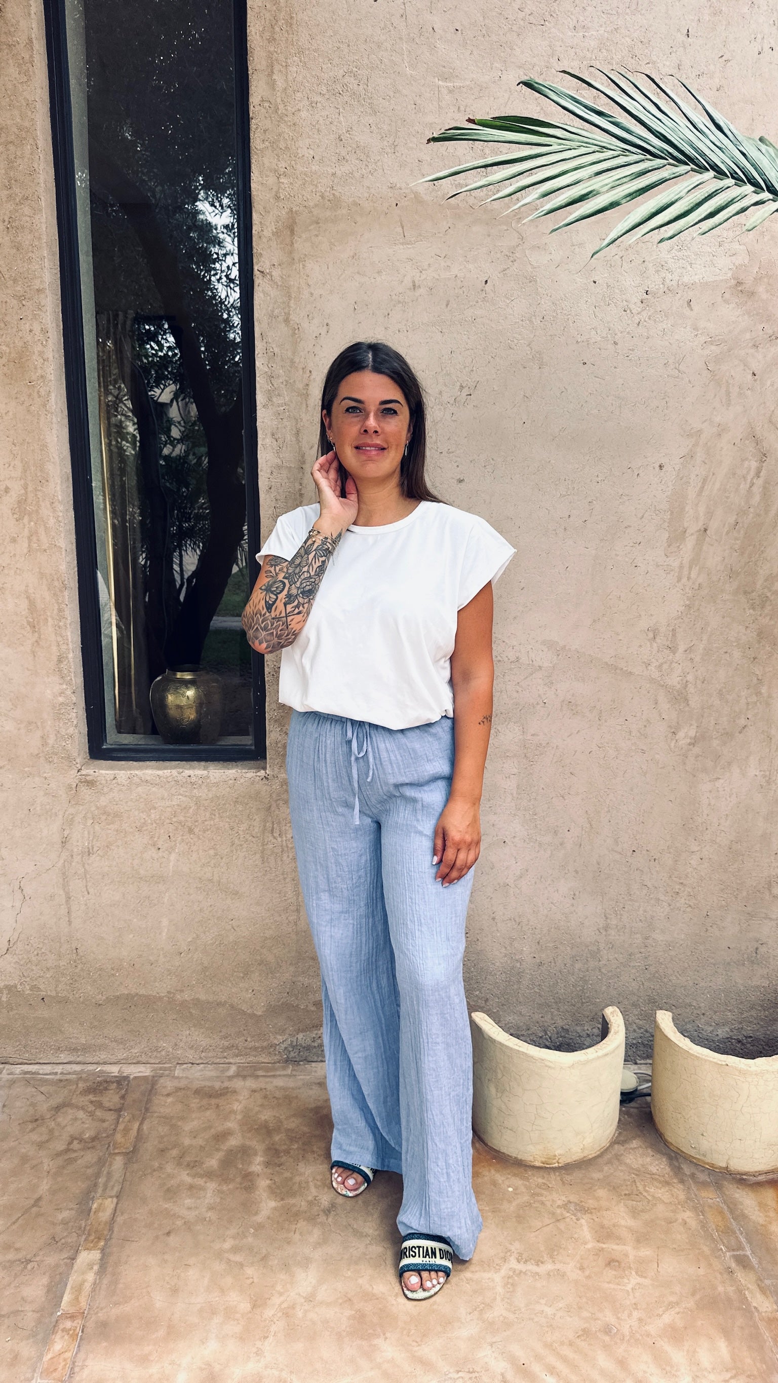 Licht als een zeebries en soepel in elke beweging, gemaakt voor ontspannen dagen onder een open hemel. Het verstelbare koordje in de taille voegt comfort toe aan deze moeiteloos elegante essential.