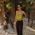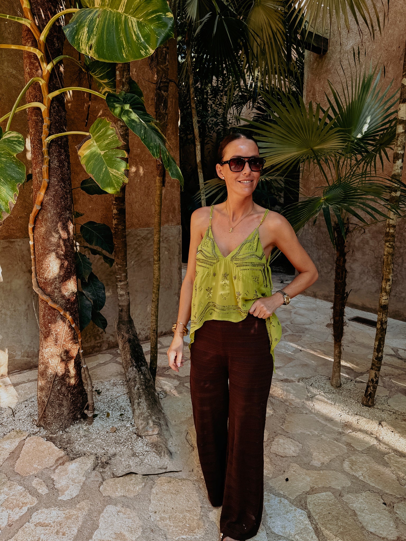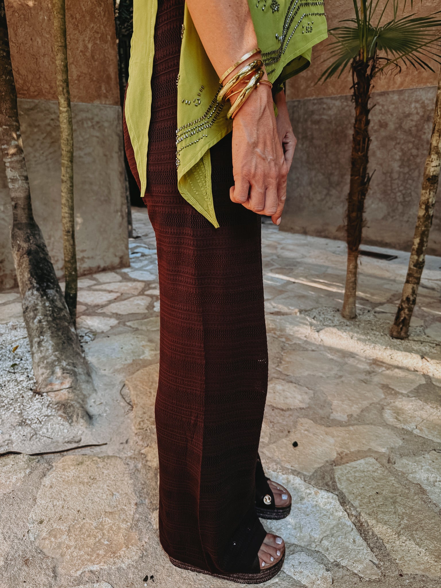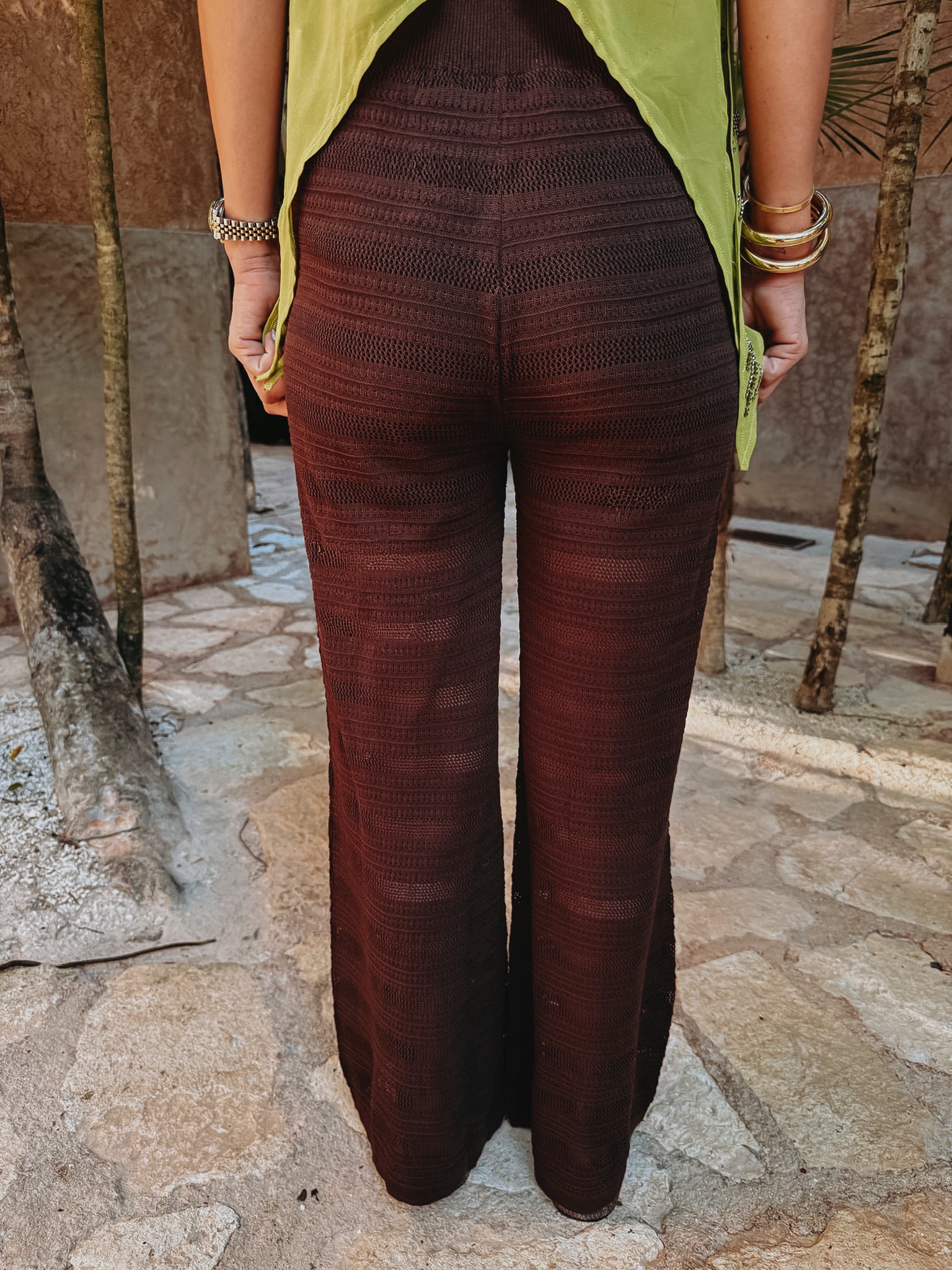 Luchtige crochet pants met een bohemien touch die zachtjes meebewegen bij elke stap. Ideaal voor warme dagen vol zon, kleurrijke markten en ontspannen strandavonden.