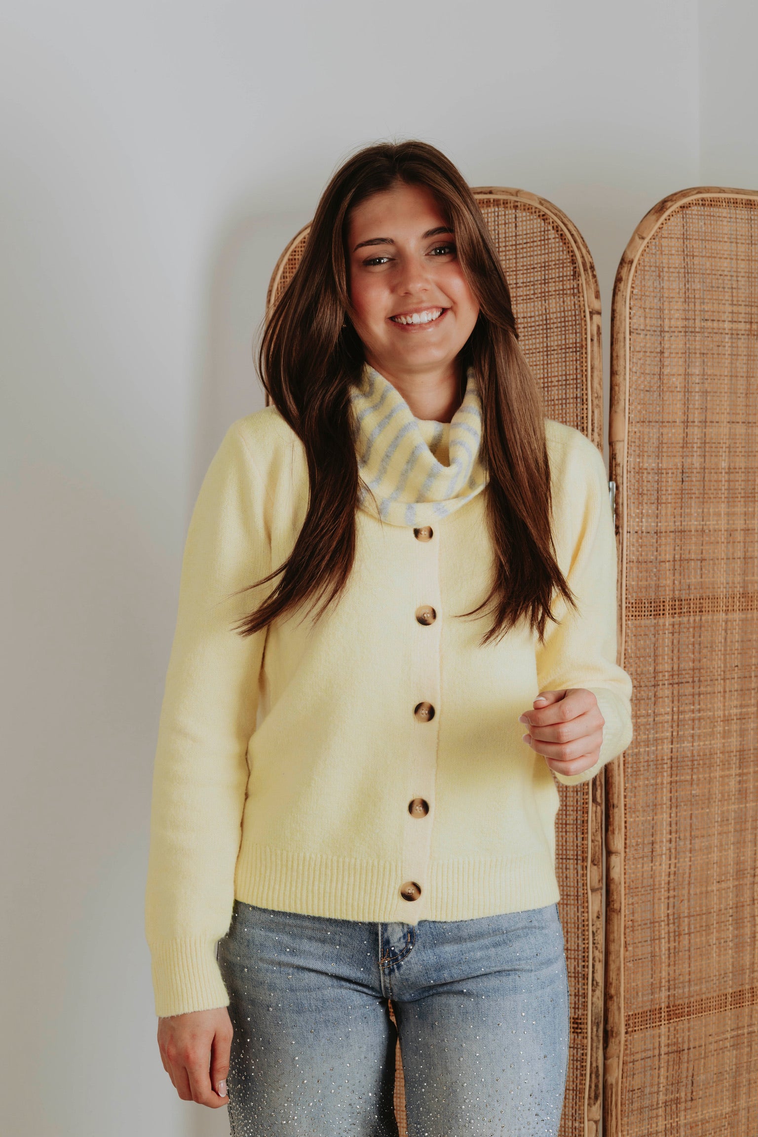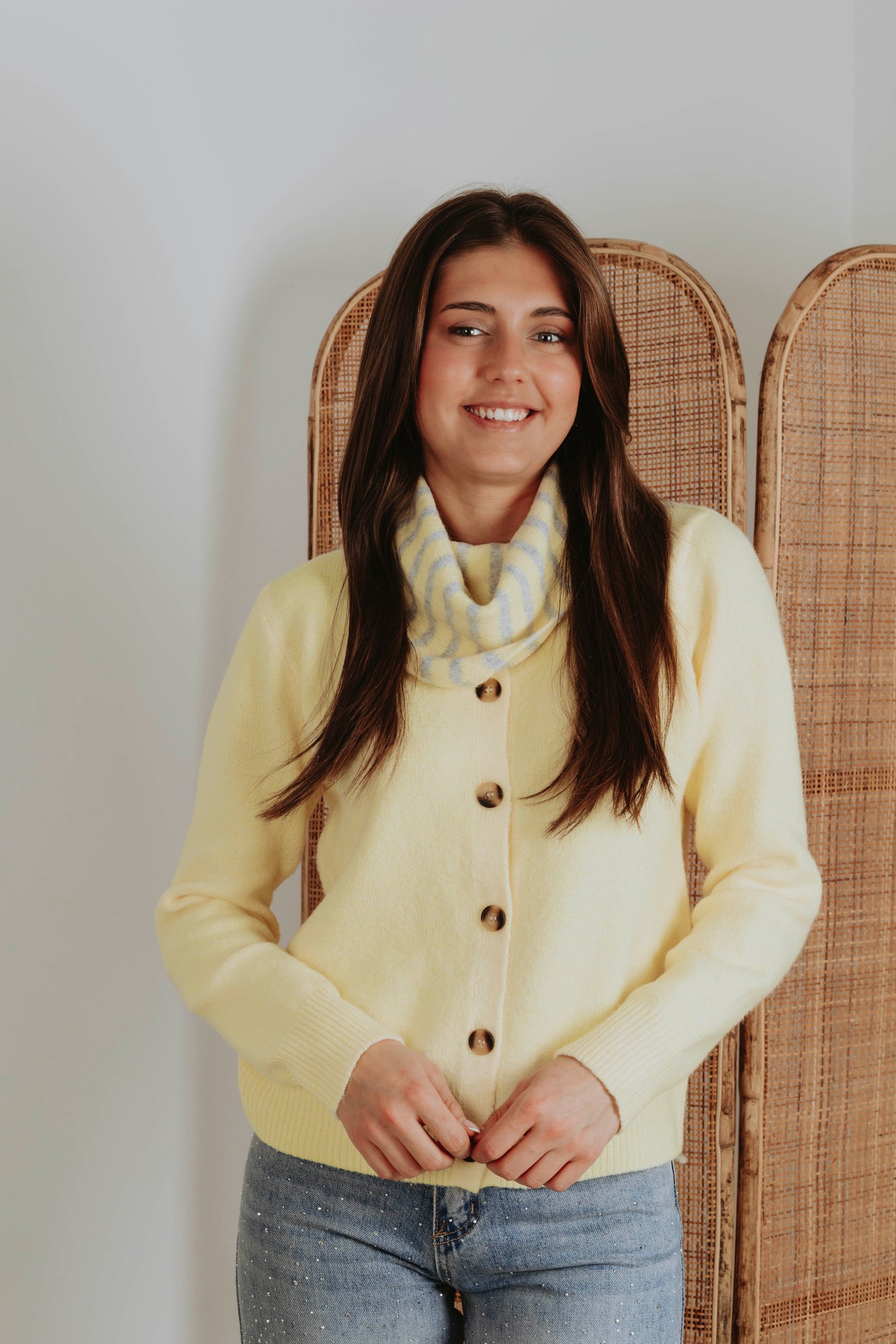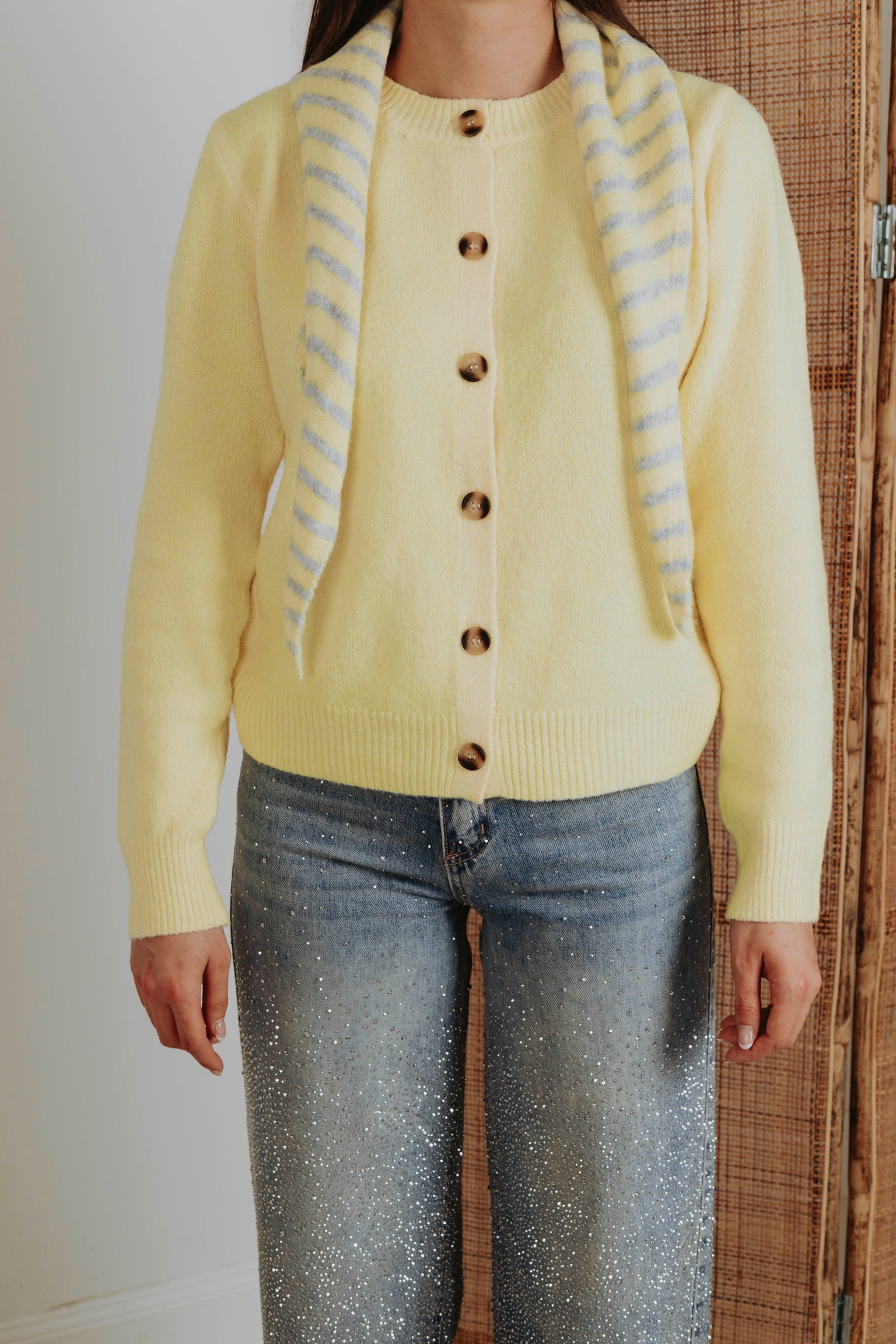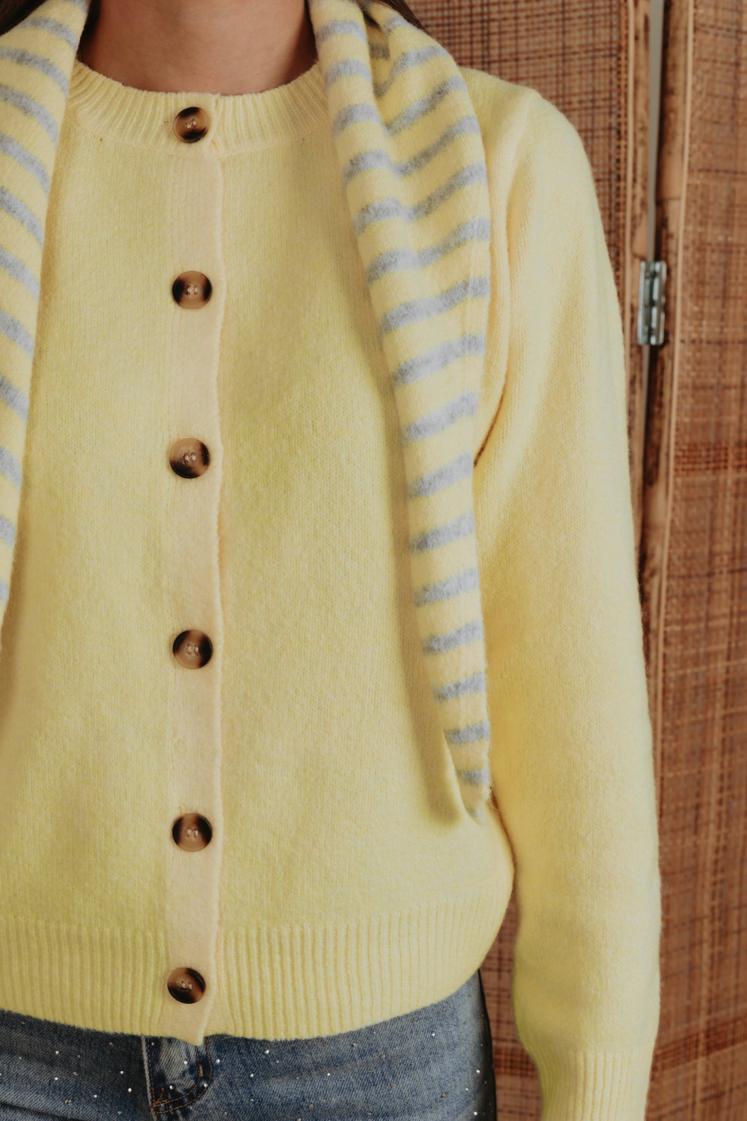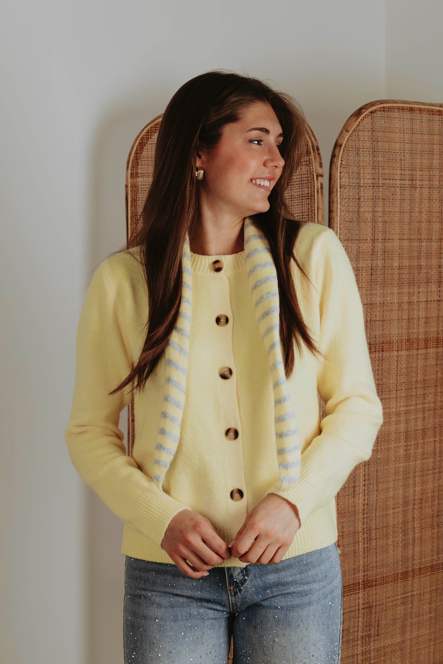 BOWIE YELLOW CARDIGAN WITH STRIPED SCARF