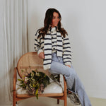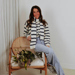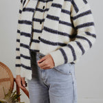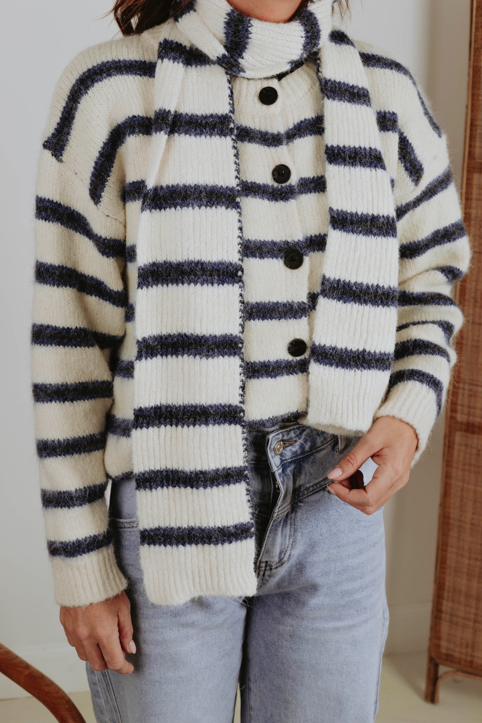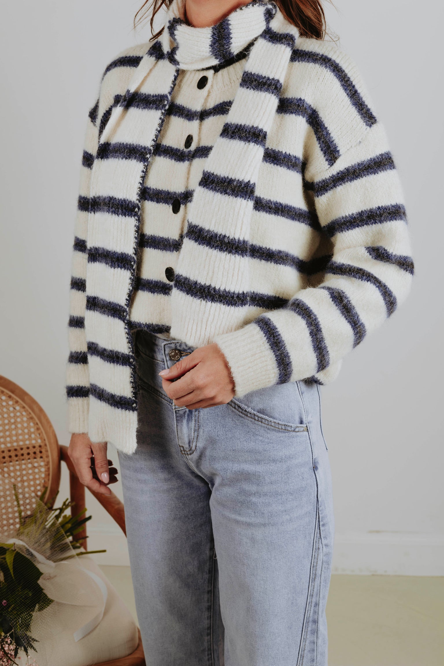 MONA ECRU STRIPED CARDIGAN WITH SCARF