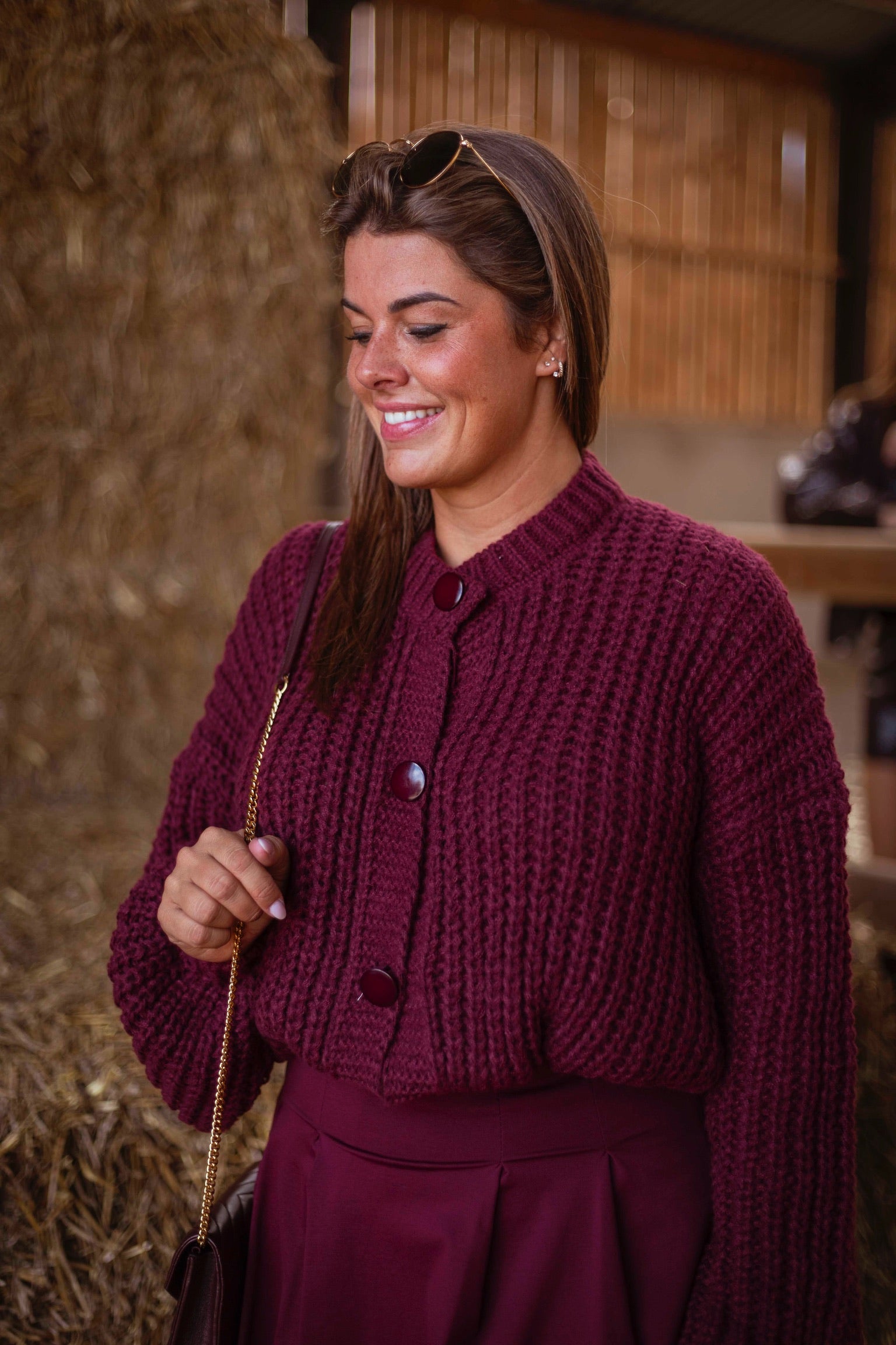 Met zijn diepe bordeauxkleur en klassieke knopen is dit het soort vest dat je keer op keer uit je kast haalt. Zacht, warm en eindeloos combineerbaar voor frisse herfstdagen.