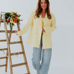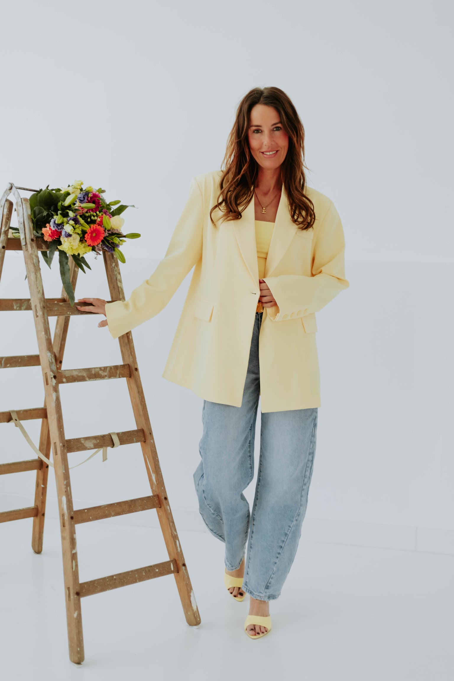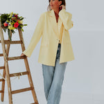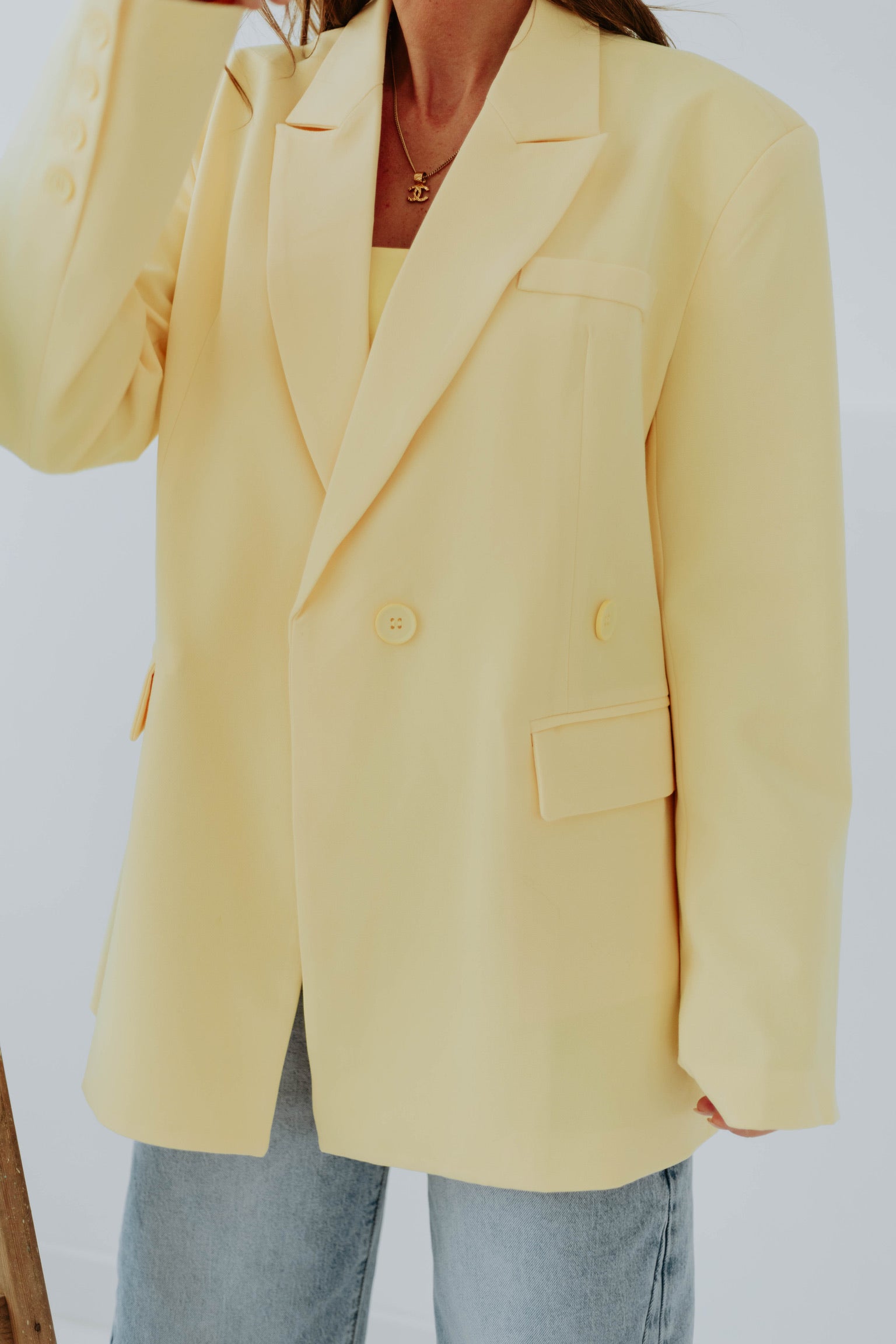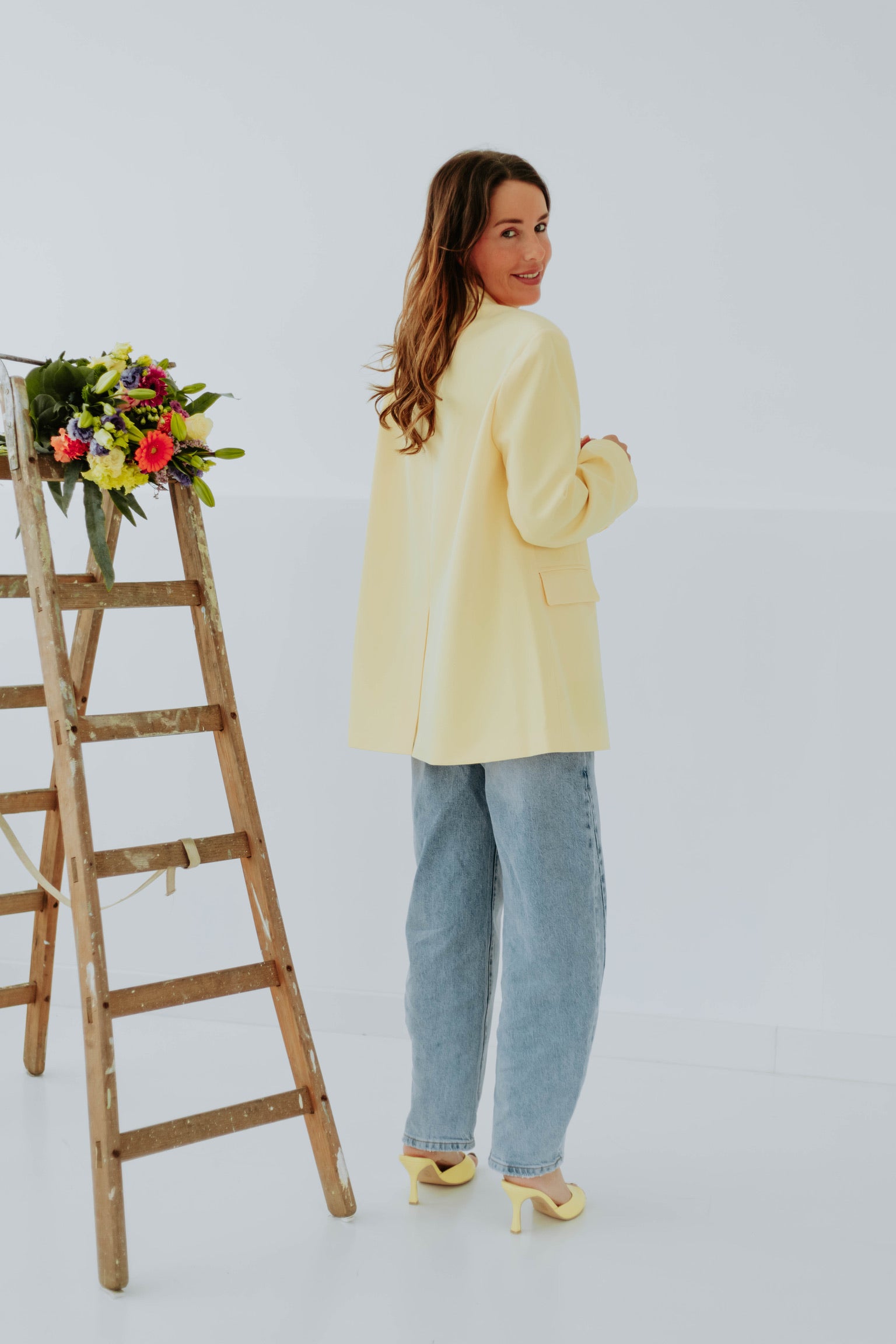De zachte botergele tint brengt meteen licht en frisheid in je look. Het strakke silhouet krijgt hierdoor een speelse, lente-achtige twist zonder aan elegantie in te boeten. Perfect om een eenvoudige outfit in één beweging een zonnige upgrade te geven.