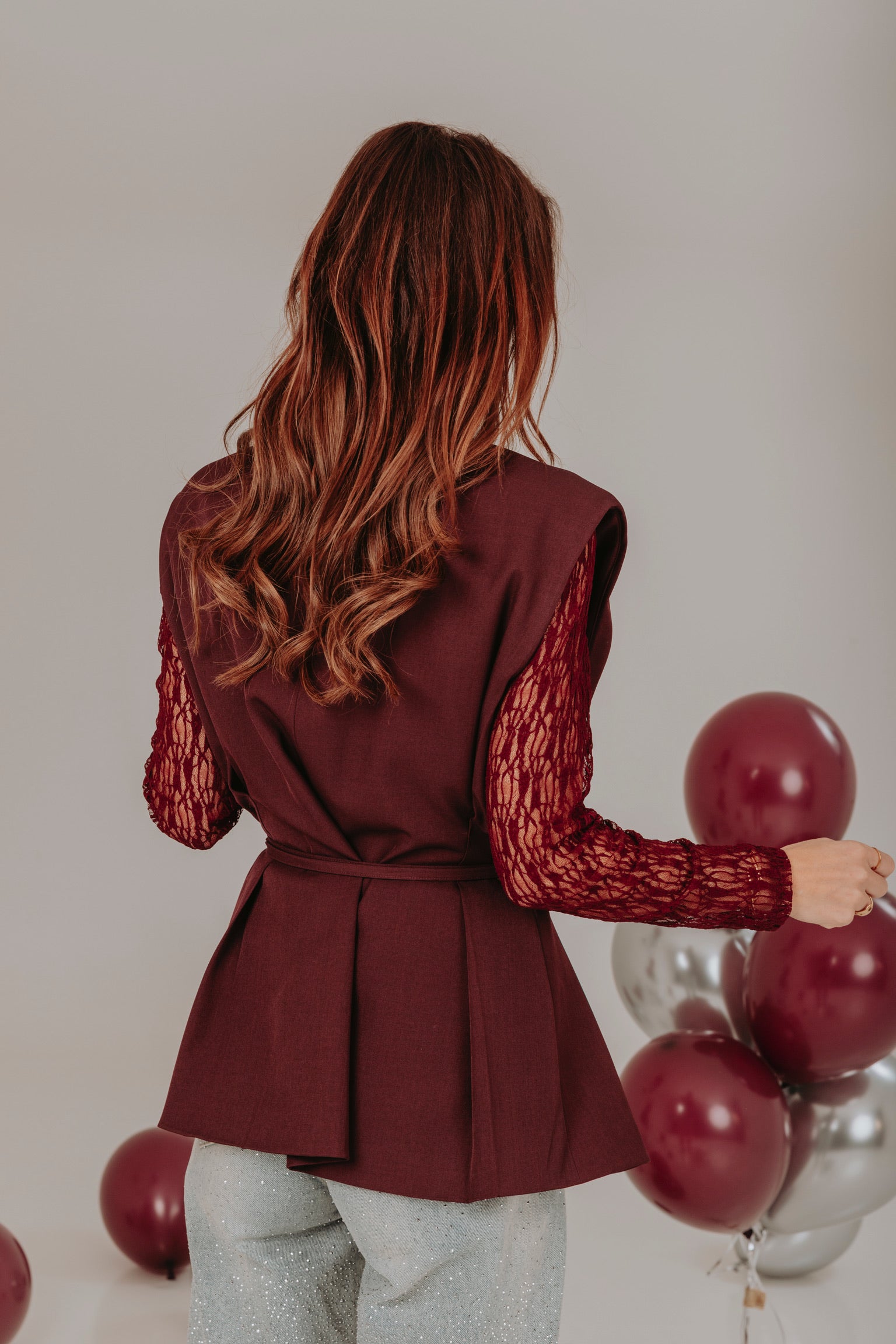 BIRTHDAY GIRL BURGUNDY SLEEVELESS BLAZER