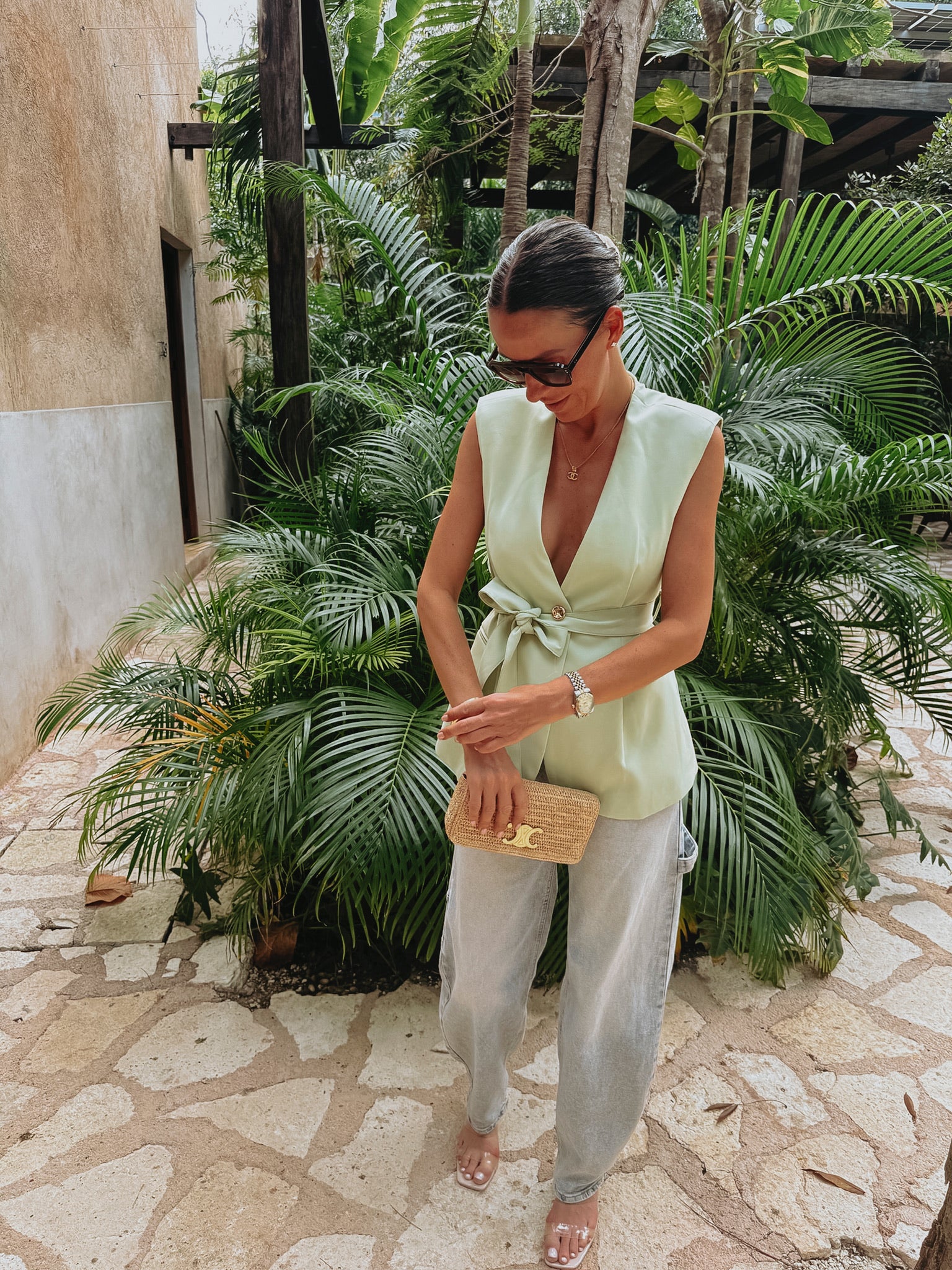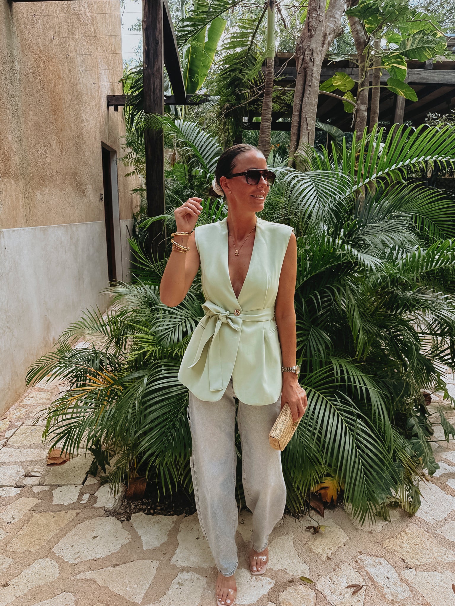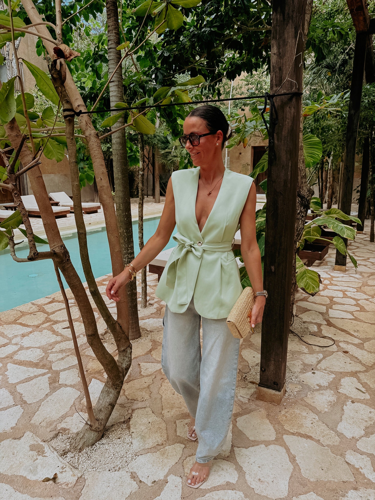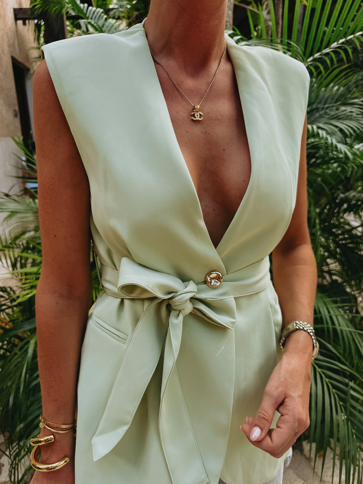 CRUSH CLUB MINT GREEN SLEEVELESS BLAZER