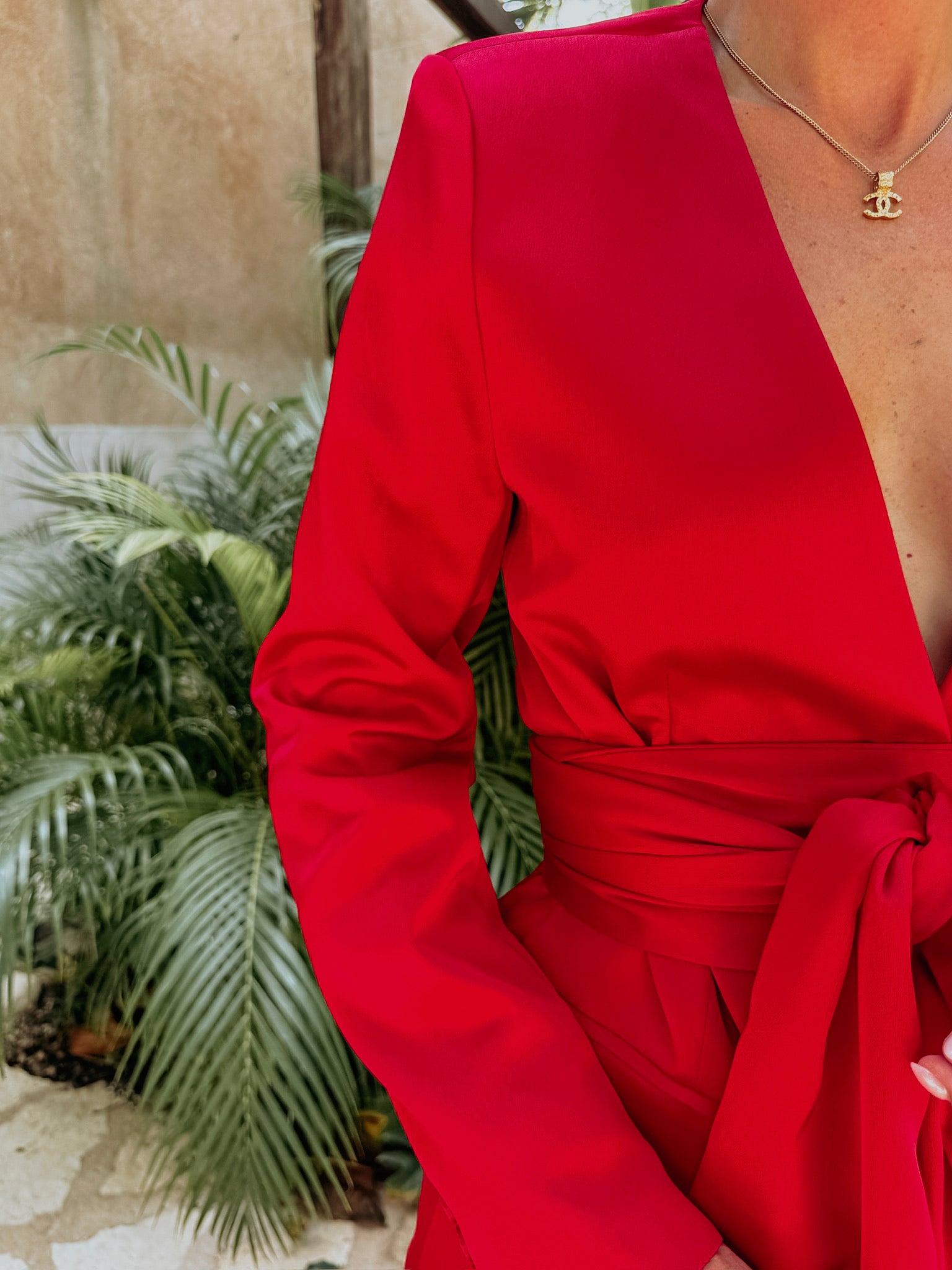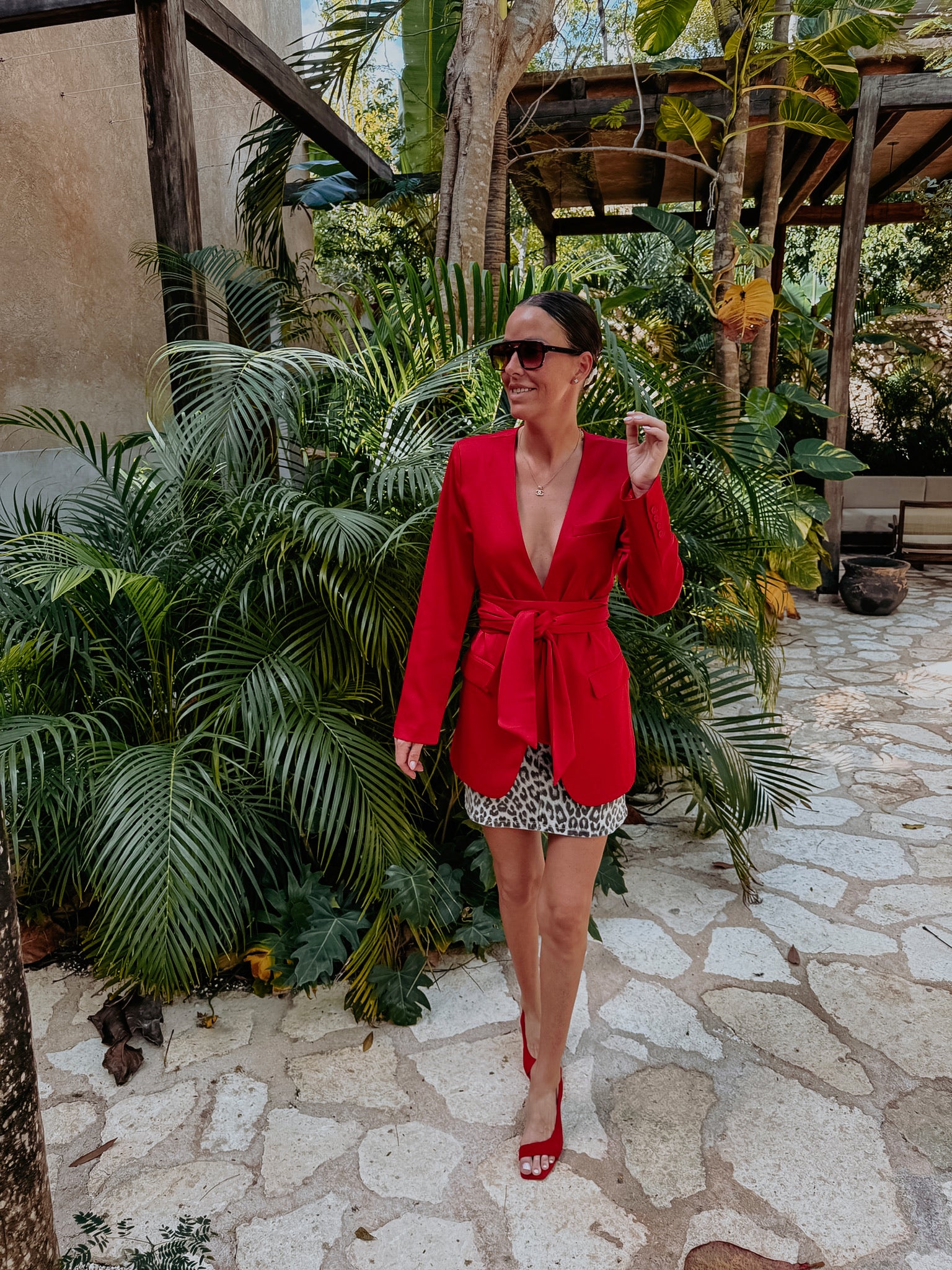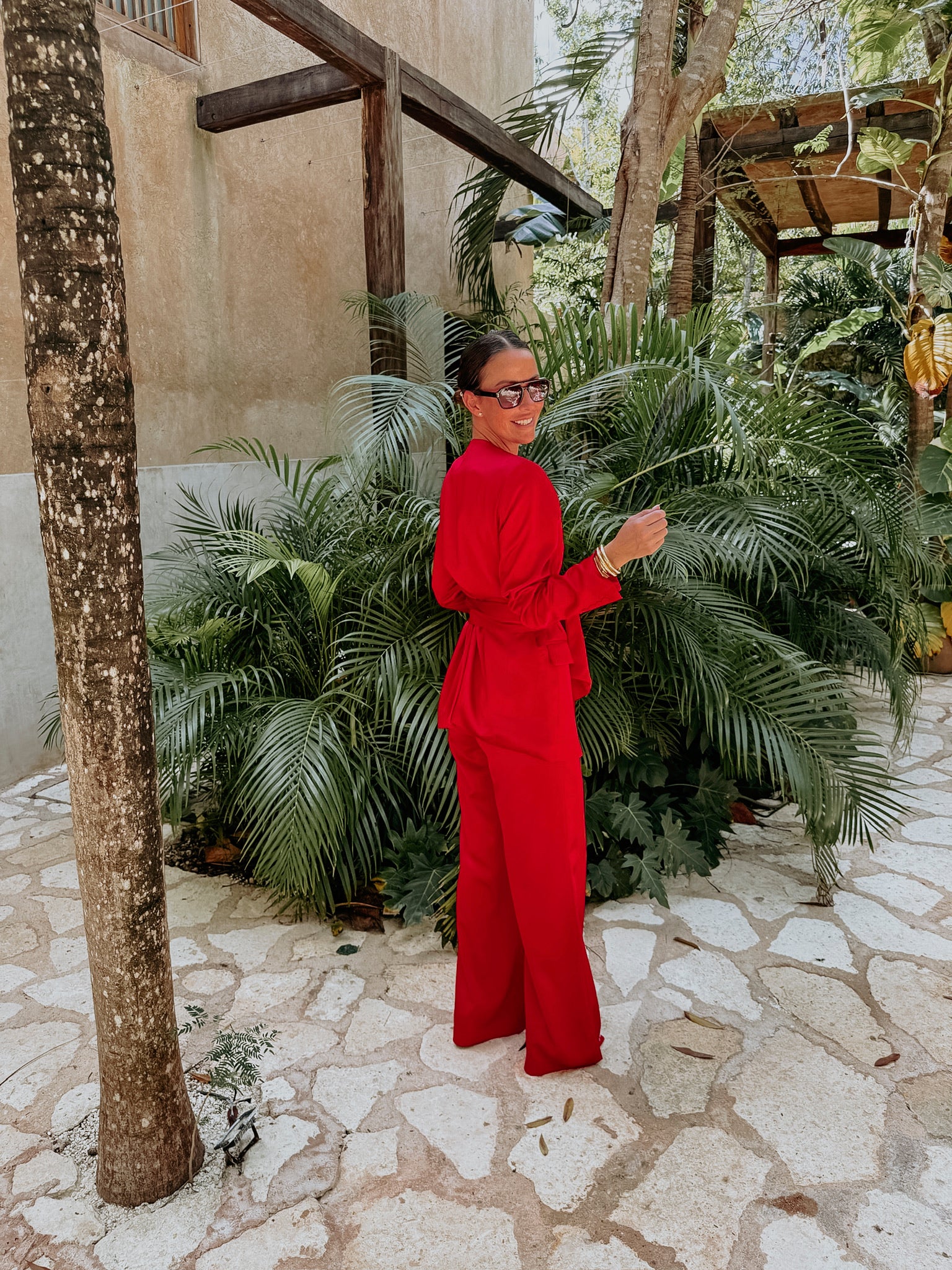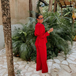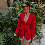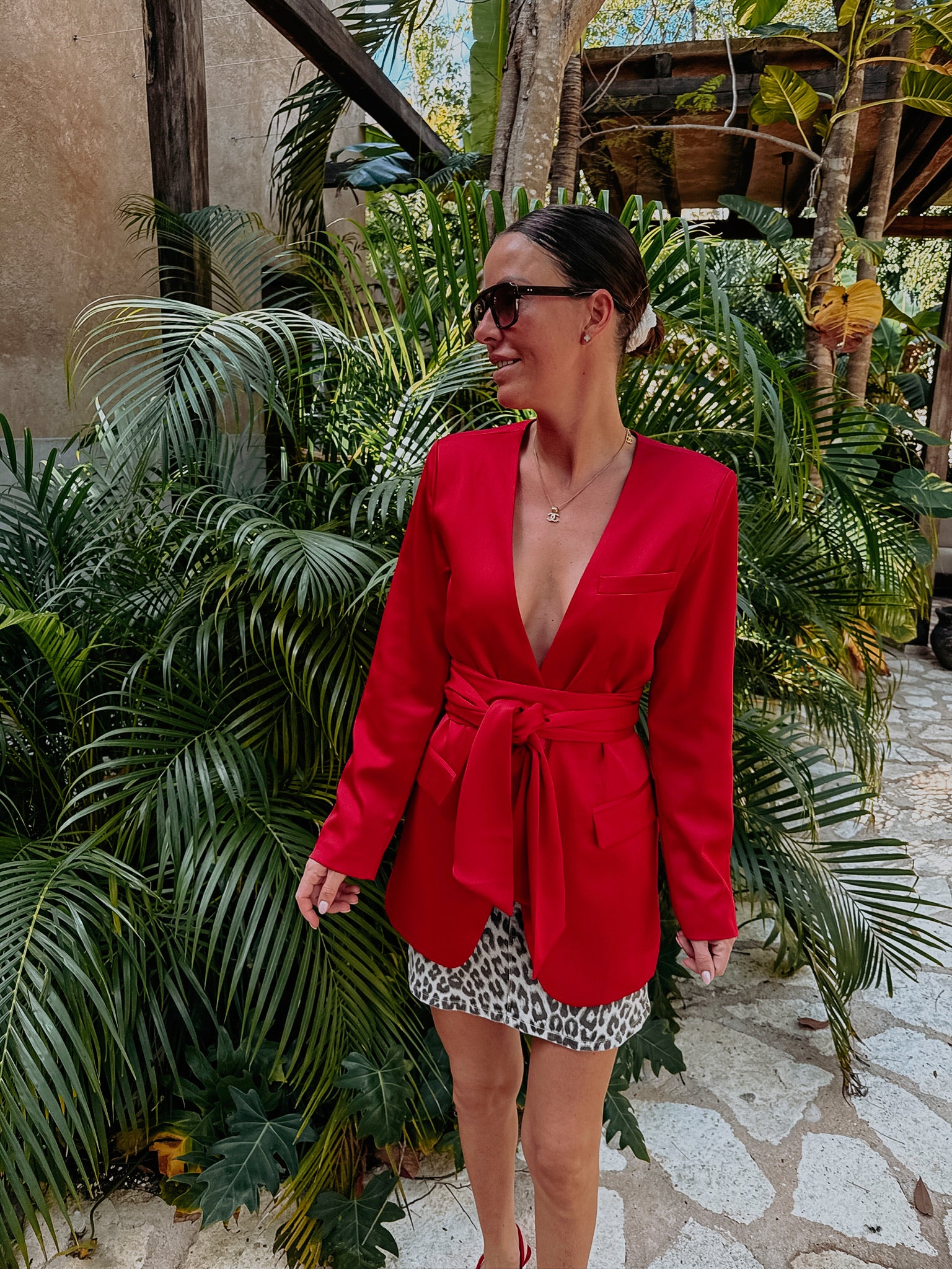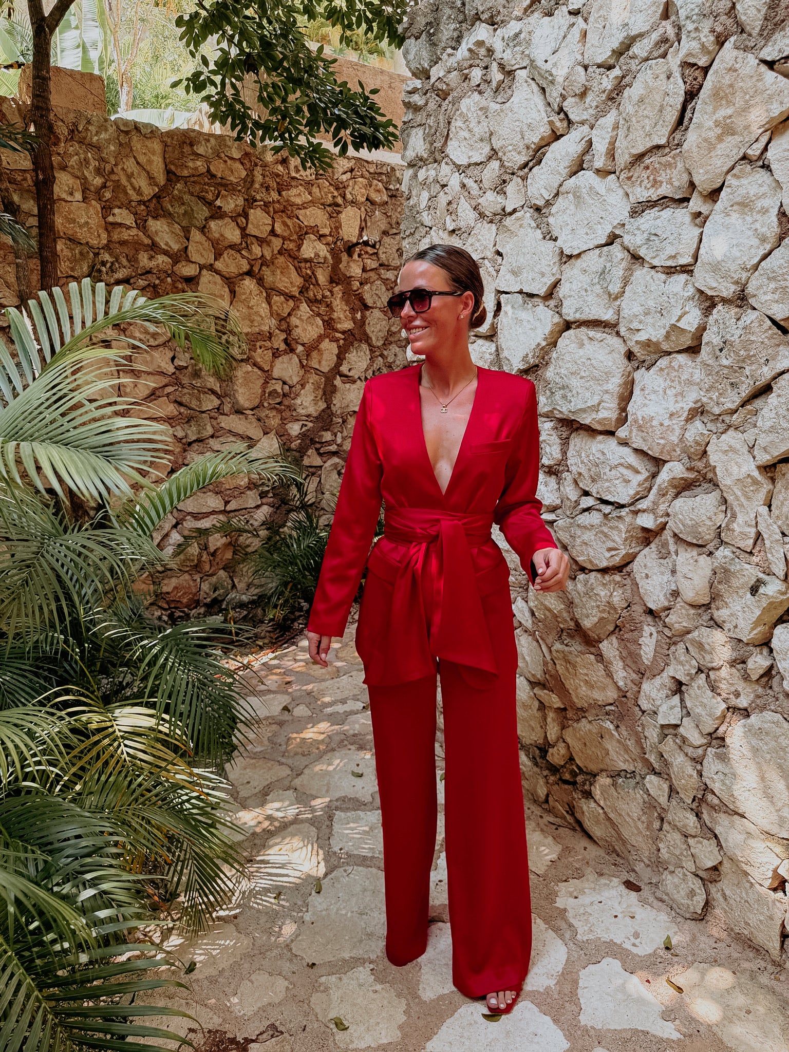 Rode blazer met een taillelint voor een flatterende pasvorm die je look direct opfrist. Draag hem solo of combineer met de bijpassende broek voor een stijlvolle zomeroutfit.
