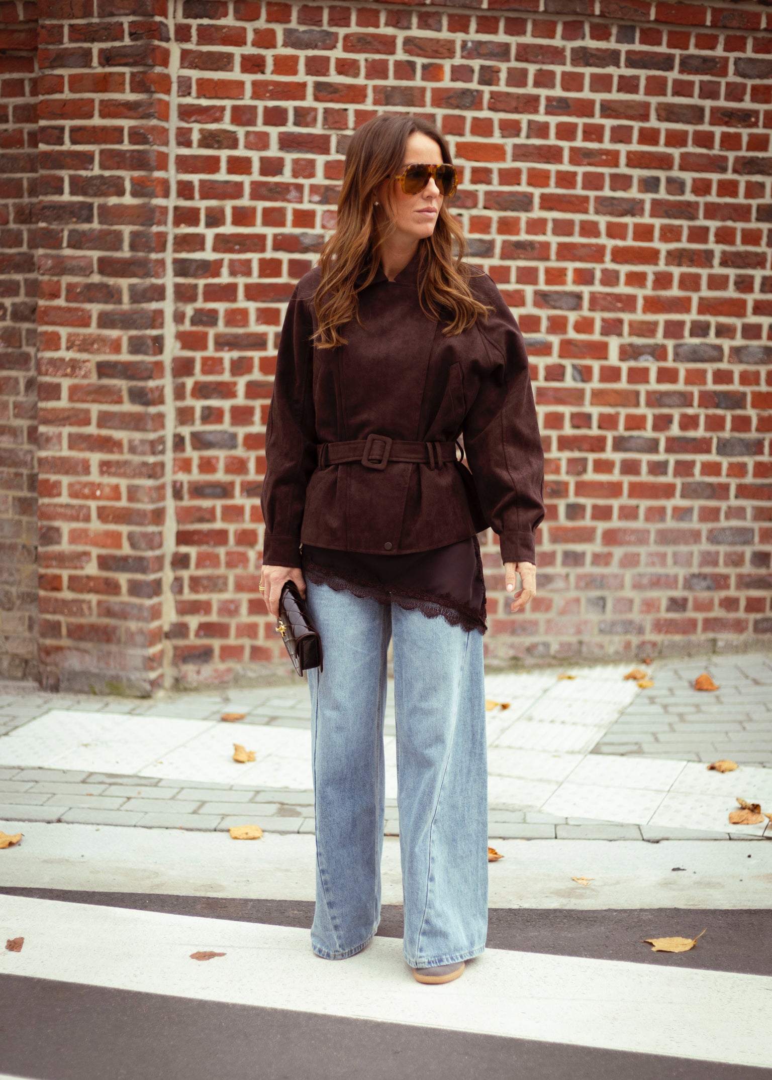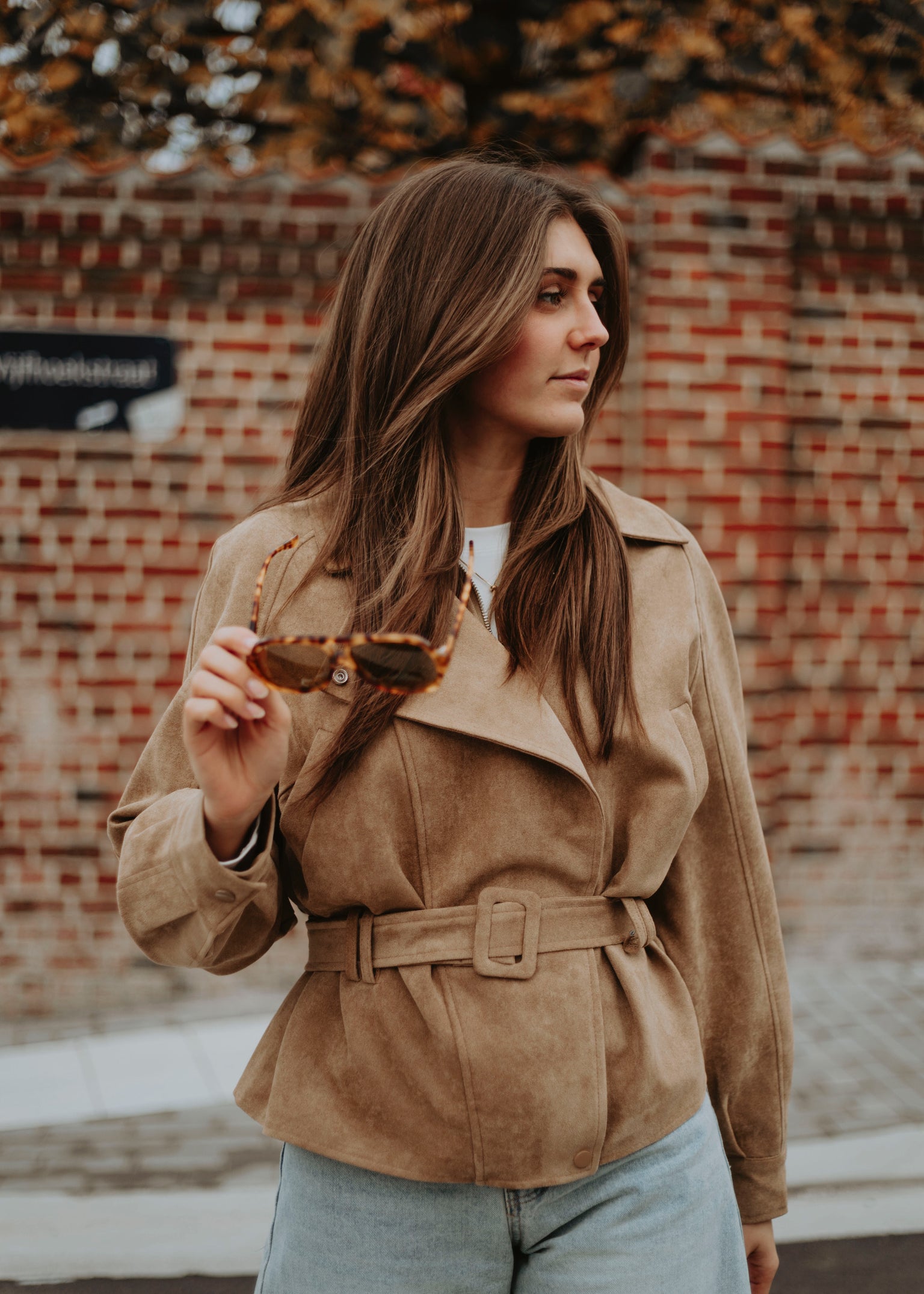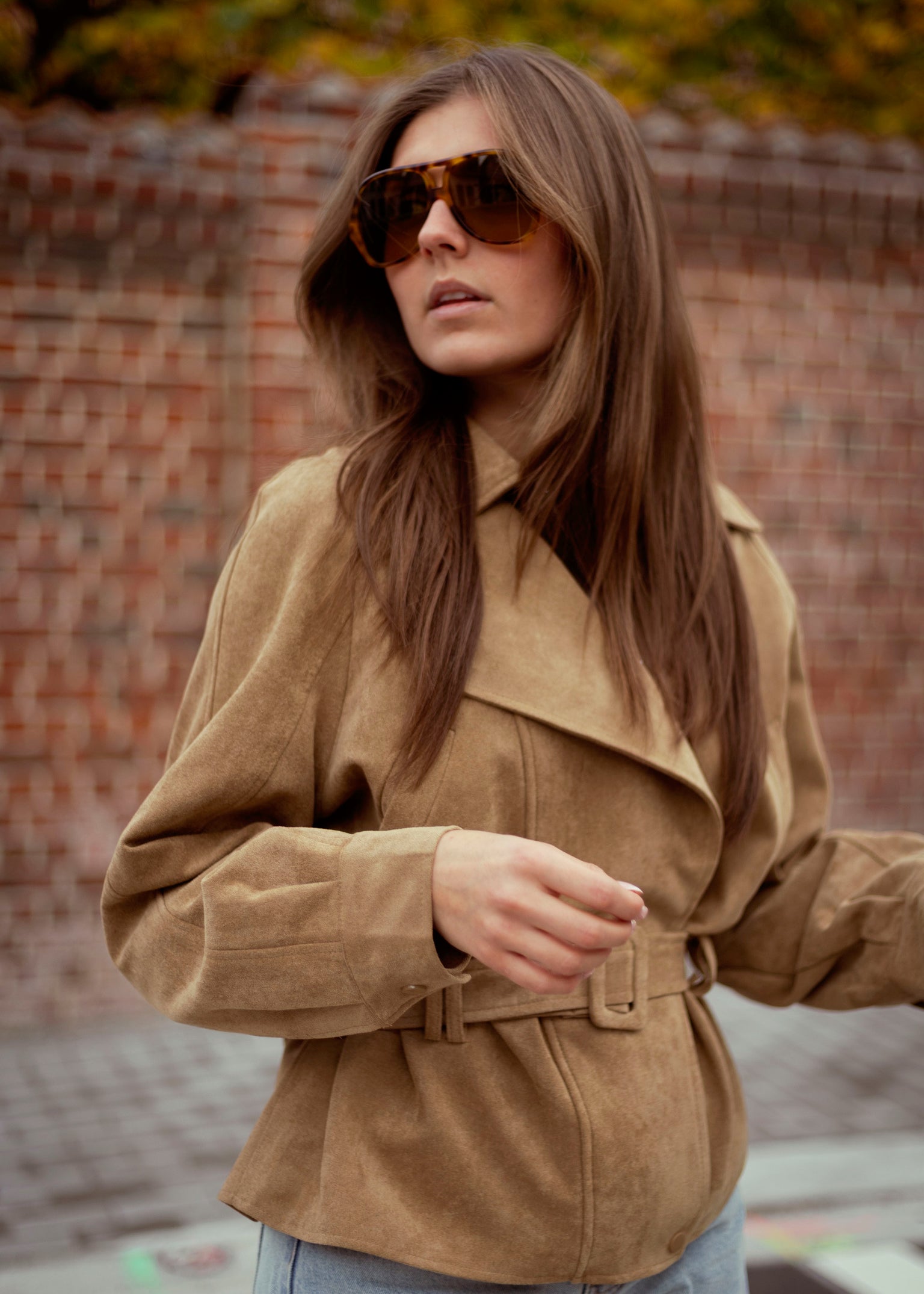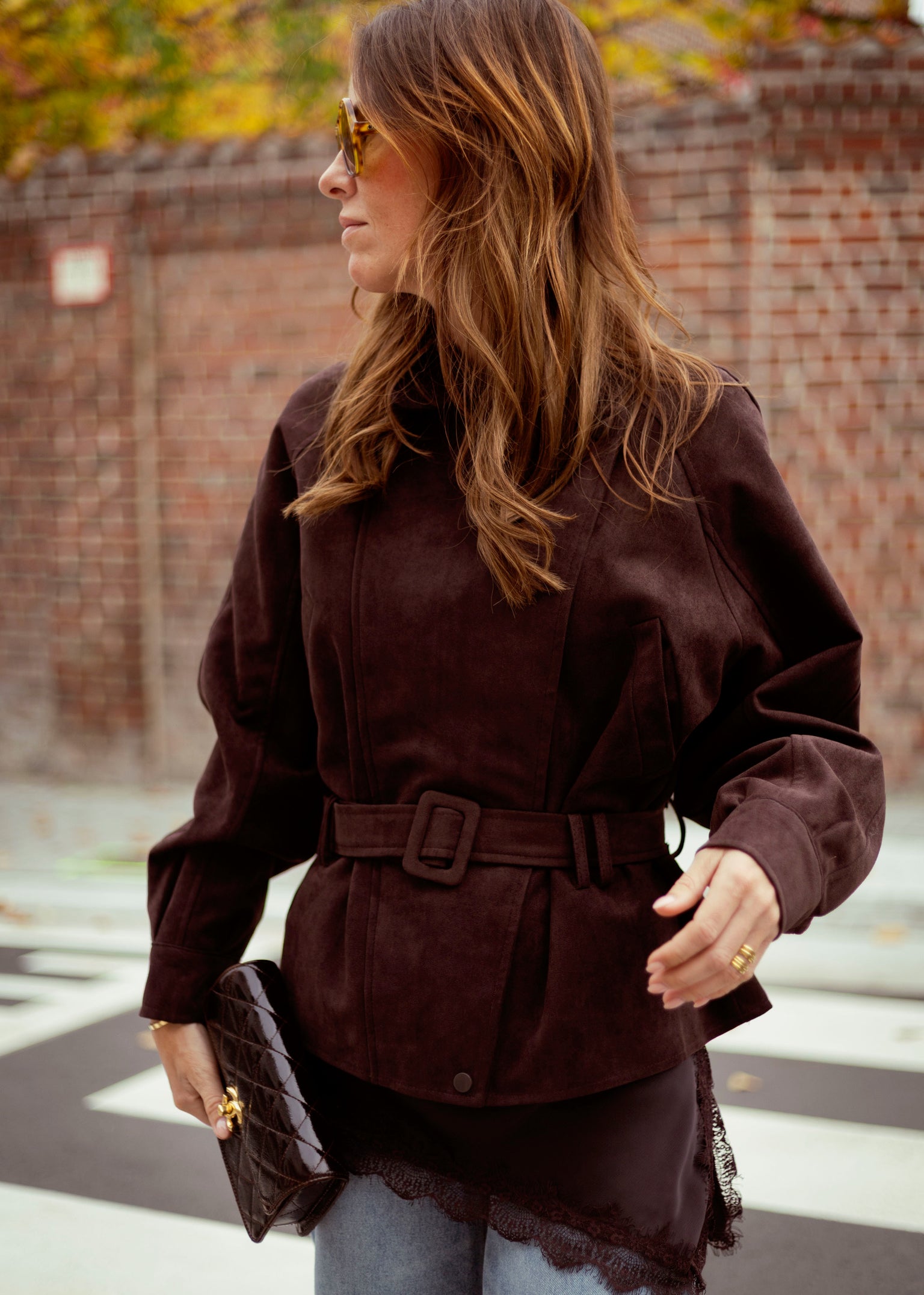 WHISPERING WIND BROWN BELT SUEDE JACKET