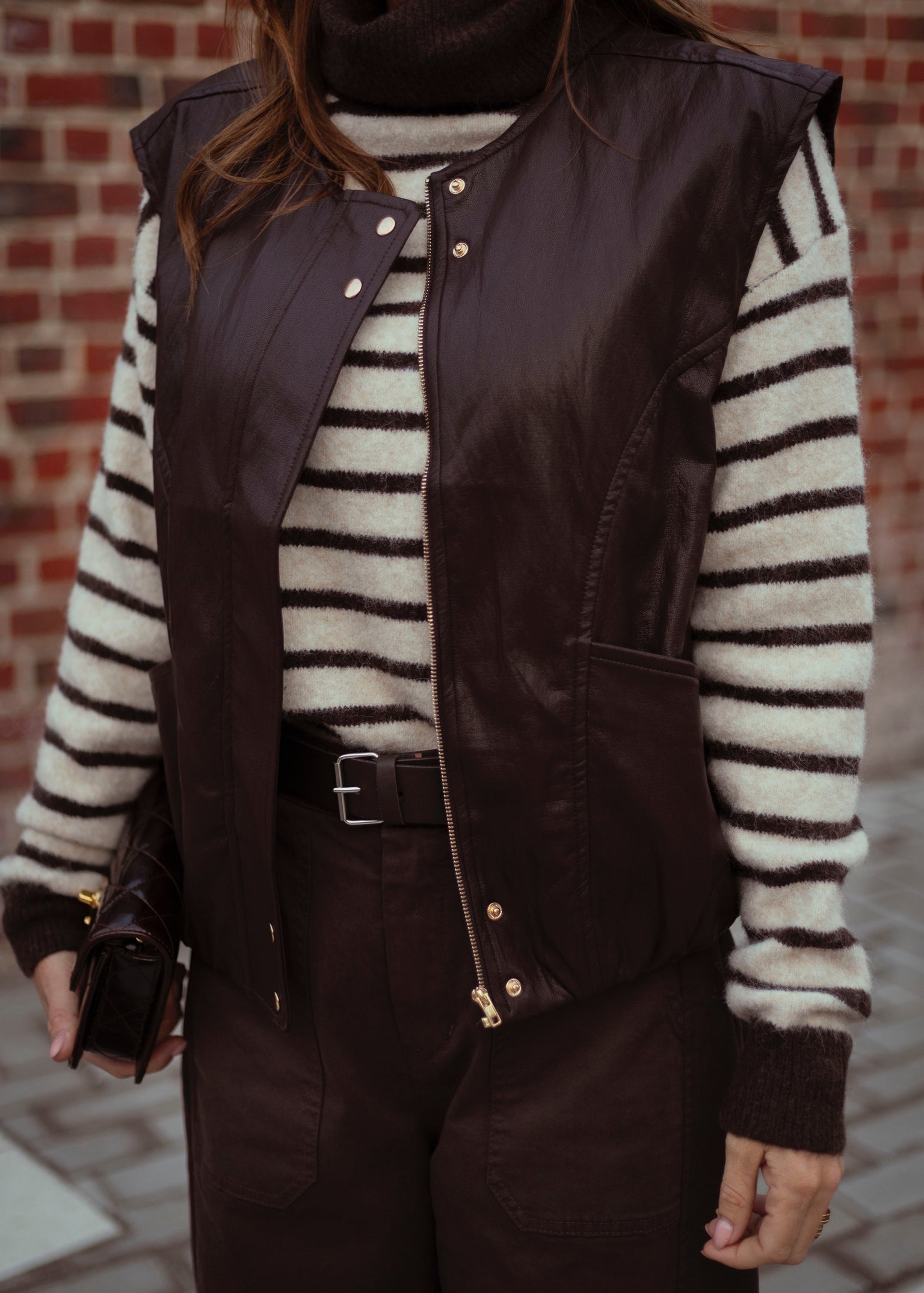 VANCOUVER BROWN SLEEVELESS LEATHER JACKET