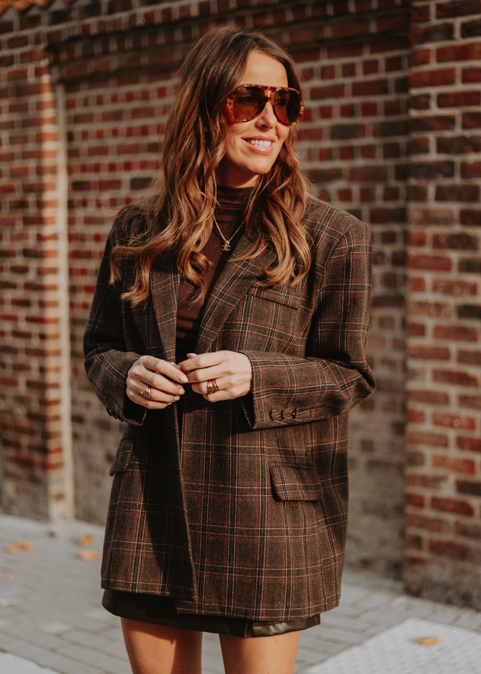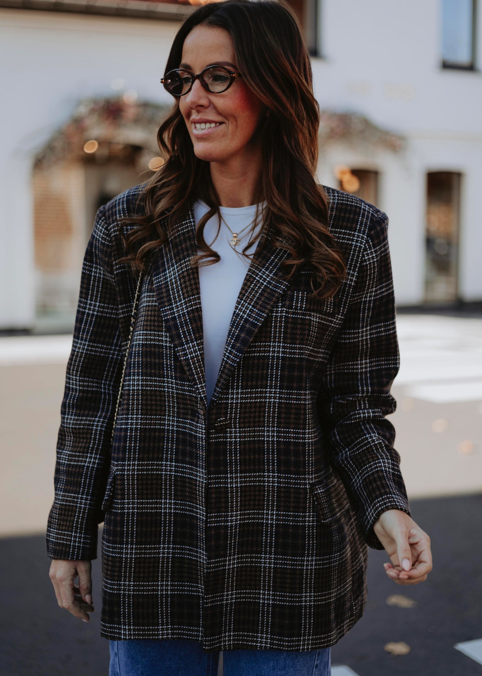 ROMY BROWN CHECKERED BLAZER