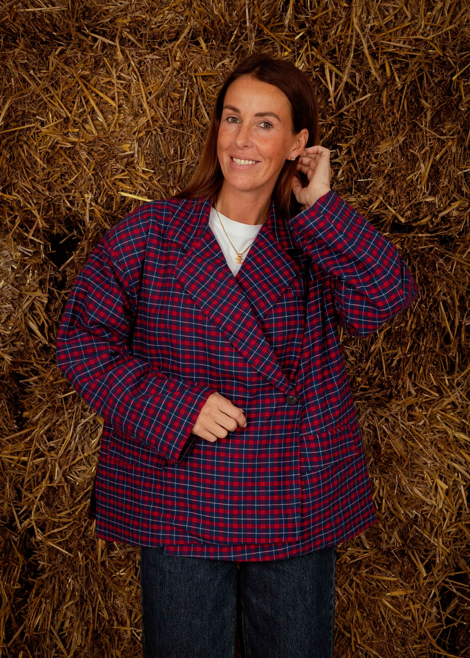 HELLO NOVEMBER DARK BLUE/RED CHECKERED BLAZER