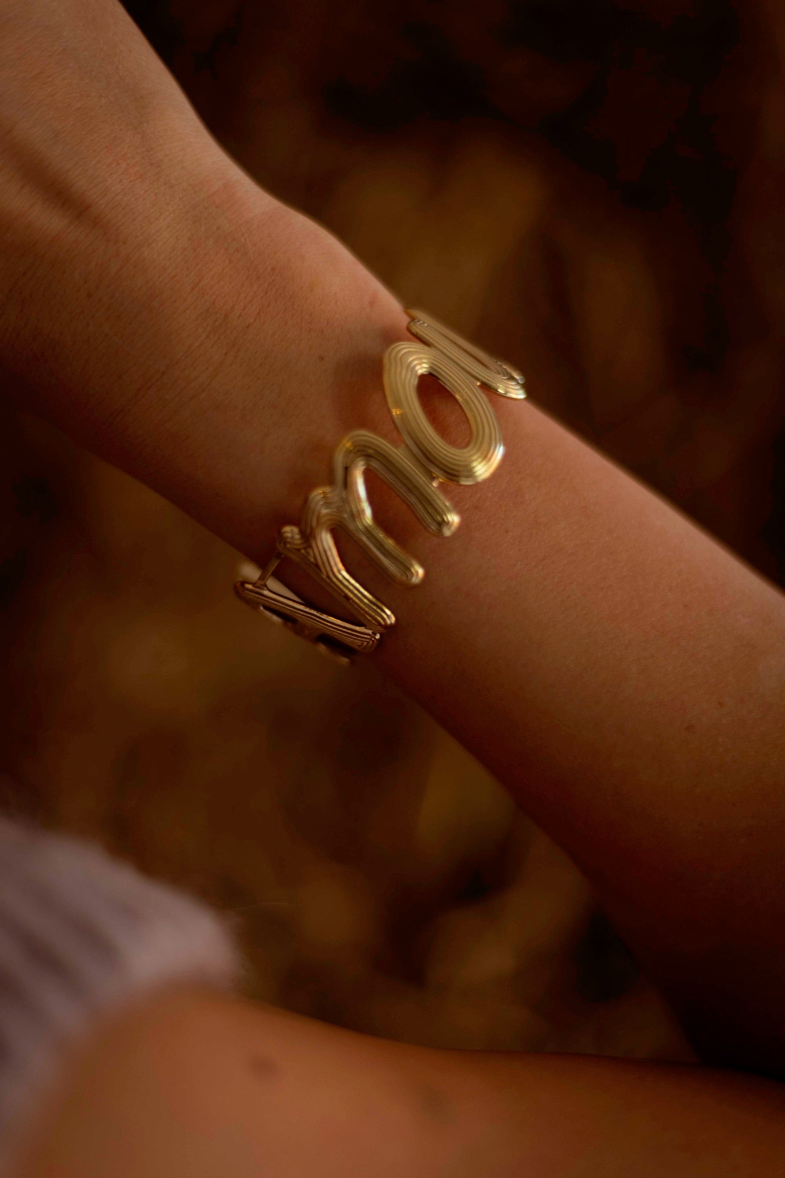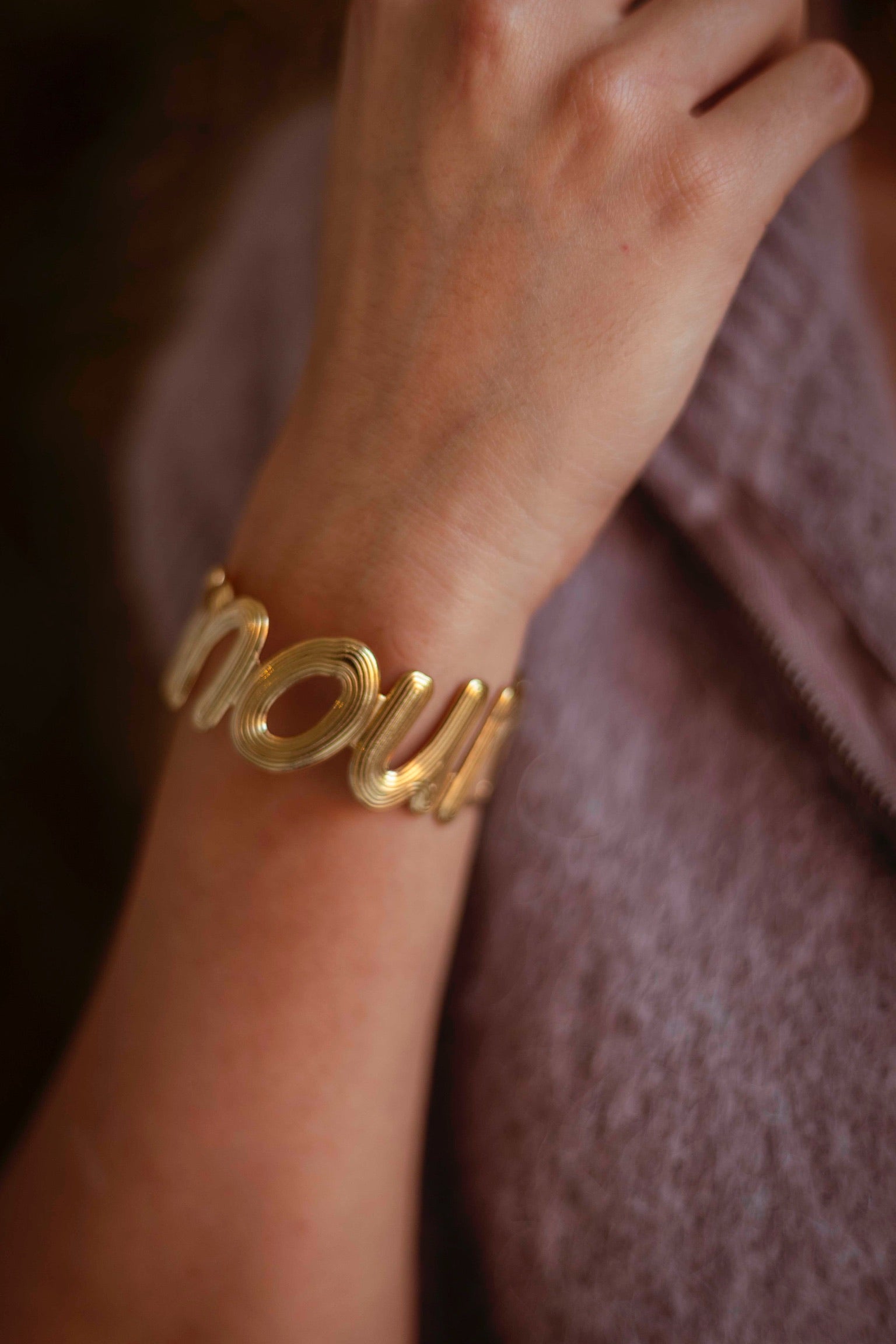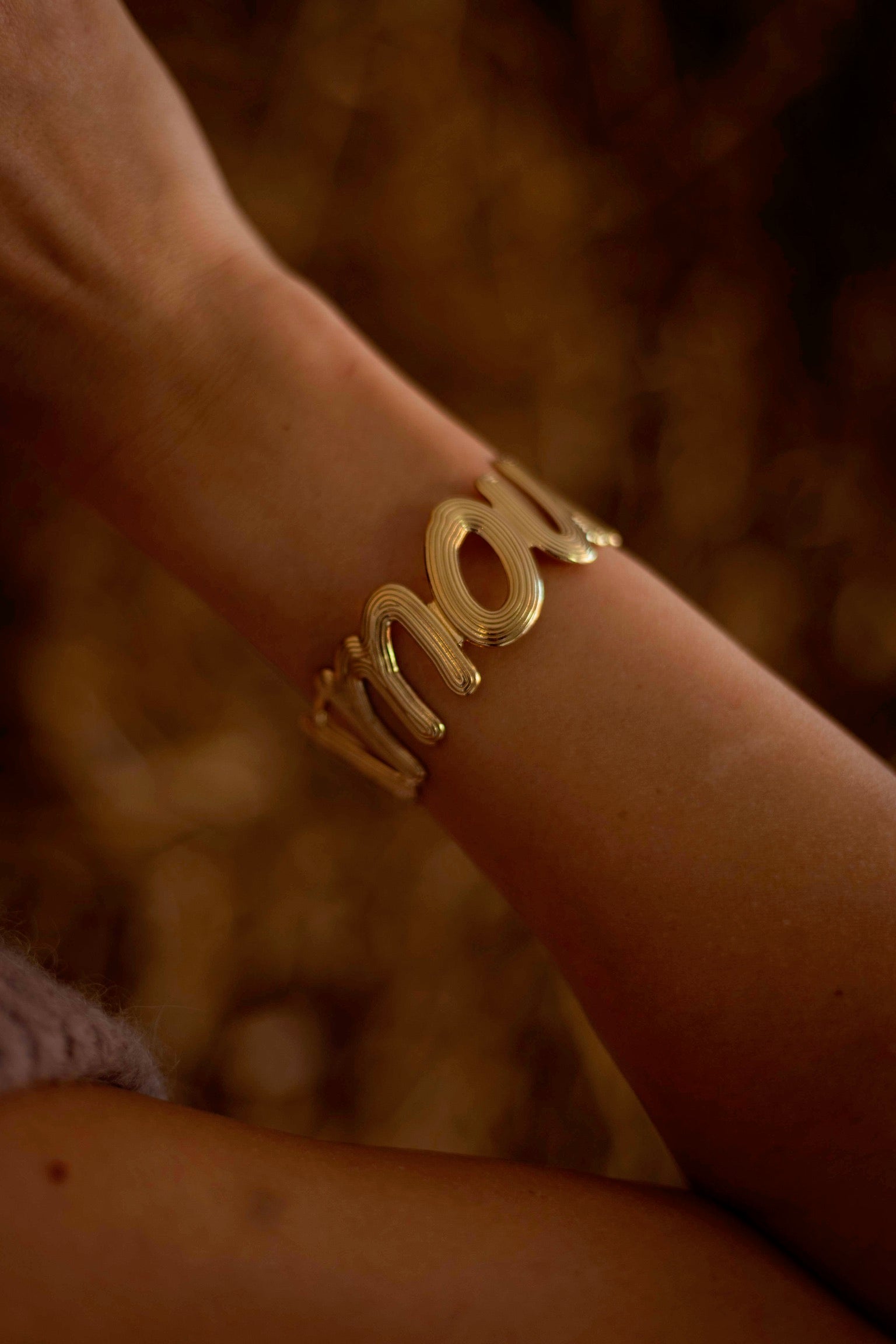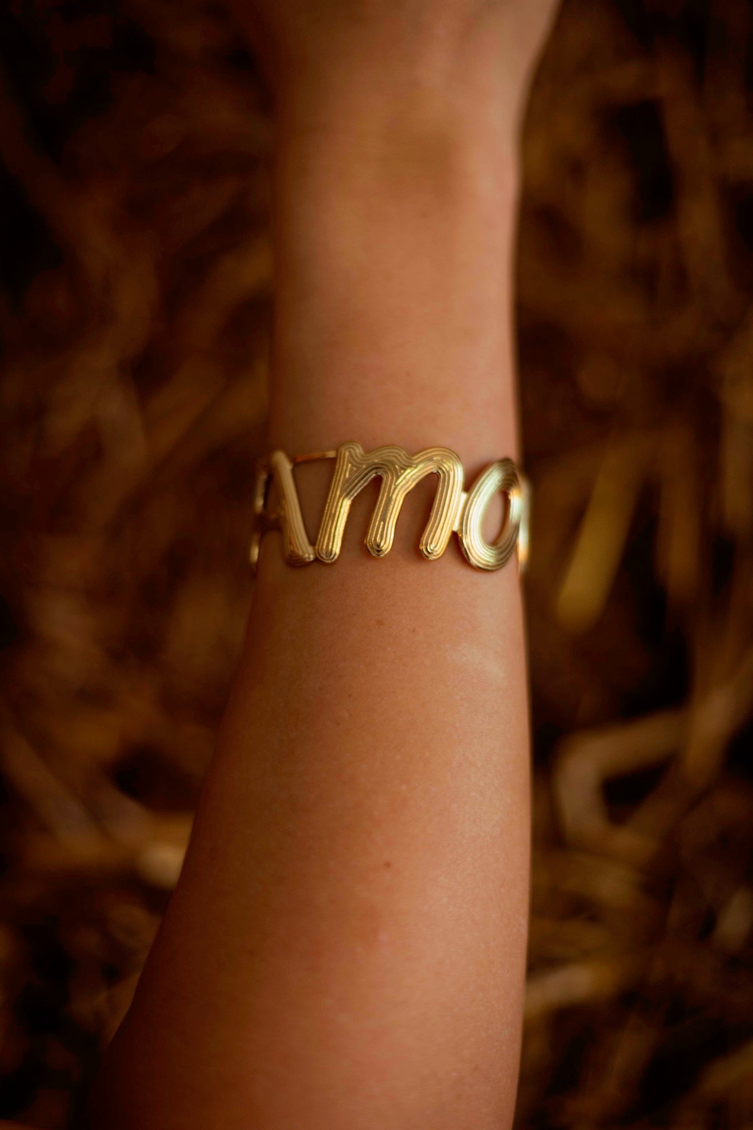 Een chunky armband met opvallende ‘amour’ letters die warmte en kracht uitstraalt. Het gouden ontwerp geeft elke herfstlook een subtiele maar krachtige finishing touch.