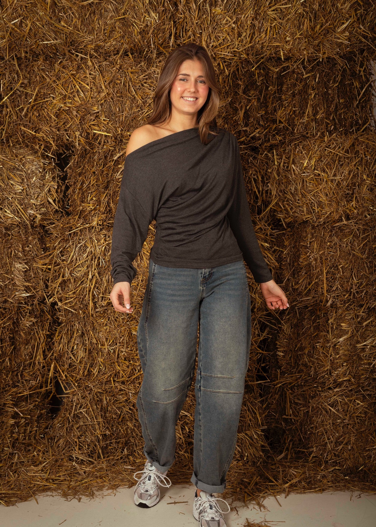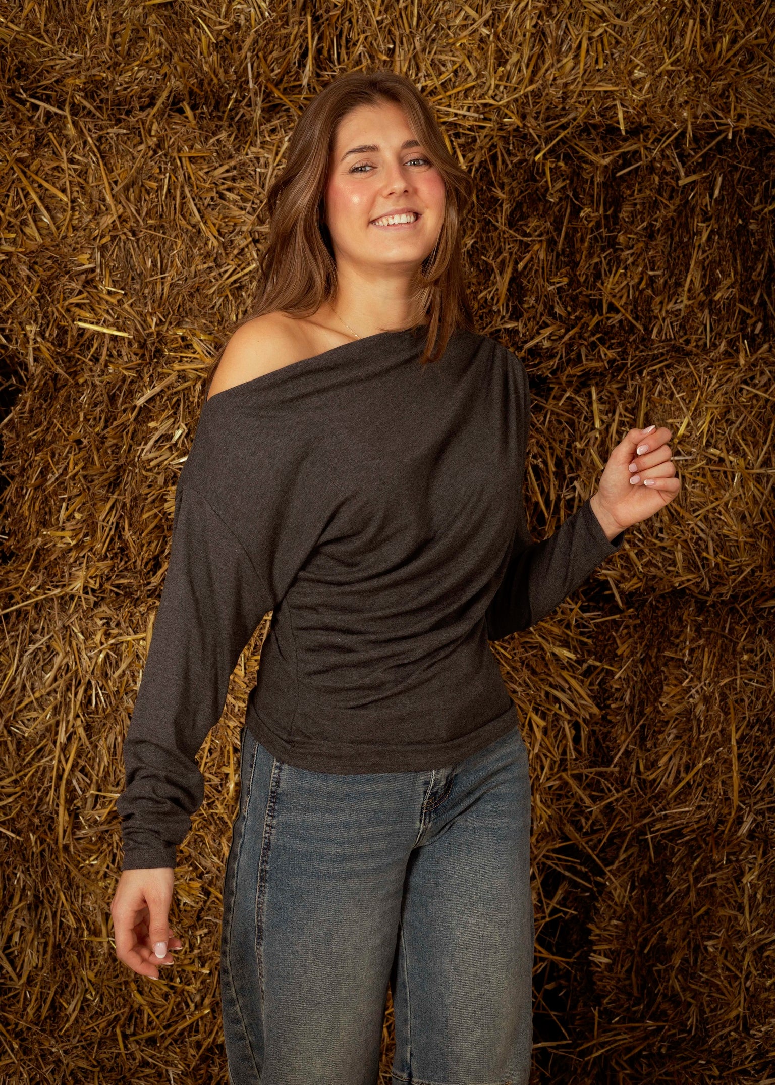 WAVERLY DARK GREY DRAPED LONGSLEEVE SHIRT