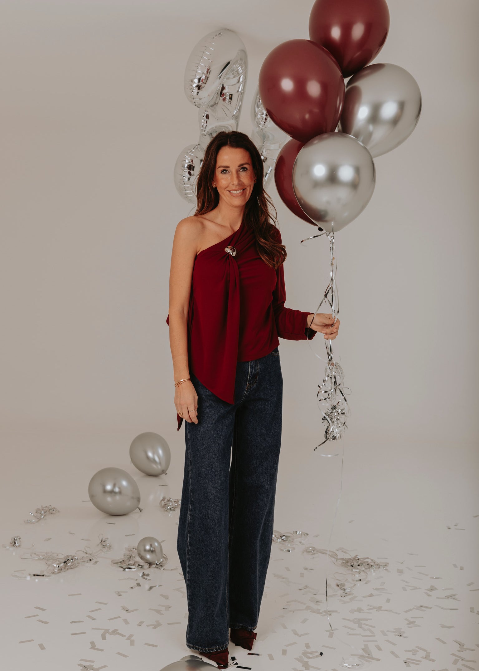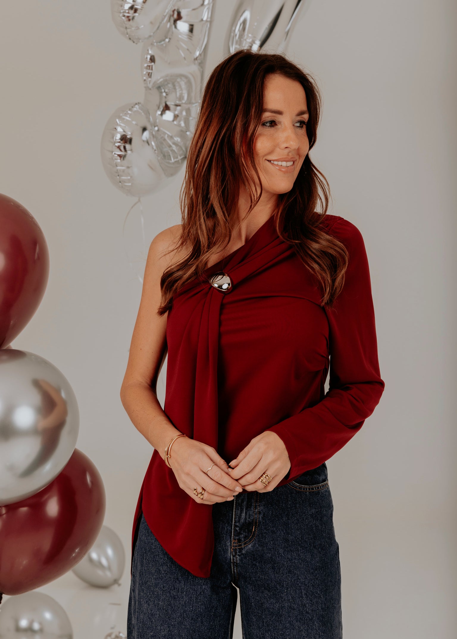 MAKE A WISH BORDEAUX ONE SHOULDER TOP