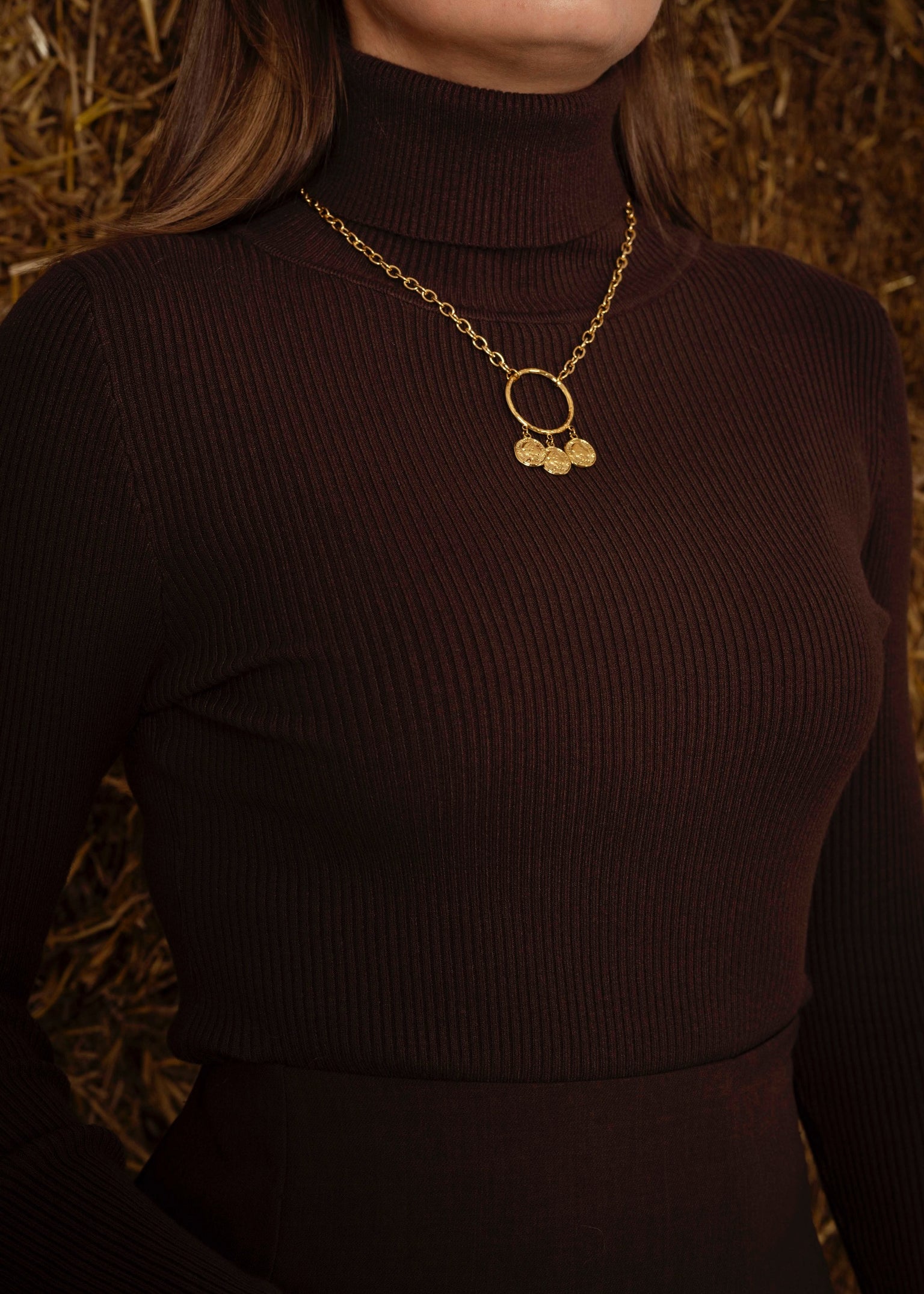 DEVIKA BROWN RIBBED TURTLENECK LONGSLEEVE SHIRT