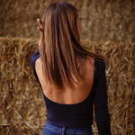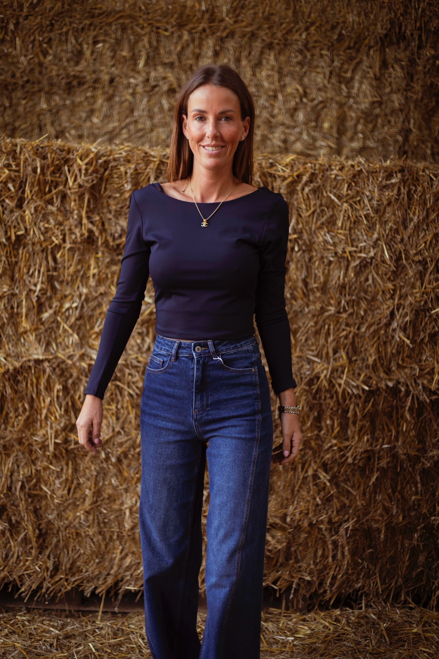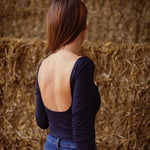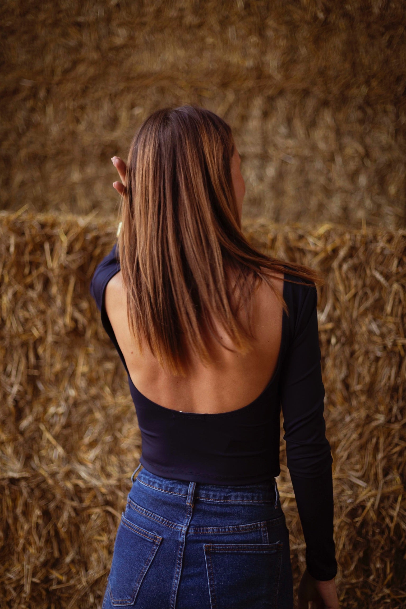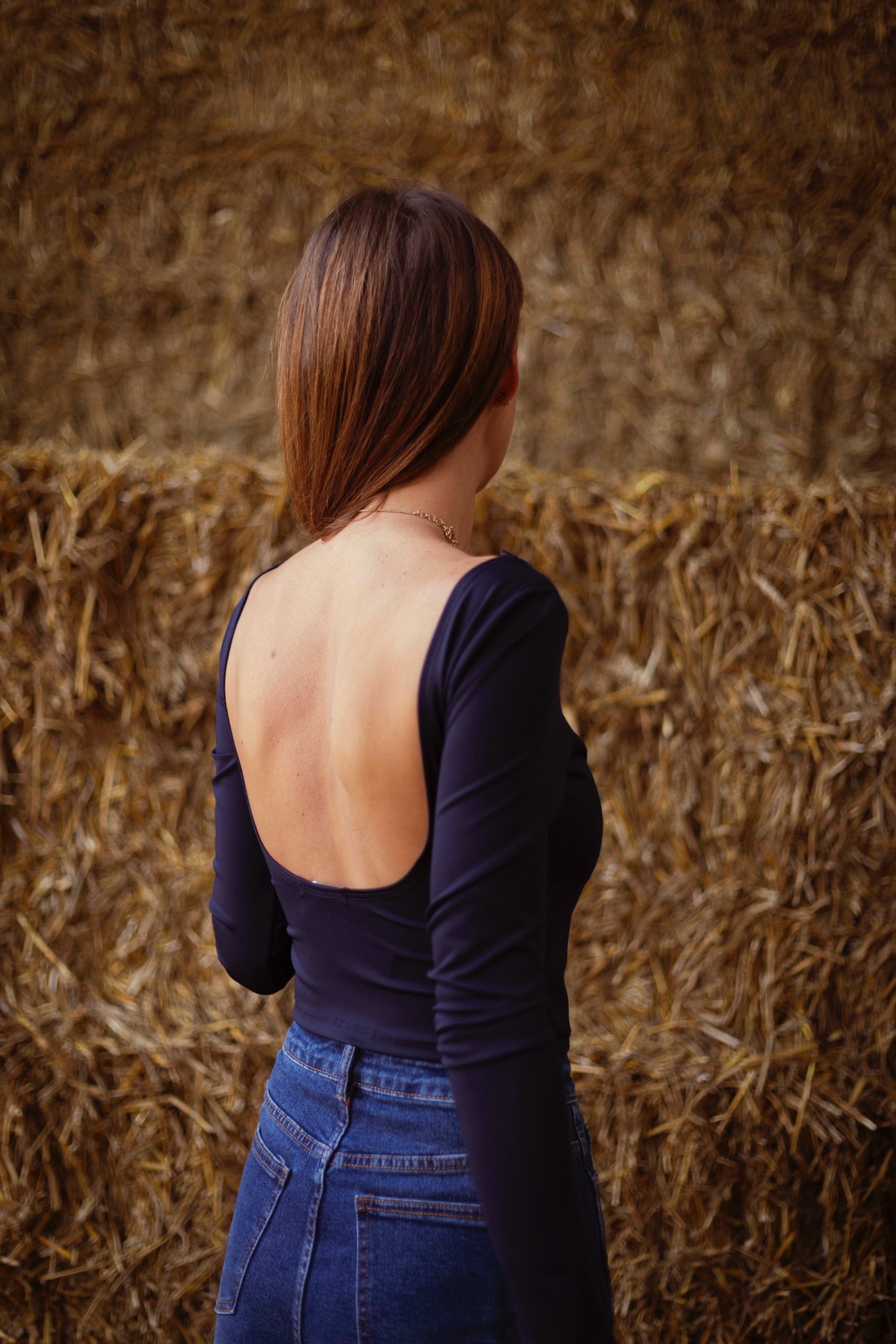 Een elegante top met lange mouwen en een gedurfde open rug die subtiel sensualiteit toevoegt aan je herfstlook. Perfect te combineren met hoge taille broeken of rokken voor een stijlvolle balans tussen klassiek en opvallend. Een verrassend veelzijdig item voor bijzondere gelegenheden.