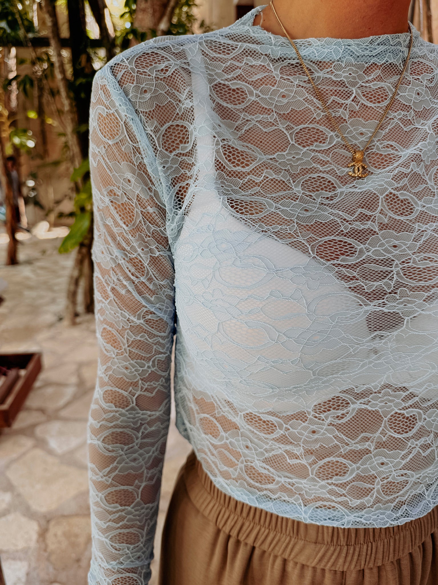 LIVIA LIGHT BLUE LACE LONGSLEEVE TOP