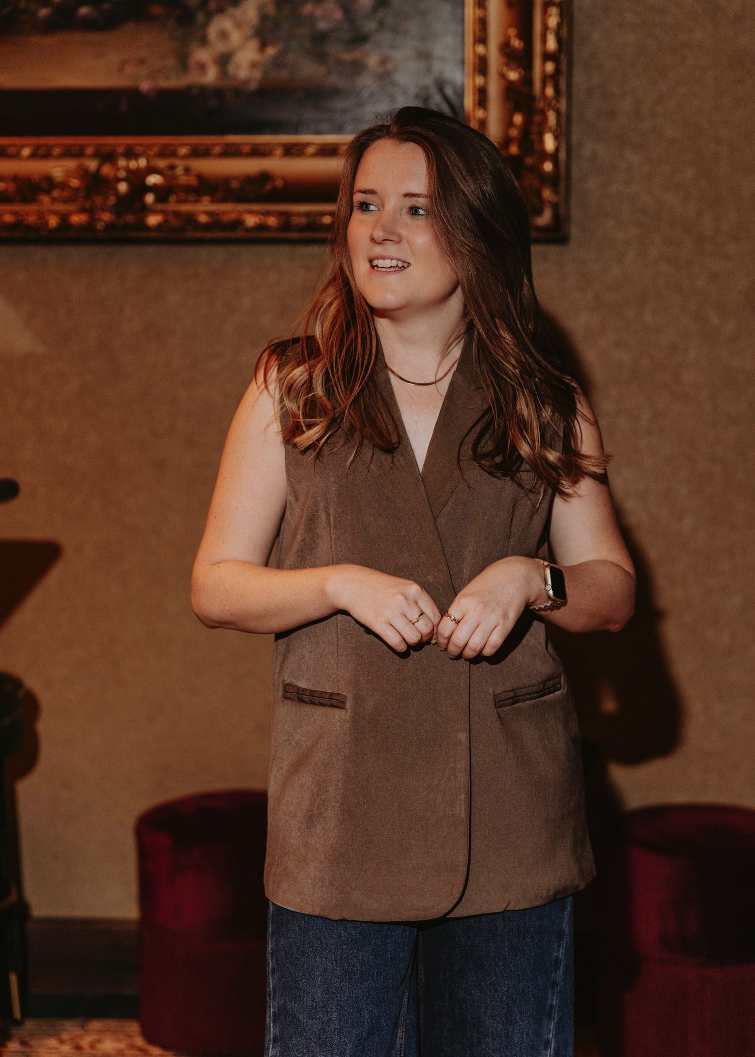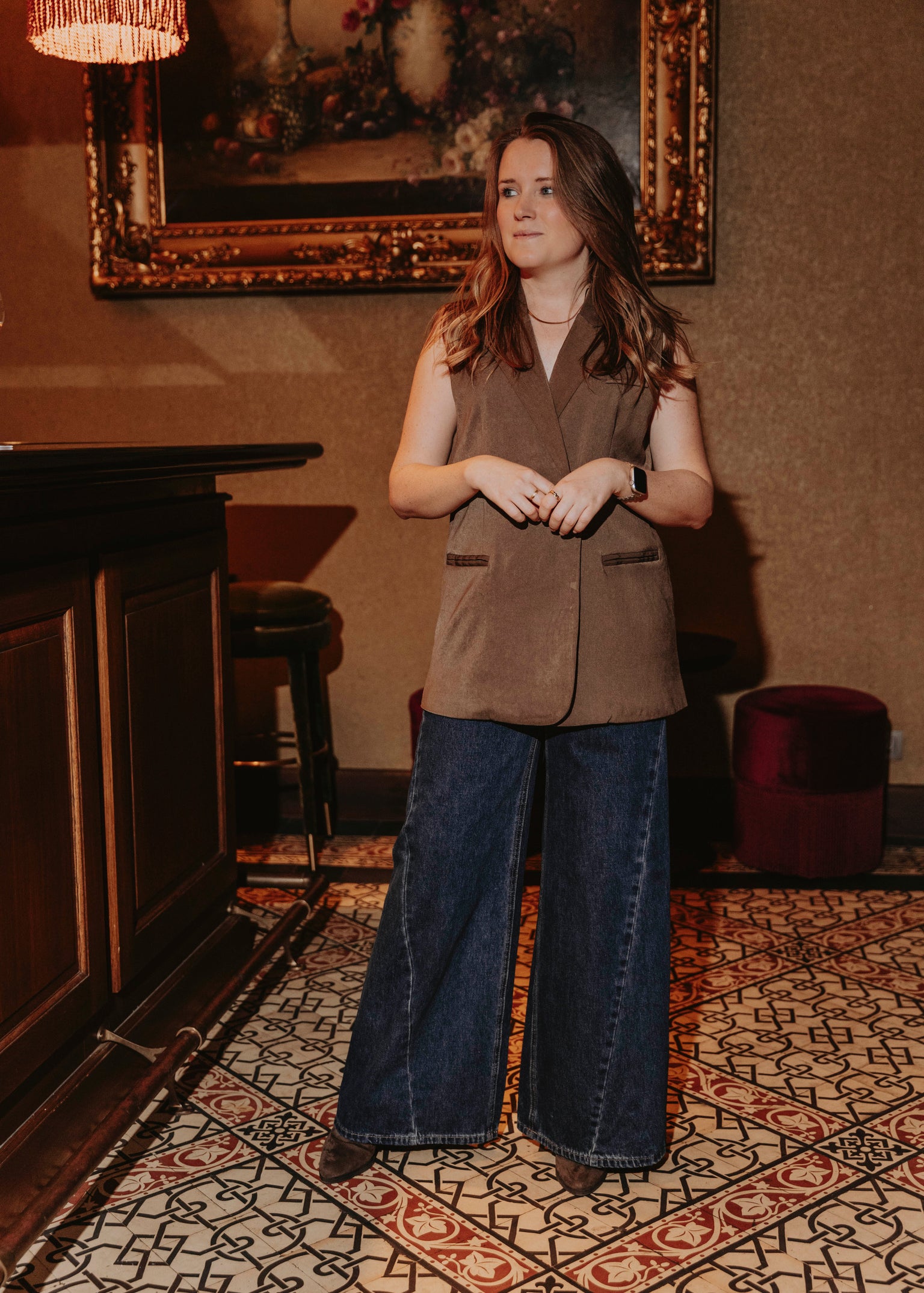 TWINKLE TOAST BROWN SLEEVELESS BLAZER